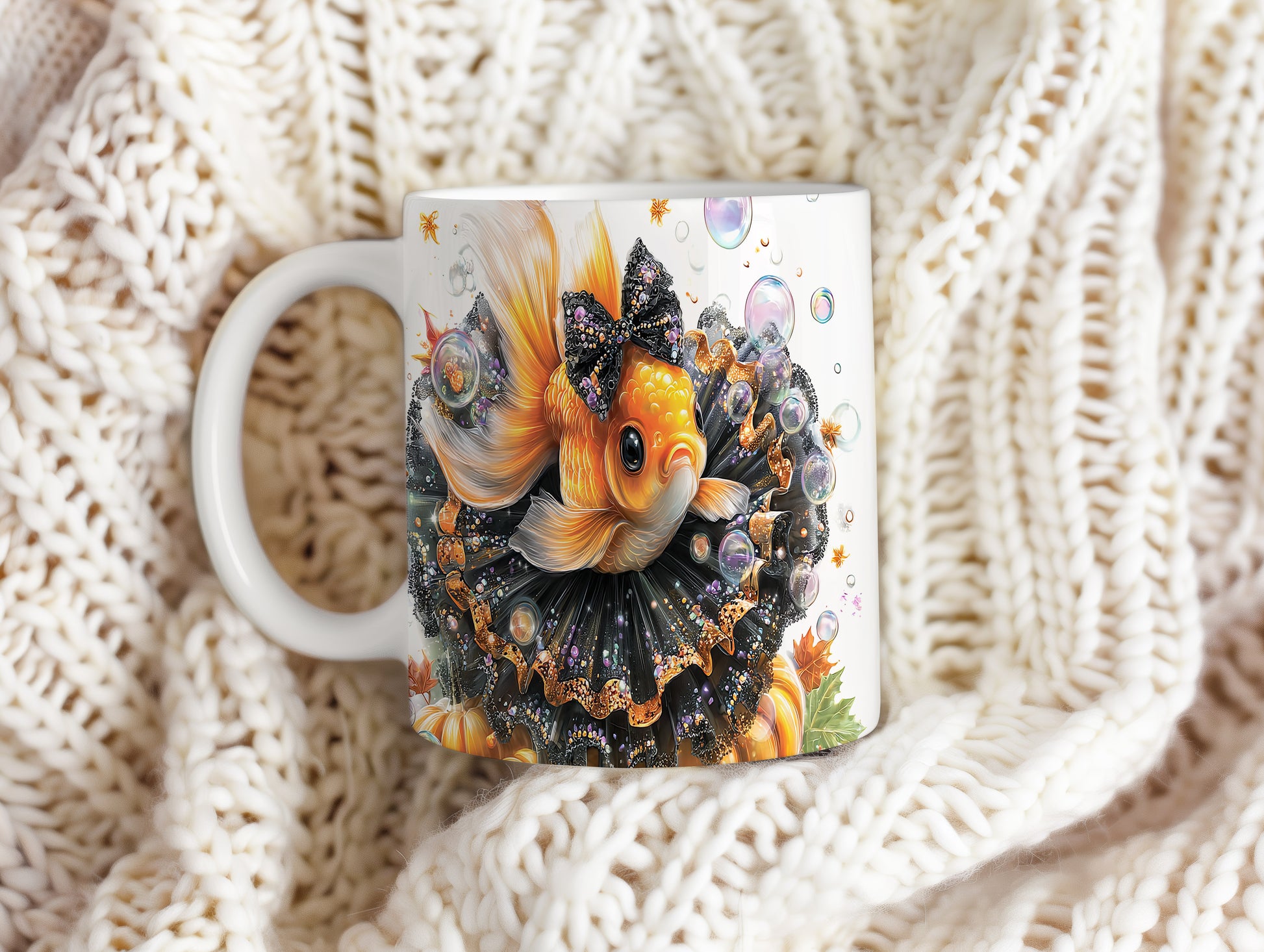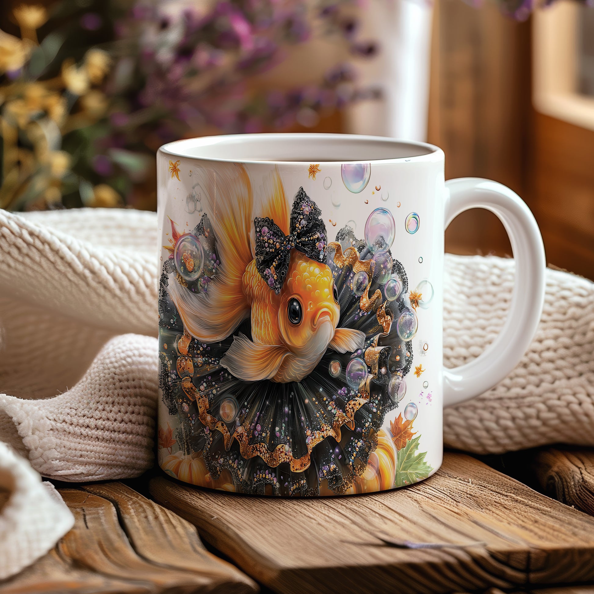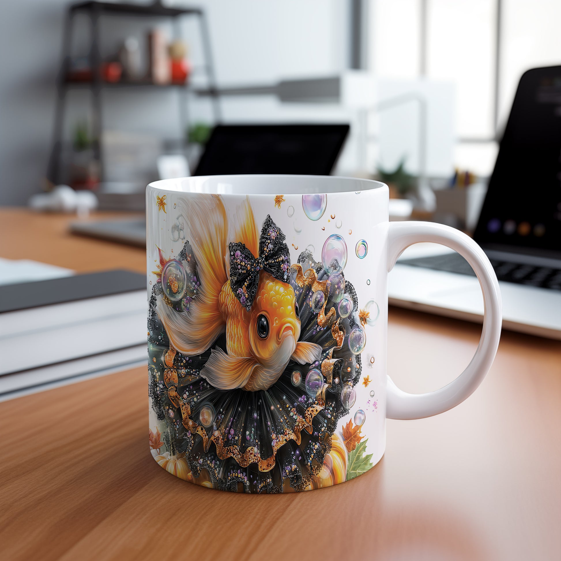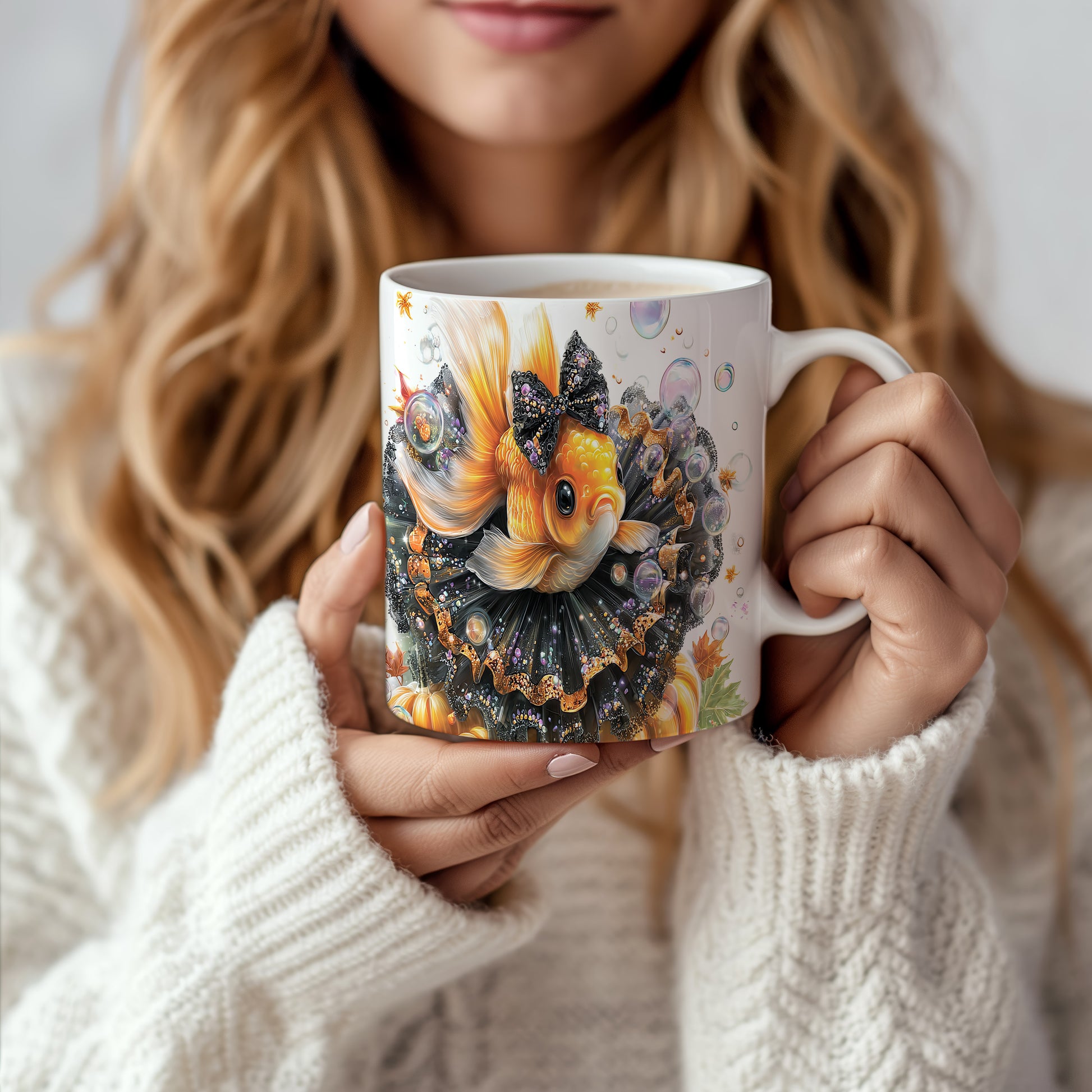 Tento keramický hrnek zobrazuje zlatou rybku v elegantním outfitu. Je ideální pro milovníky akvaristiky a ryb, skvělý tip na dárek pro každého, kdo má rád vodní svět. Materiál: keramika. Objem: 330 ml. Vhodné do myčky i mikrovlnky. Díky svému designu přináší do každodenního pití radost a styl.