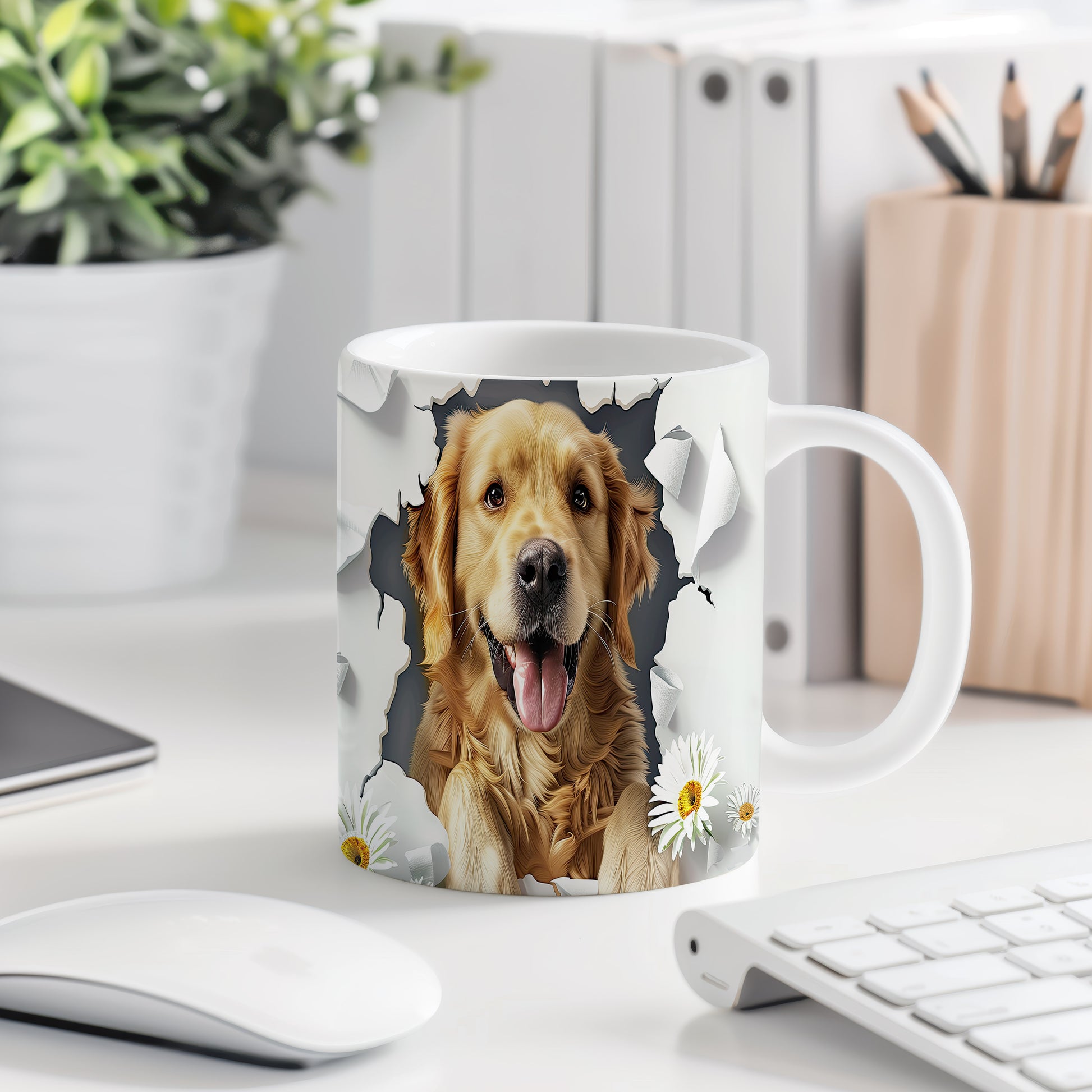 Hrnek s motivem zlatého retrívra, který vyzařuje radost a pohodu. Tento hrnek je ideální pro milovníky psů a skvělým dárkem pro každého, kdo má rád zvířata. Materiál: keramika. Objem: 330 ml. Vhodné do myčky i mikrovlnky. Užívejte si každé sousto s tímto veselým hrnkem, který vám zpříjemní chvíle u kávy nebo čaje.