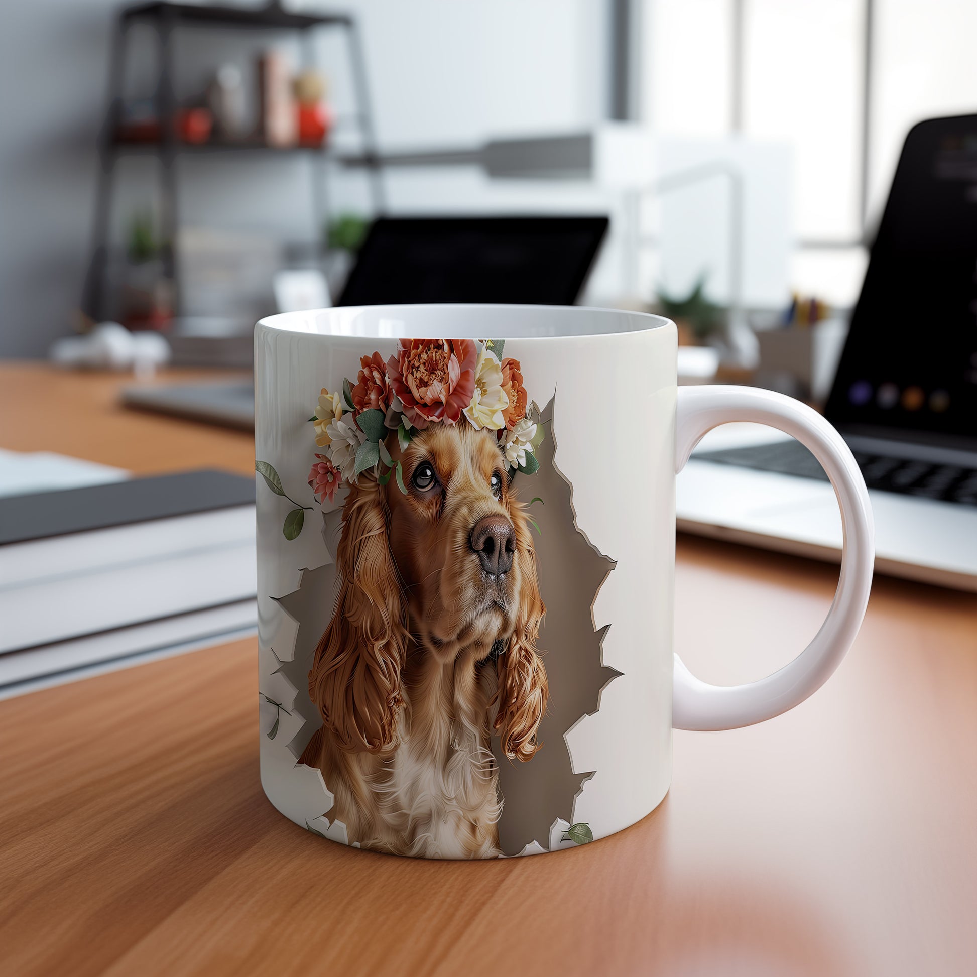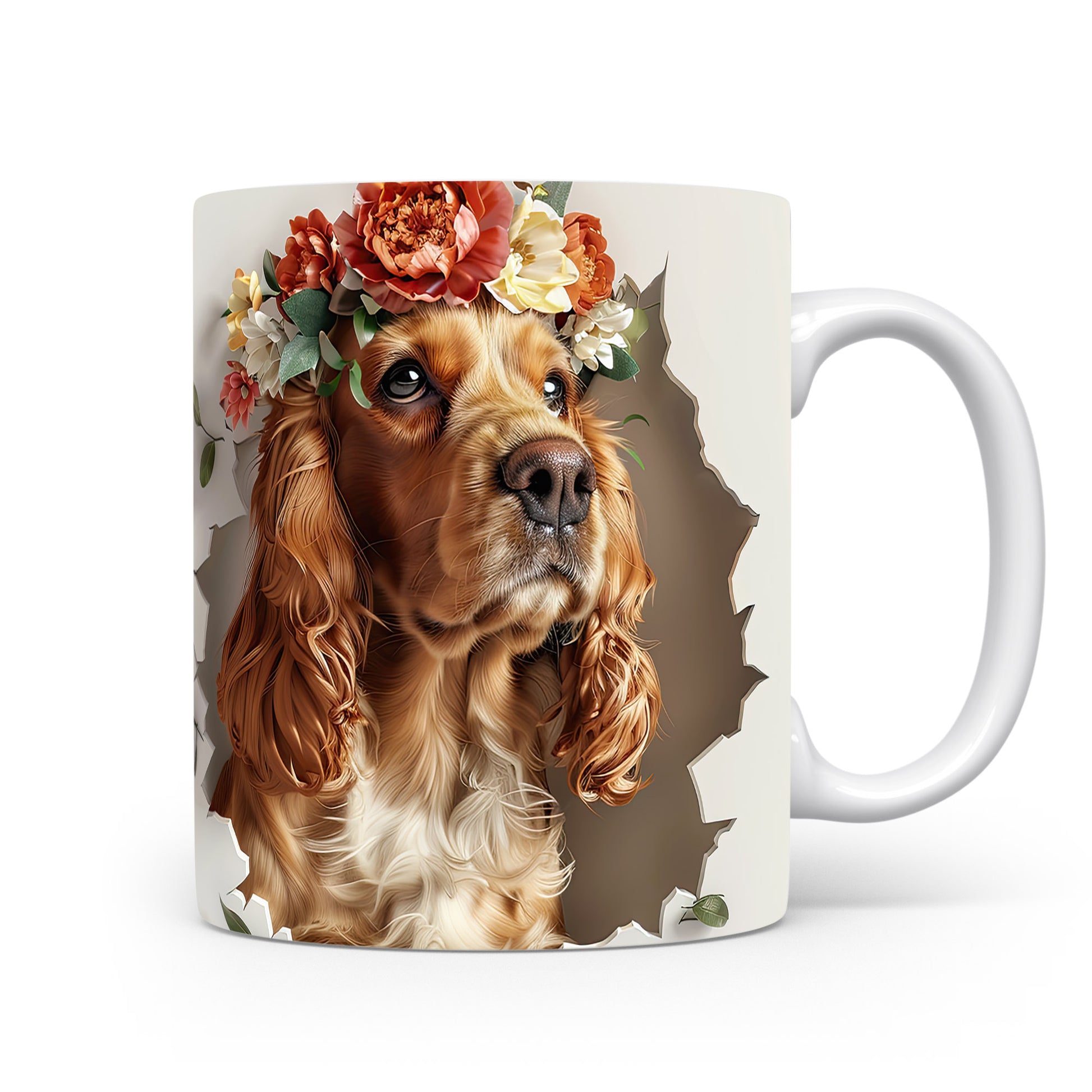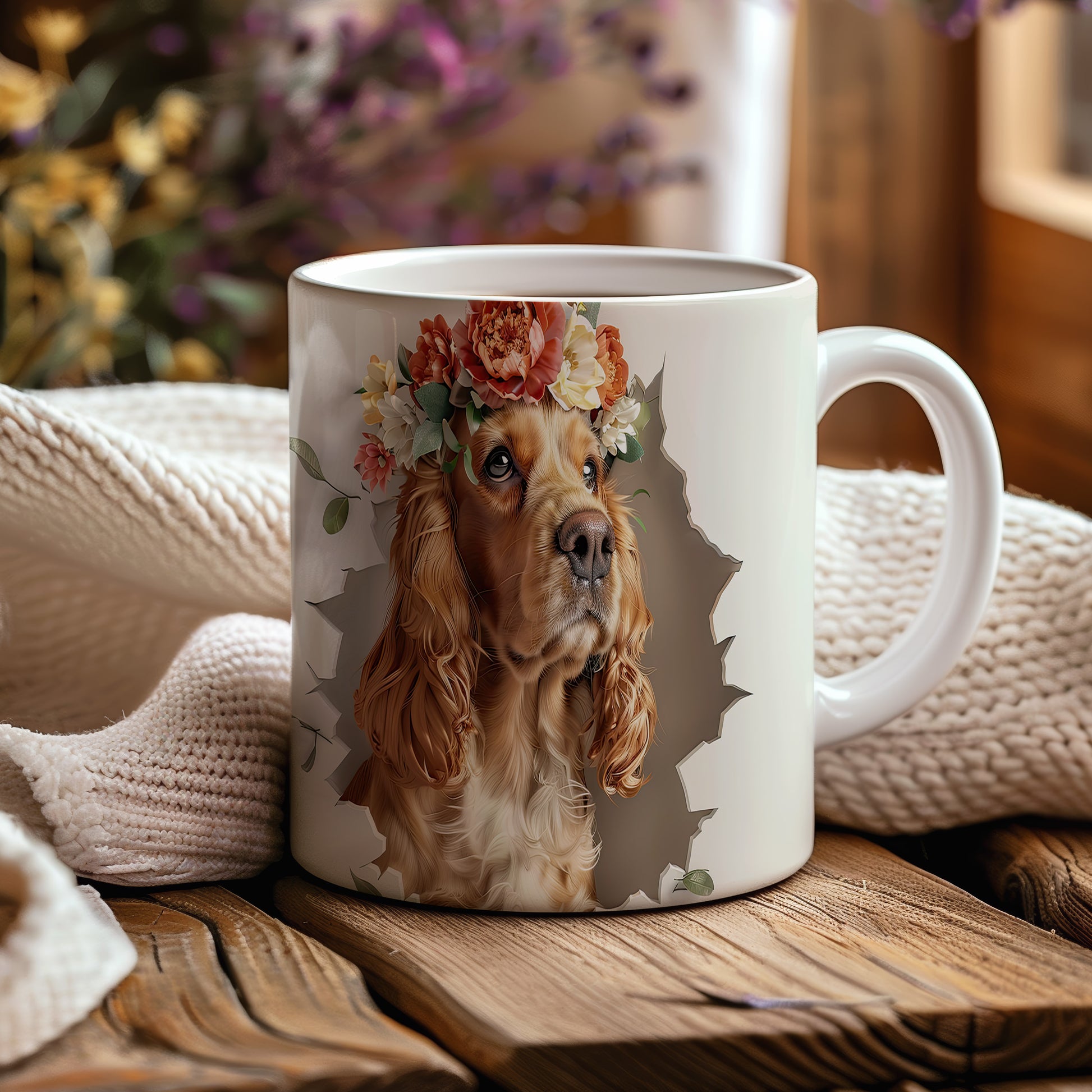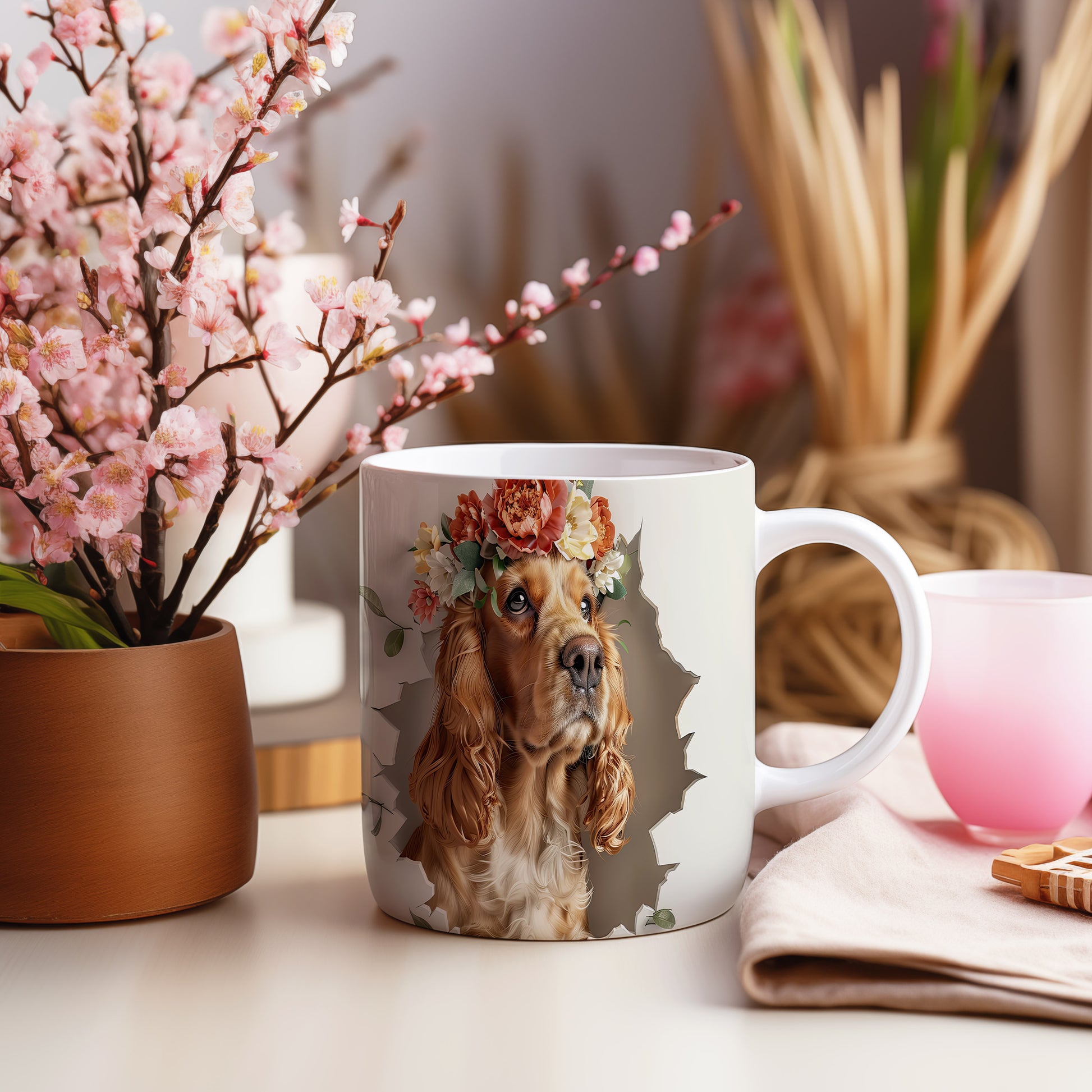 Hrnek s motivem zlatého španěla a květinového věnce potěší každého milovníka psů. Je ideálním dárkem pro přátele a rodinu, kteří mají rádi zvířata. Materiál: keramika. Objem: 330 ml. Vhodné do myčky i mikrovlnky. Tento hrnek přináší radost při každém doušku oblíbeného nápoje.