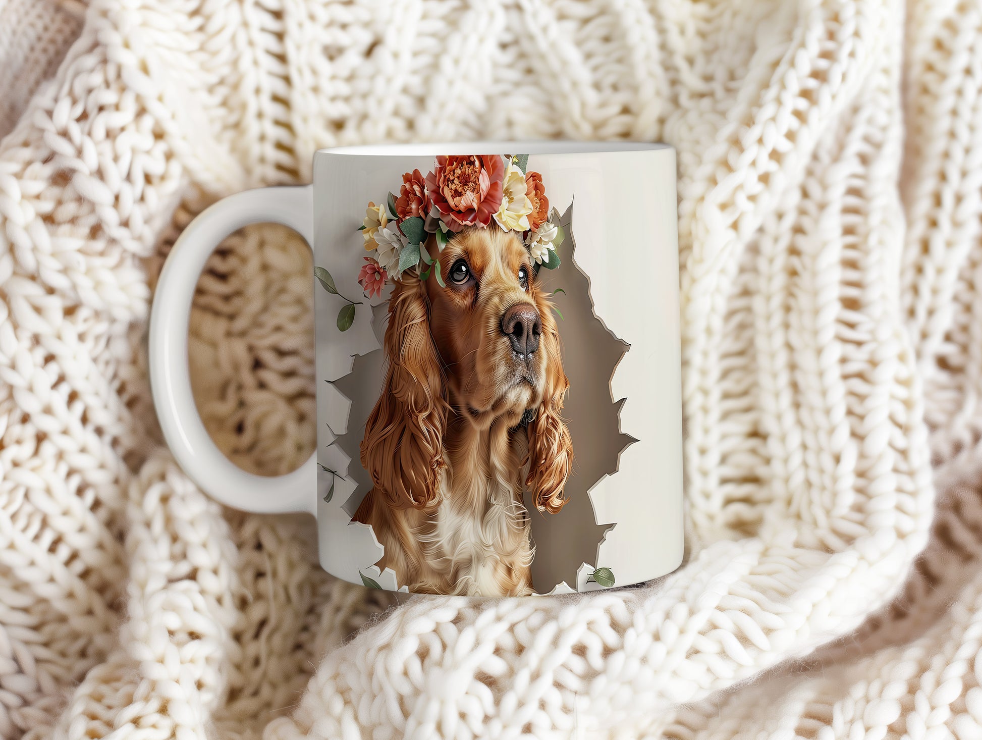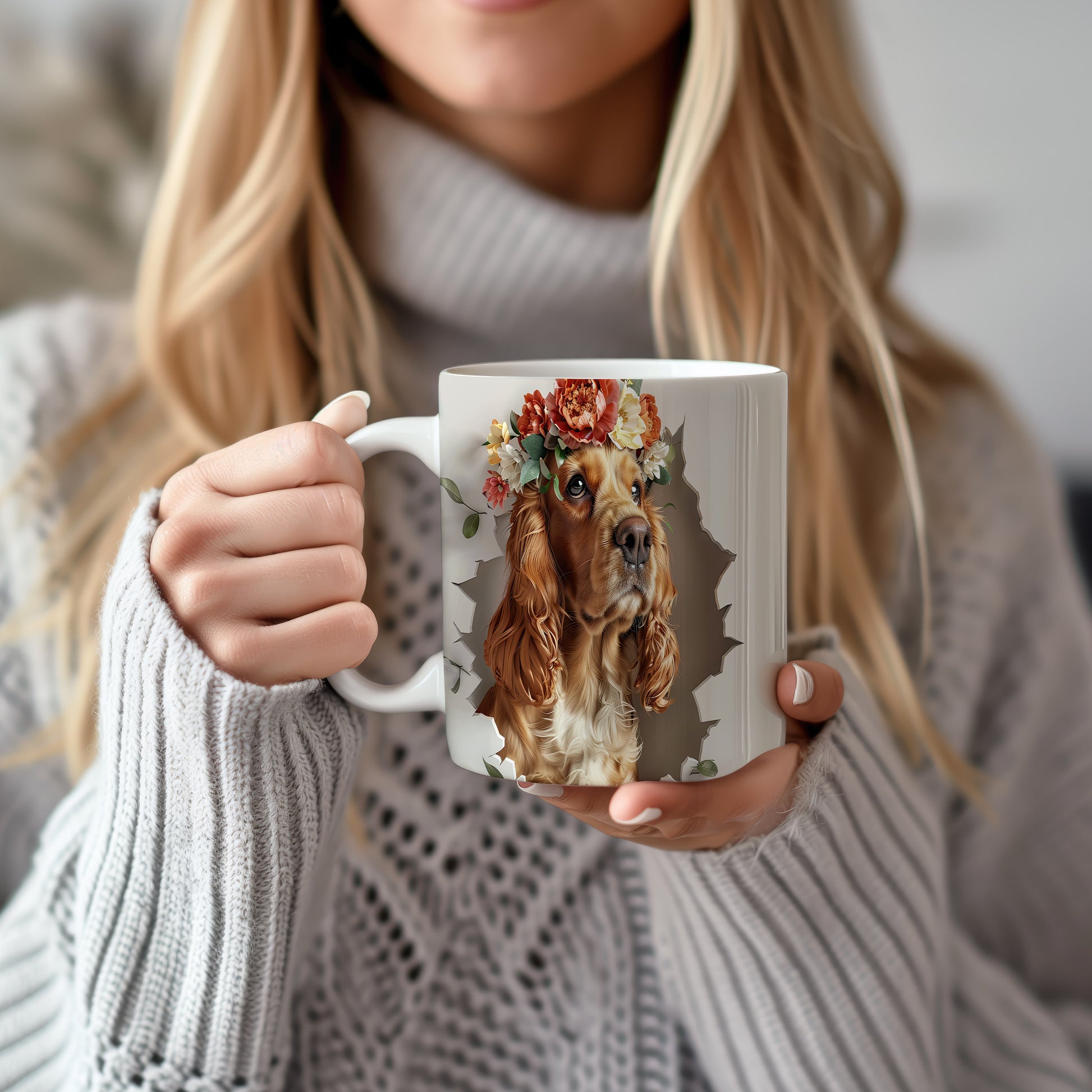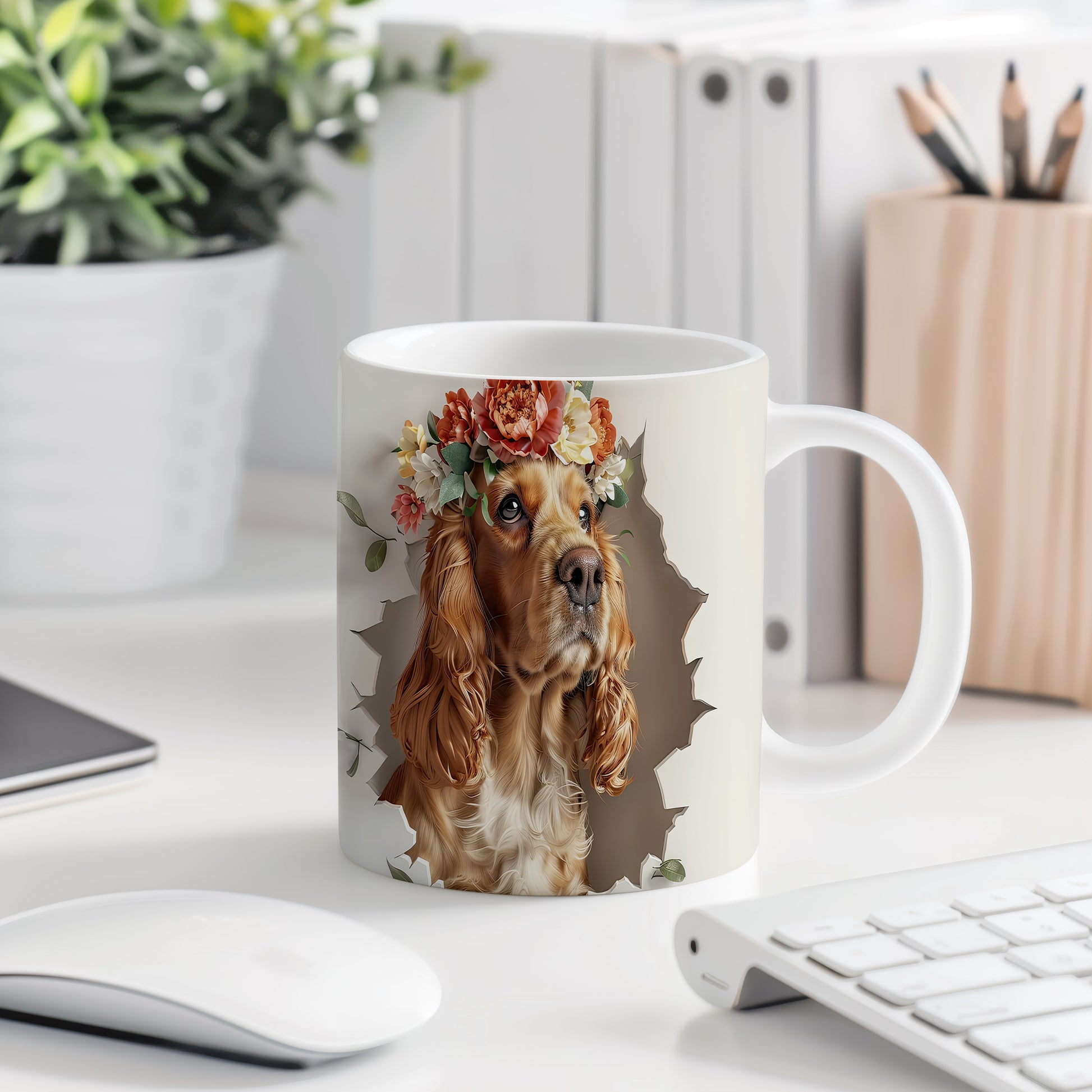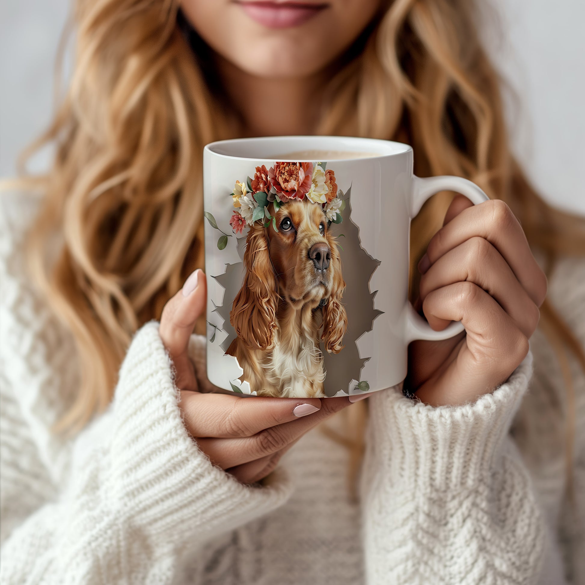 Hrnek s motivem zlatého španěla a květinového věnce potěší každého milovníka psů. Je ideálním dárkem pro přátele a rodinu, kteří mají rádi zvířata. Materiál: keramika. Objem: 330 ml. Vhodné do myčky i mikrovlnky. Tento hrnek přináší radost při každém doušku oblíbeného nápoje.