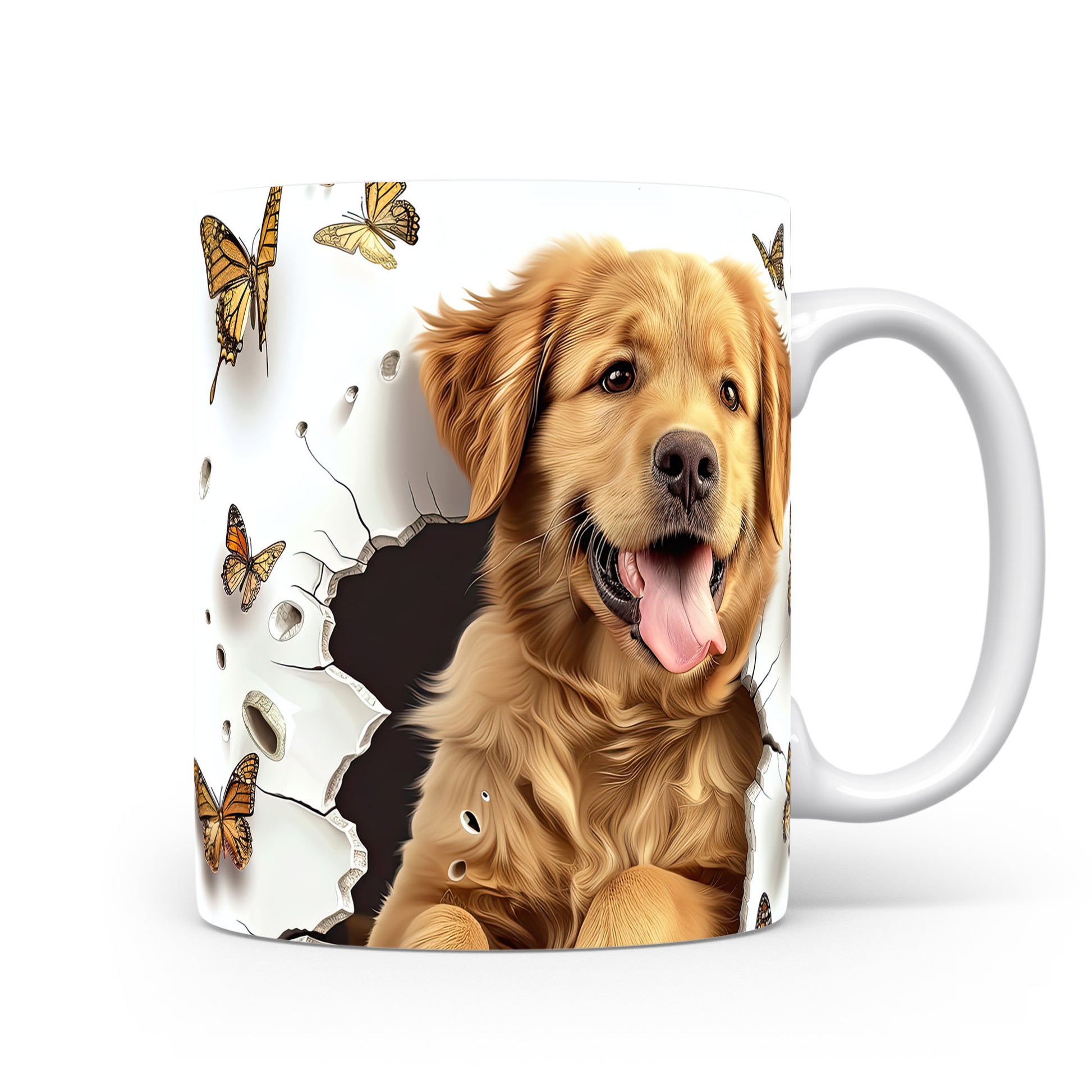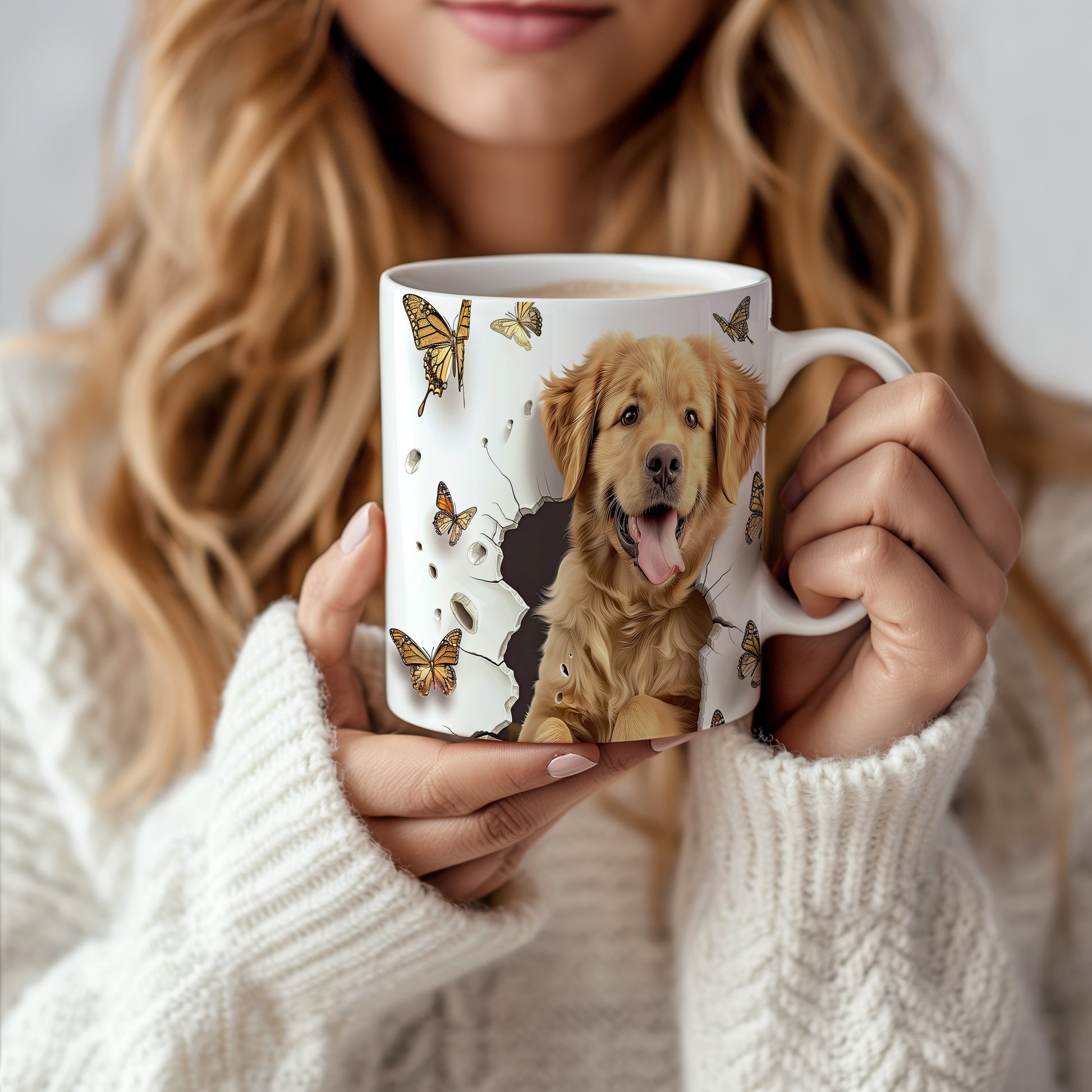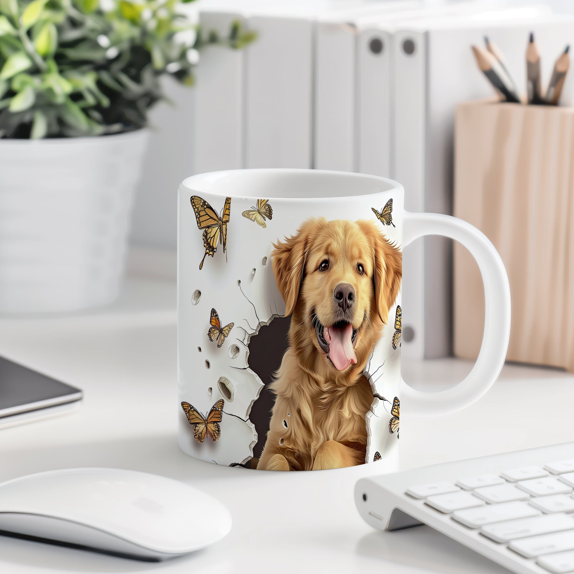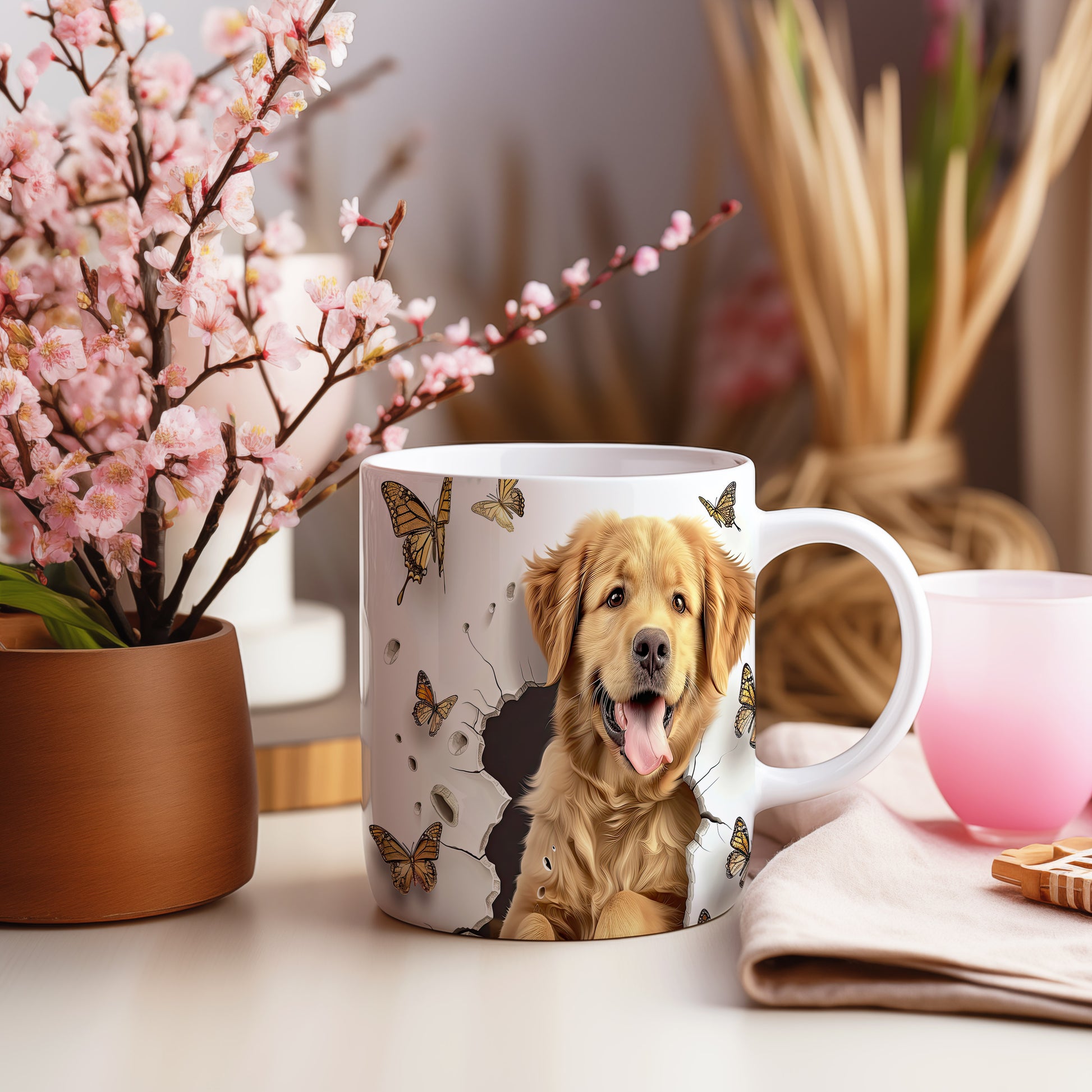 Tento hrnek s realistickým motivem zlatého retrívra a motýlků je skvělou volbou pro milovníky psů a přírody. Je ideální jako dárek pro přátele nebo rodinu, kteří ocení originální design. Materiál: keramika. Objem: 330 ml. Vhodné do myčky i mikrovlnky. Používáním tohoto hrnku si užijete nejen krásný vzhled, ale i praktické vlastnosti.