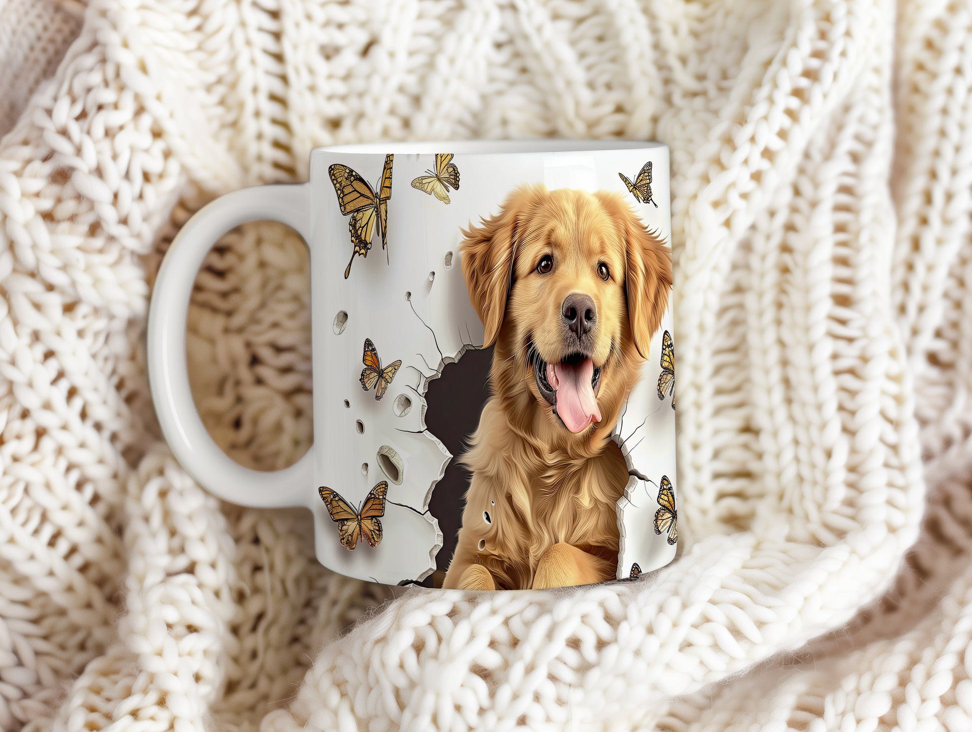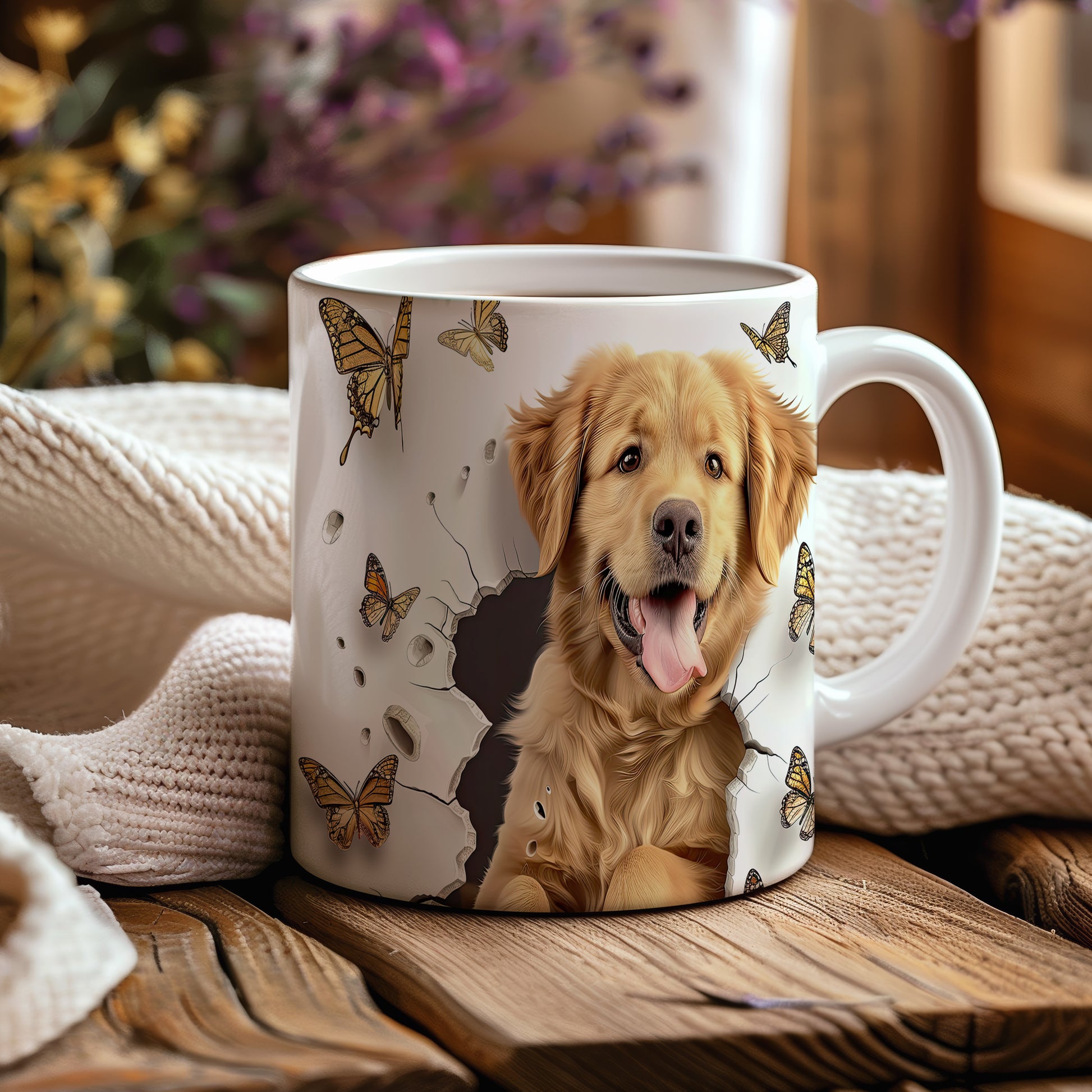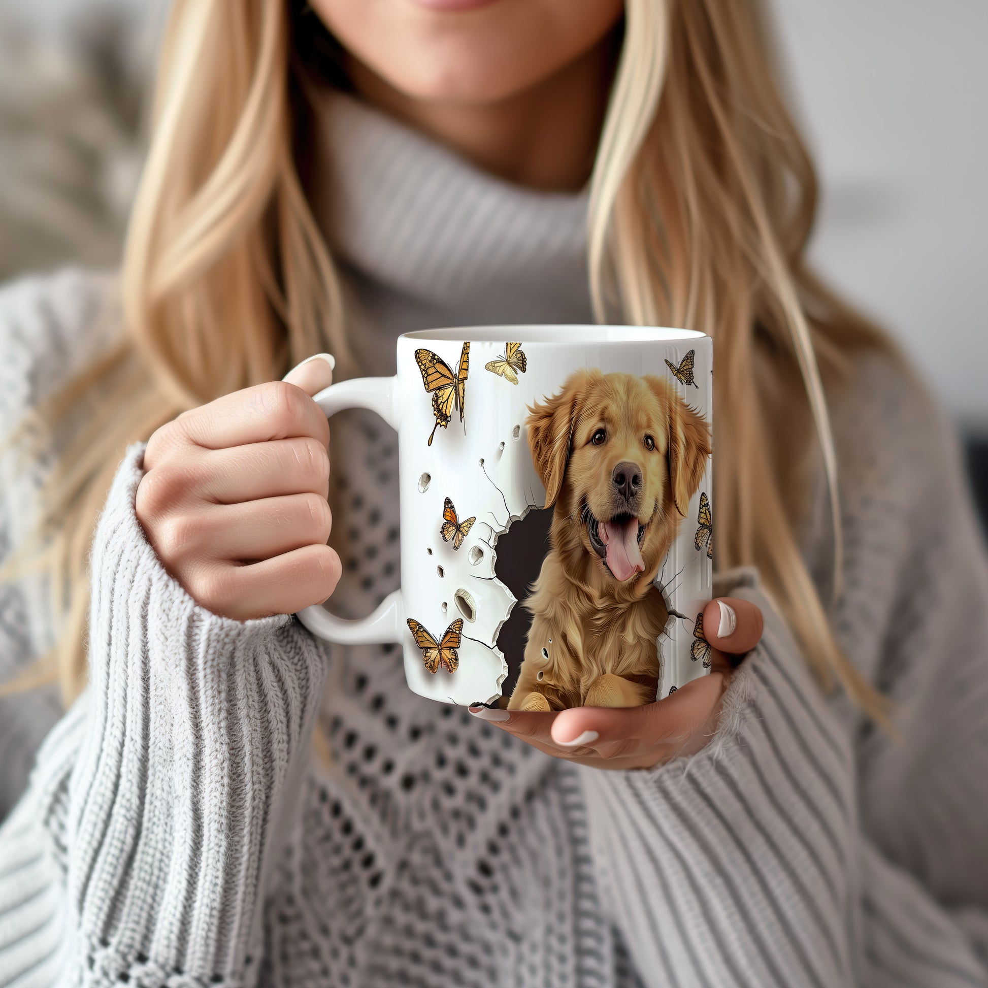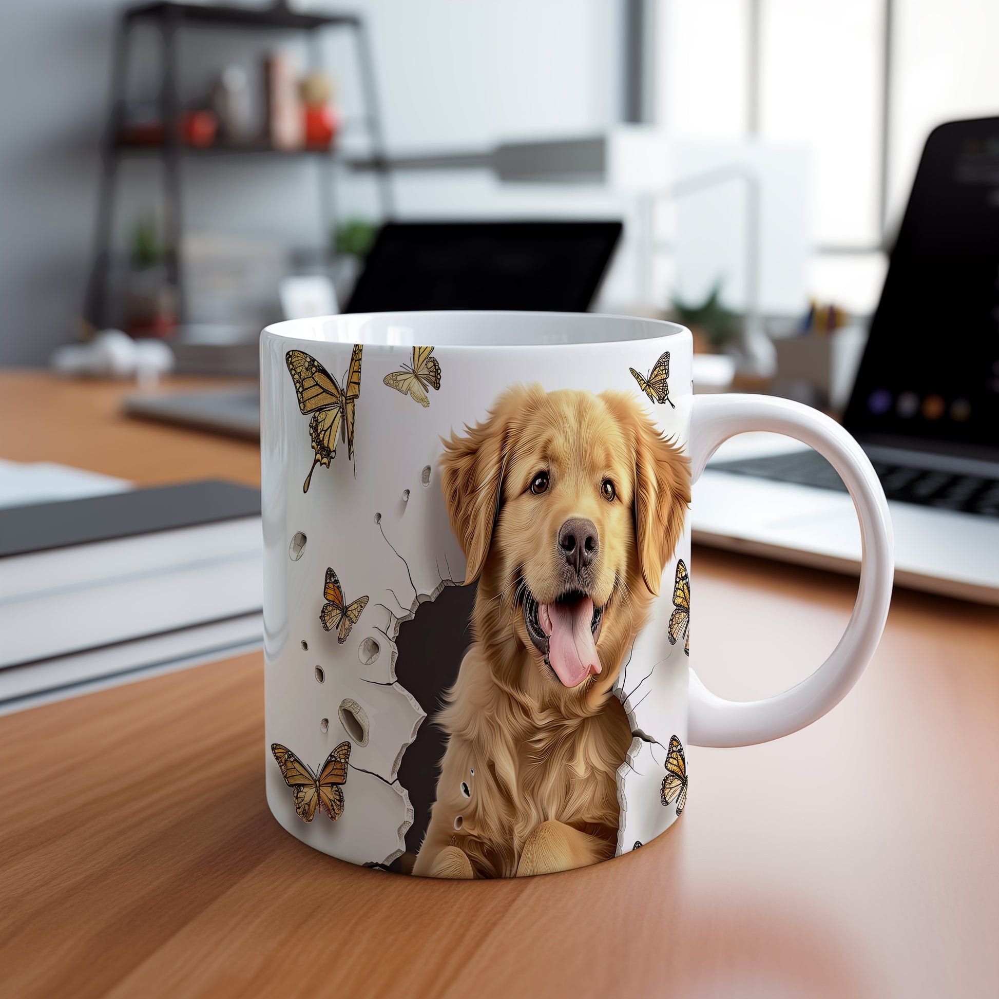 Tento hrnek s realistickým motivem zlatého retrívra a motýlků je skvělou volbou pro milovníky psů a přírody. Je ideální jako dárek pro přátele nebo rodinu, kteří ocení originální design. Materiál: keramika. Objem: 330 ml. Vhodné do myčky i mikrovlnky. Používáním tohoto hrnku si užijete nejen krásný vzhled, ale i praktické vlastnosti.