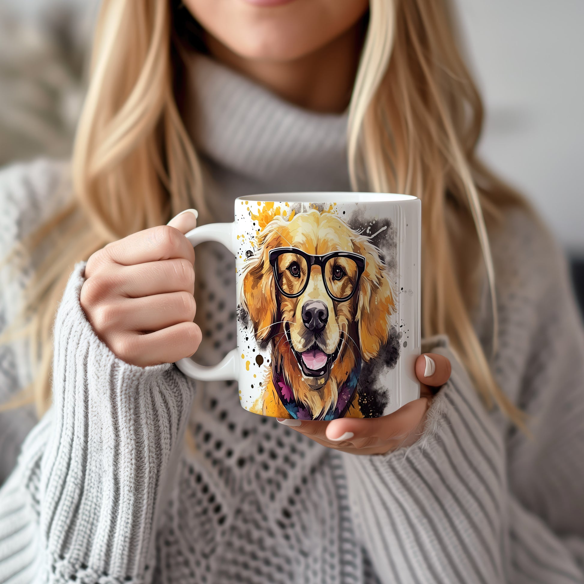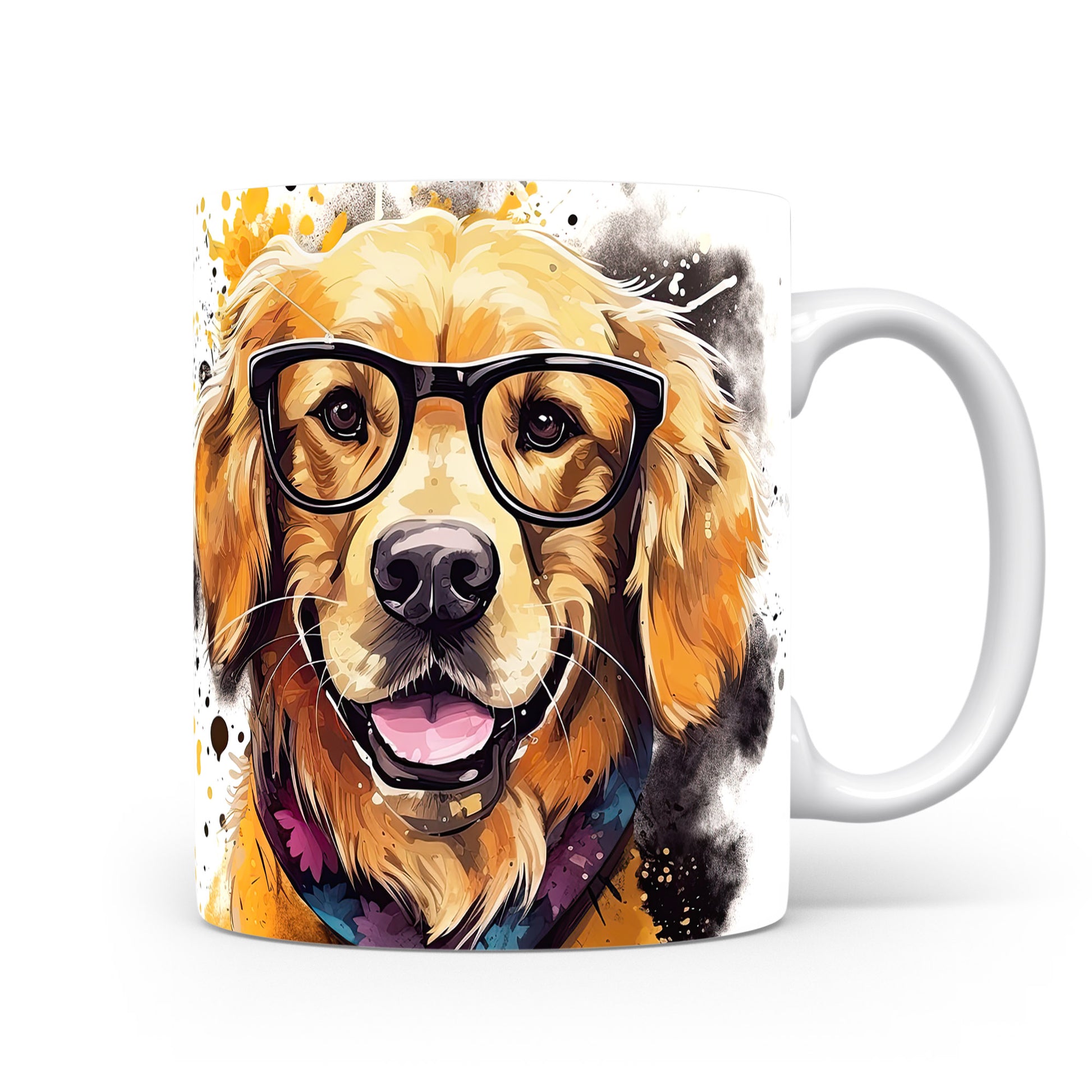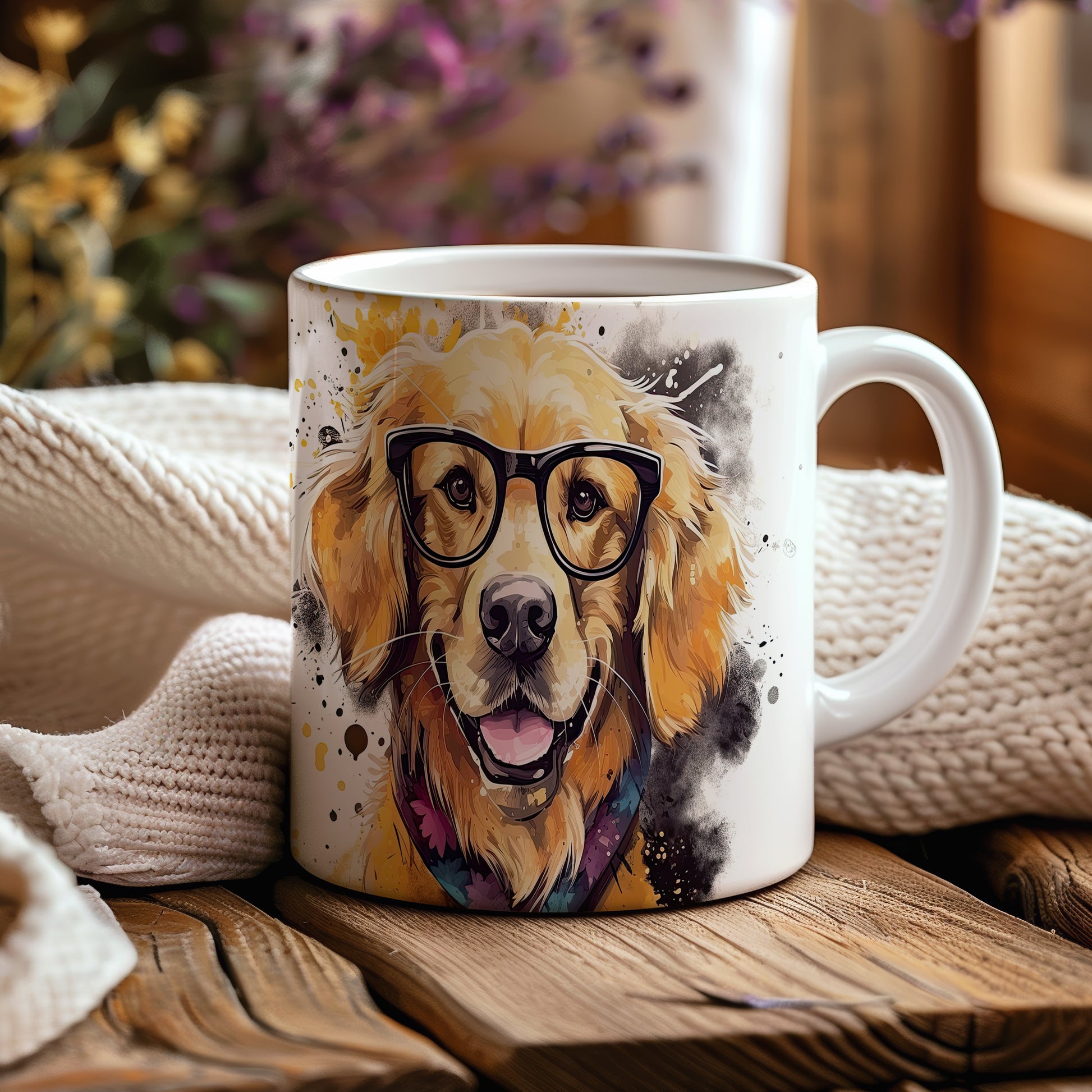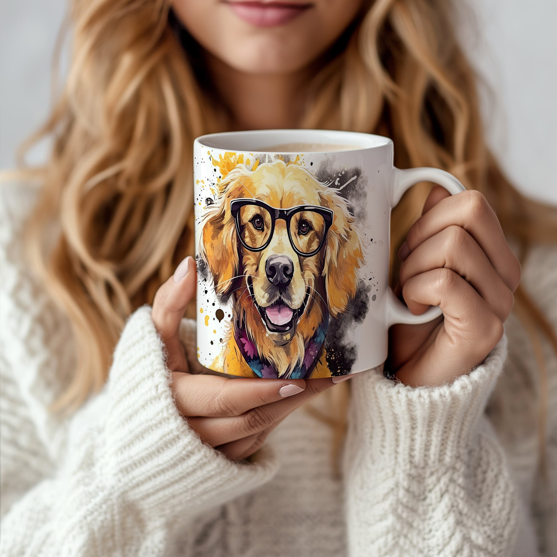 Hrnek se zlatým retrívrem v brýlích – malířským vzhledem