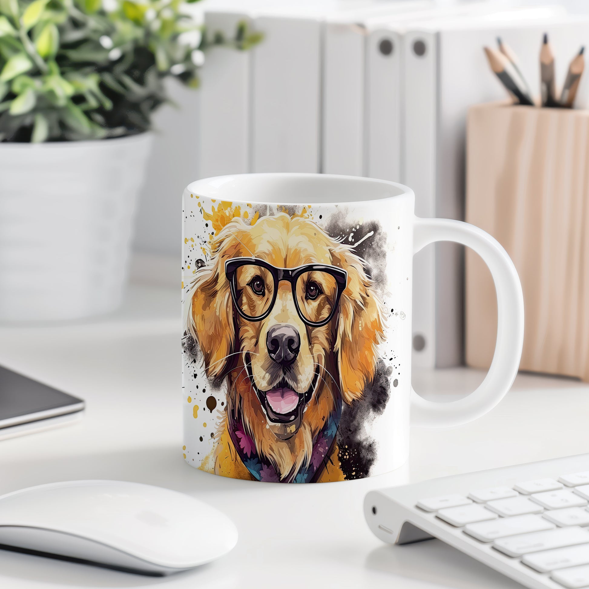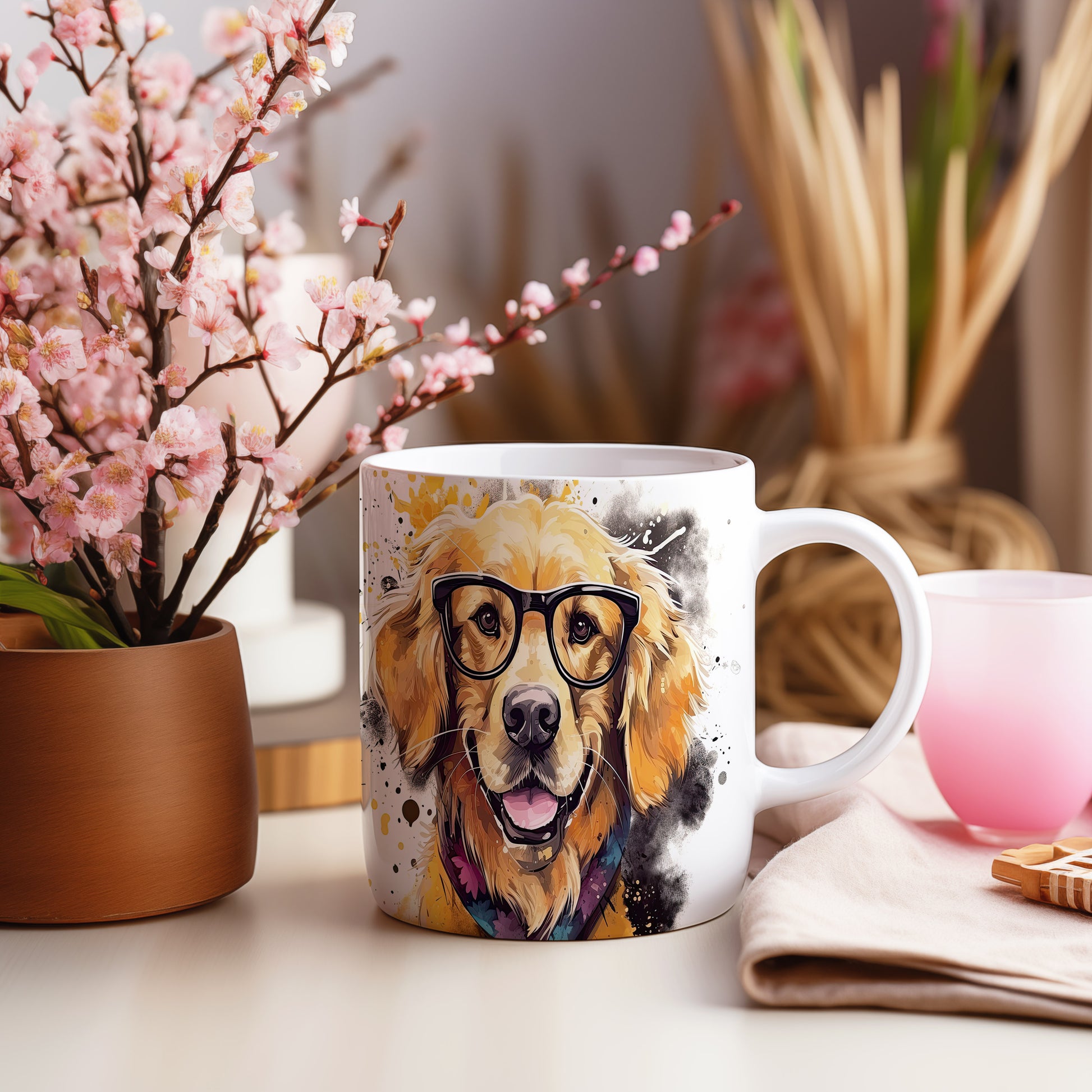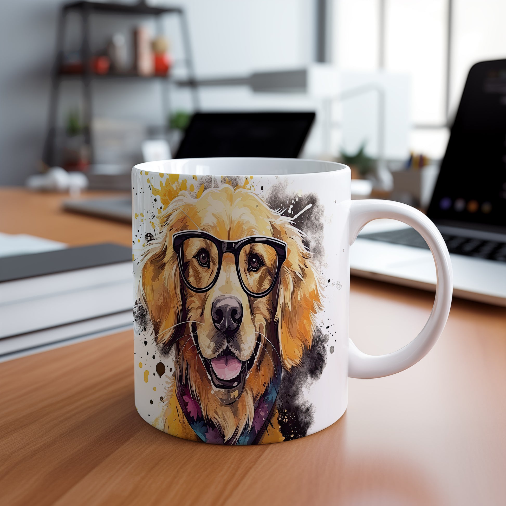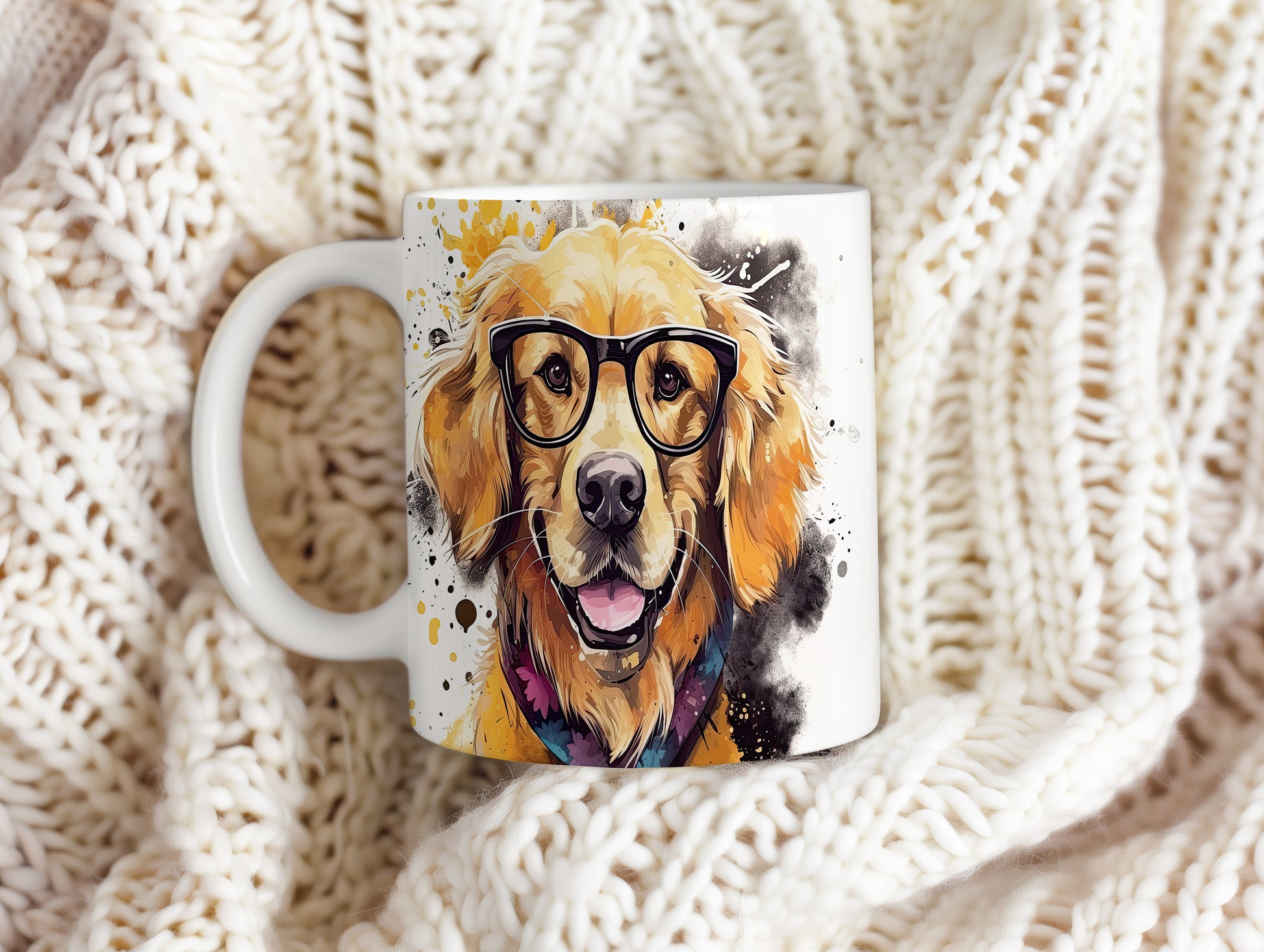 Hrnek se zlatým retrívrem v brýlích – malířským vzhledem