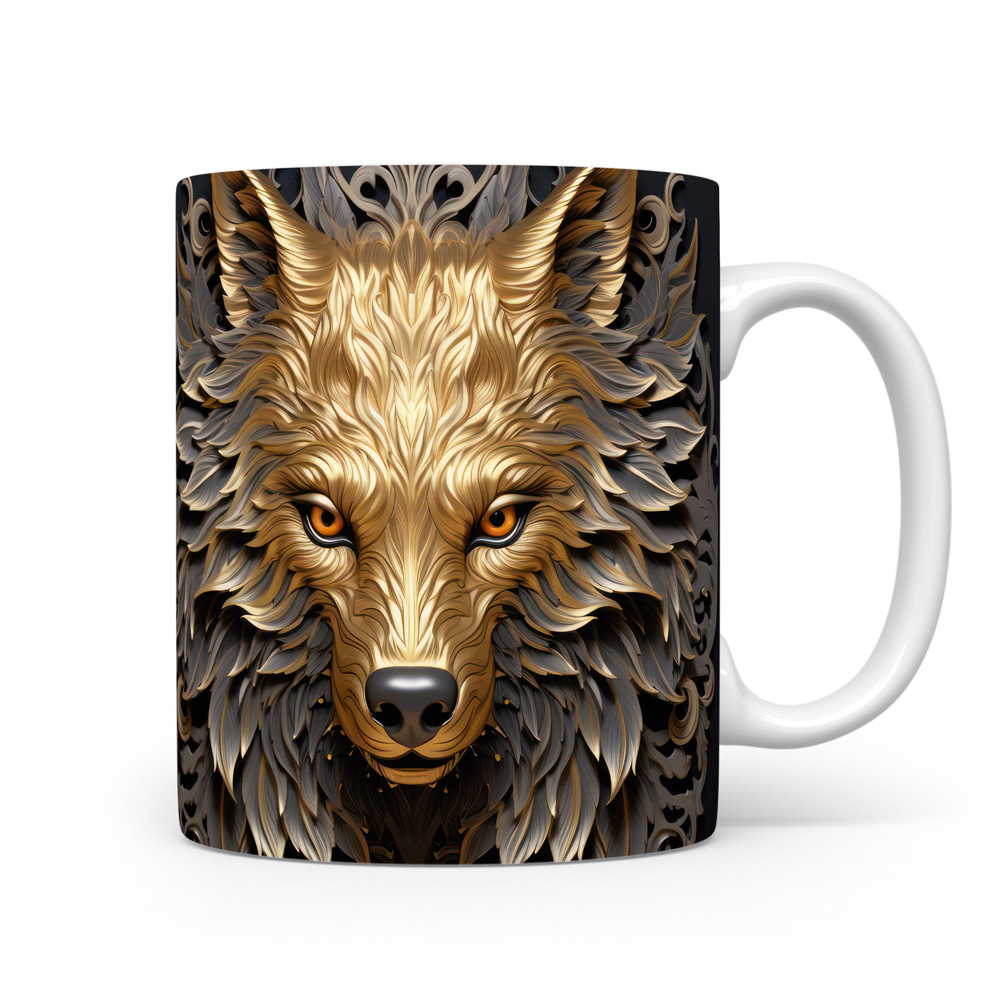 Hrnek se zlatým vlkem v detailním provedení je elegantním kouskem pro milovníky přírody. Tento hrnek je skvělým dárkem pro přátele nebo rodinu, kteří ocení unikátní design. Materiál: keramika. Objem: 330 ml. Vhodné do myčky i mikrovlnky. Díky svému stylovému vzhledu přidá šmrnc každému stolu.