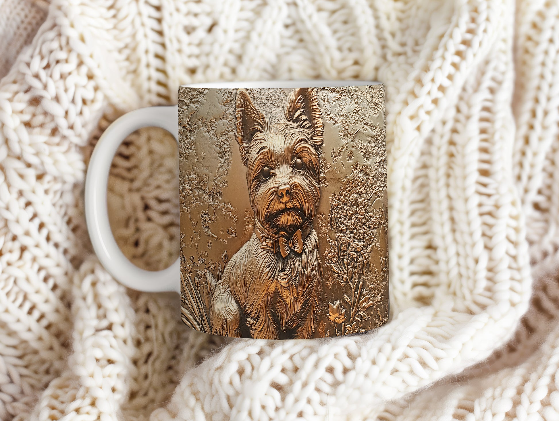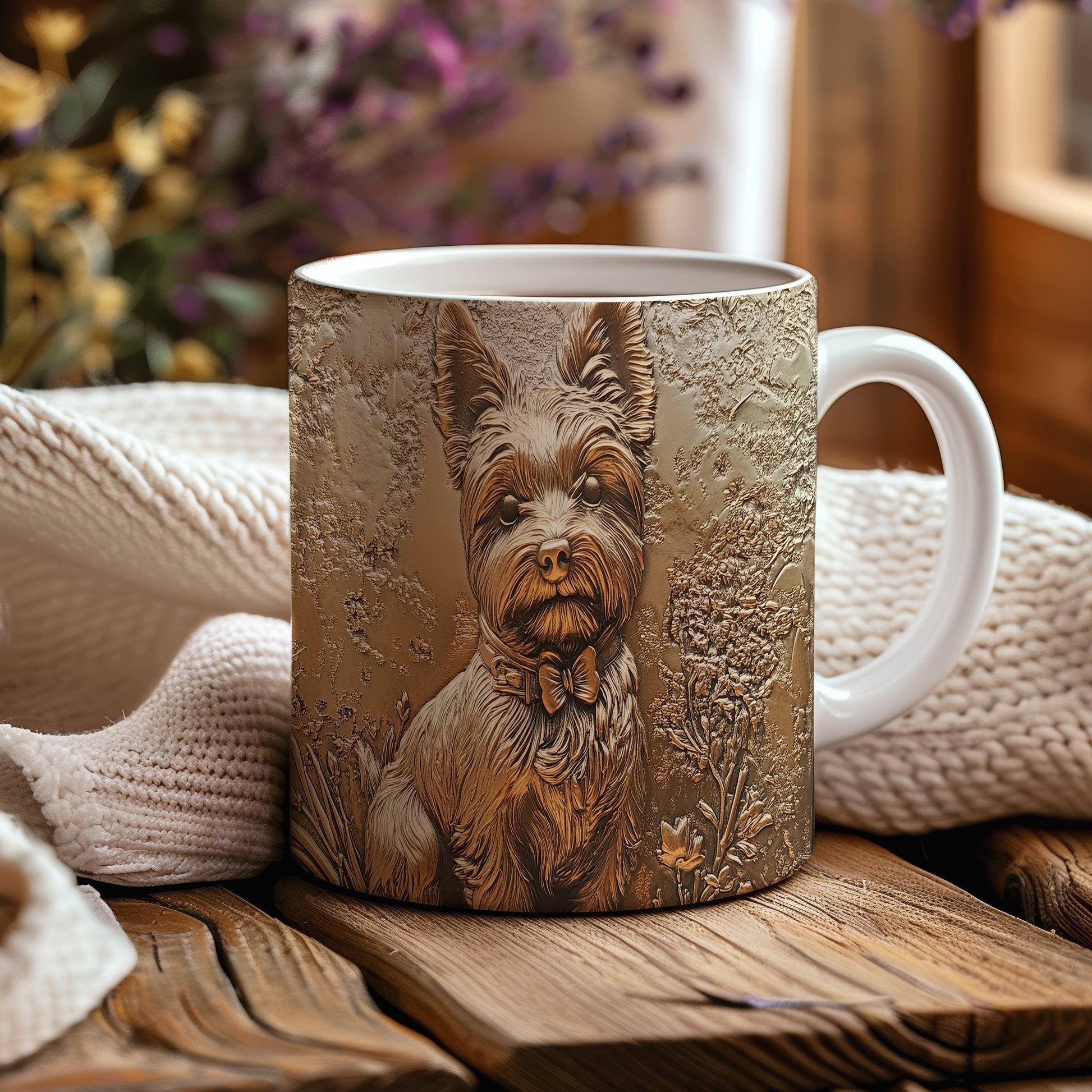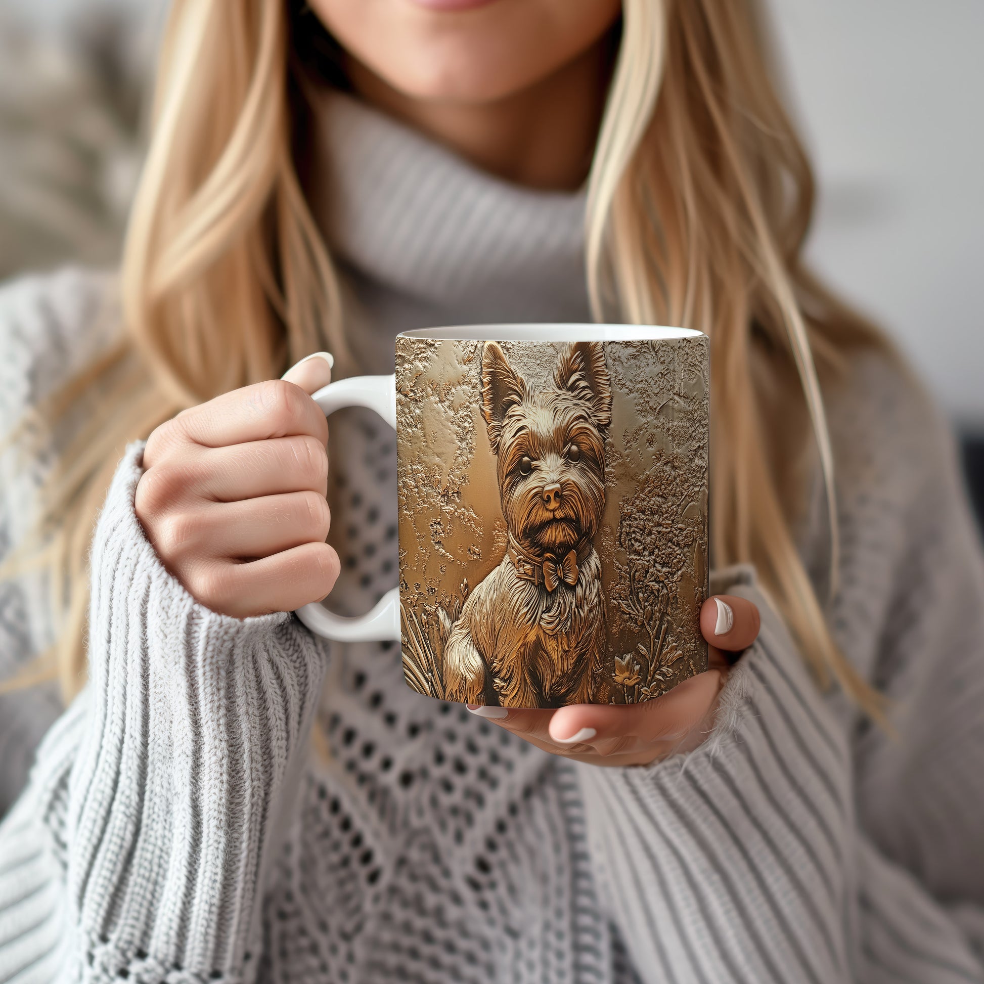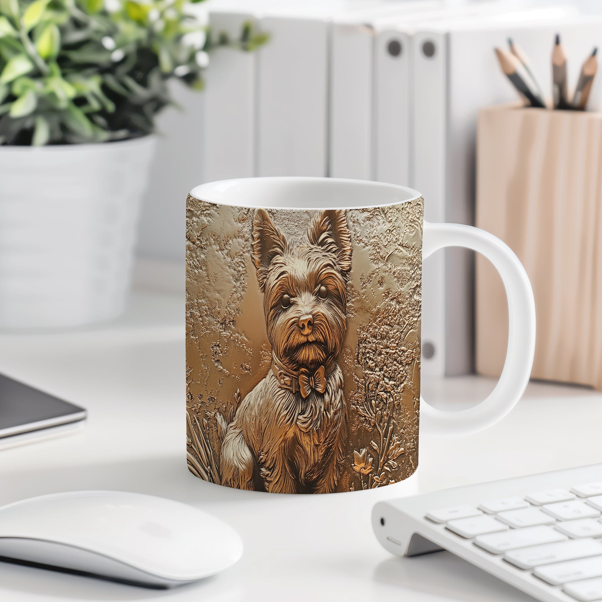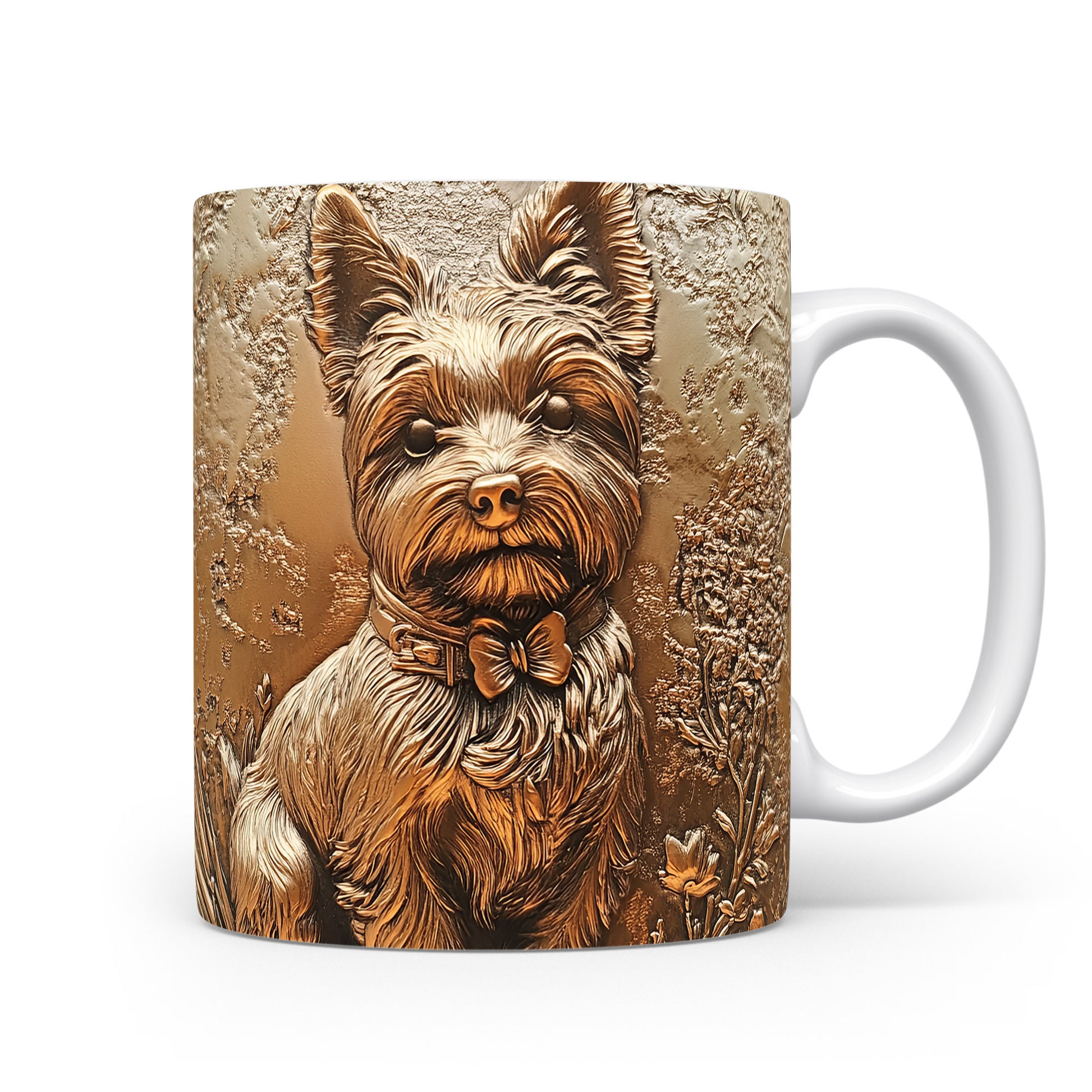Tento hrnek s motivem zlatého yorkshirského teriéra je stylovým kouskem pro milovníky psů. Skvěle se hodí jako dárek pro přátele nebo rodinu, kteří mají rádi tento plemeno. Materiál: keramika. Objem: 330 ml. Vhodné do myčky i mikrovlnky. Užívejte si svůj oblíbený nápoj s tímto jedinečným designem.