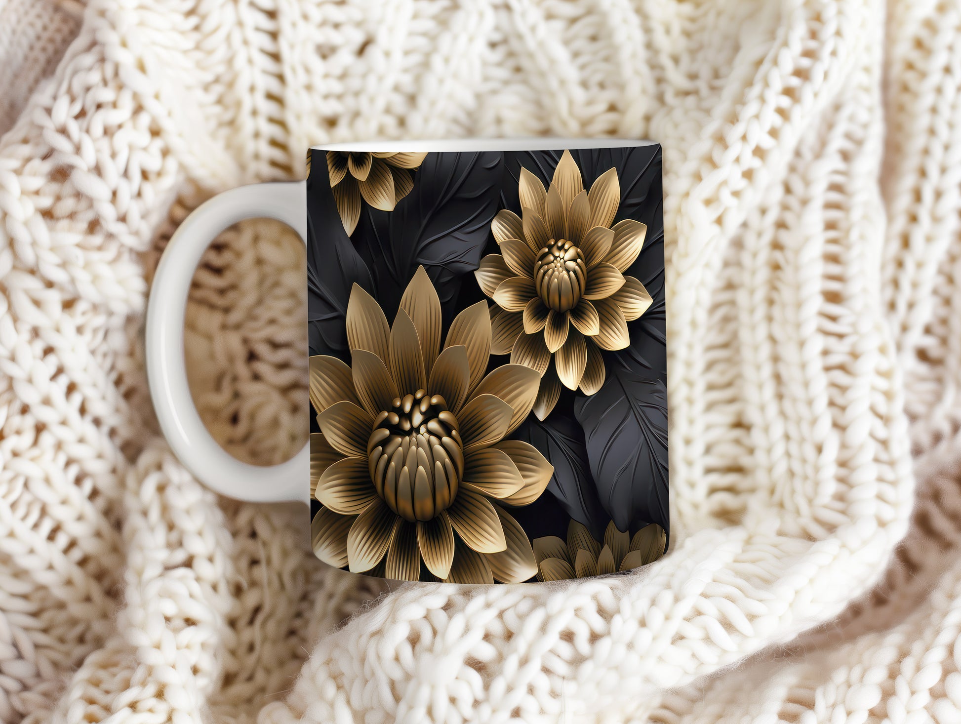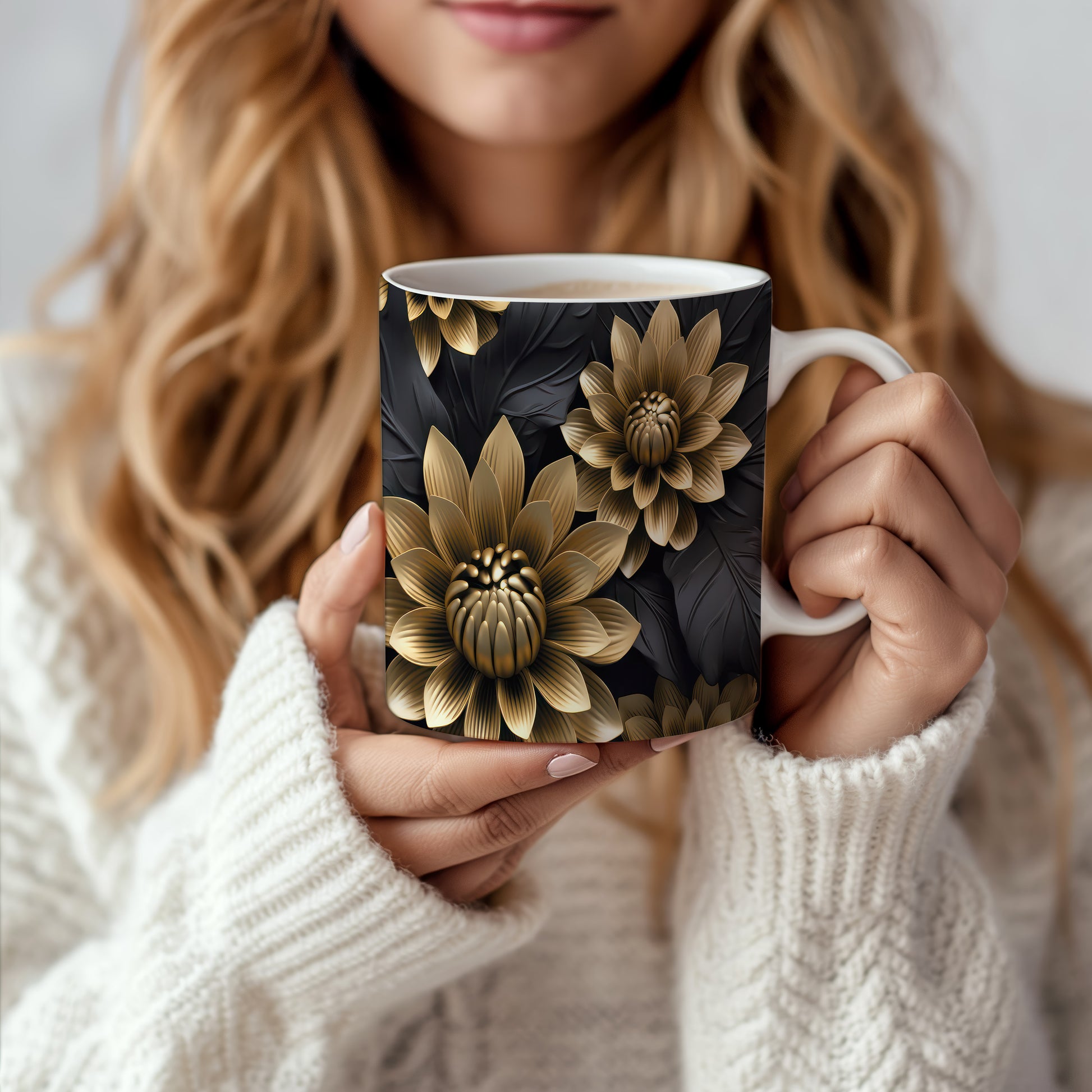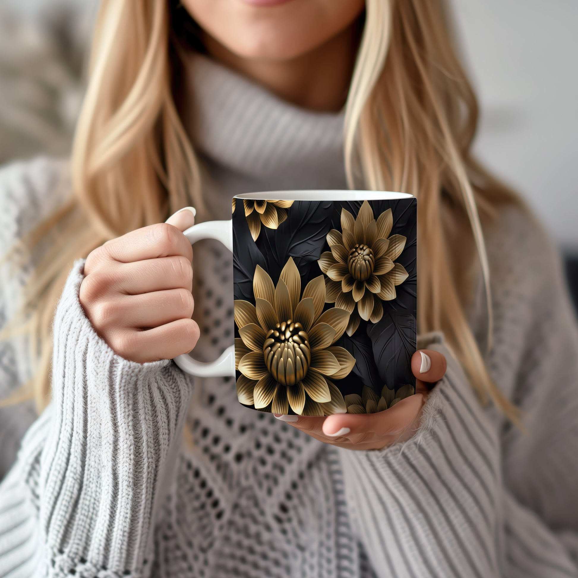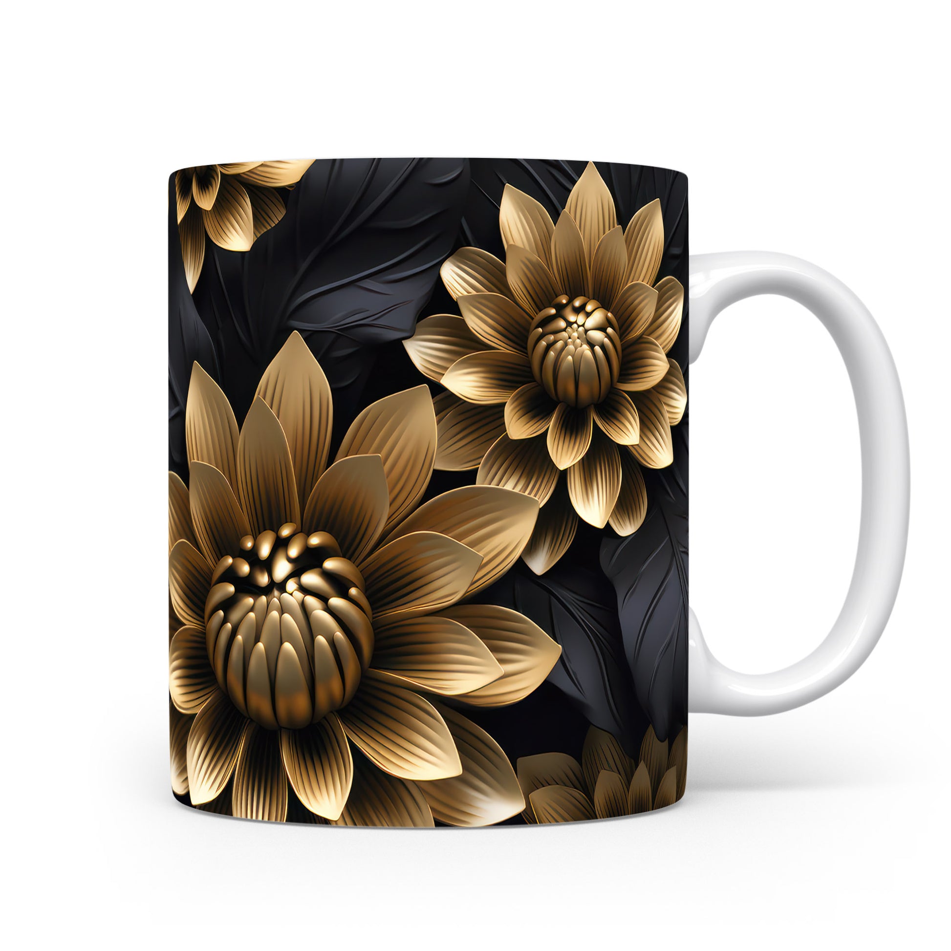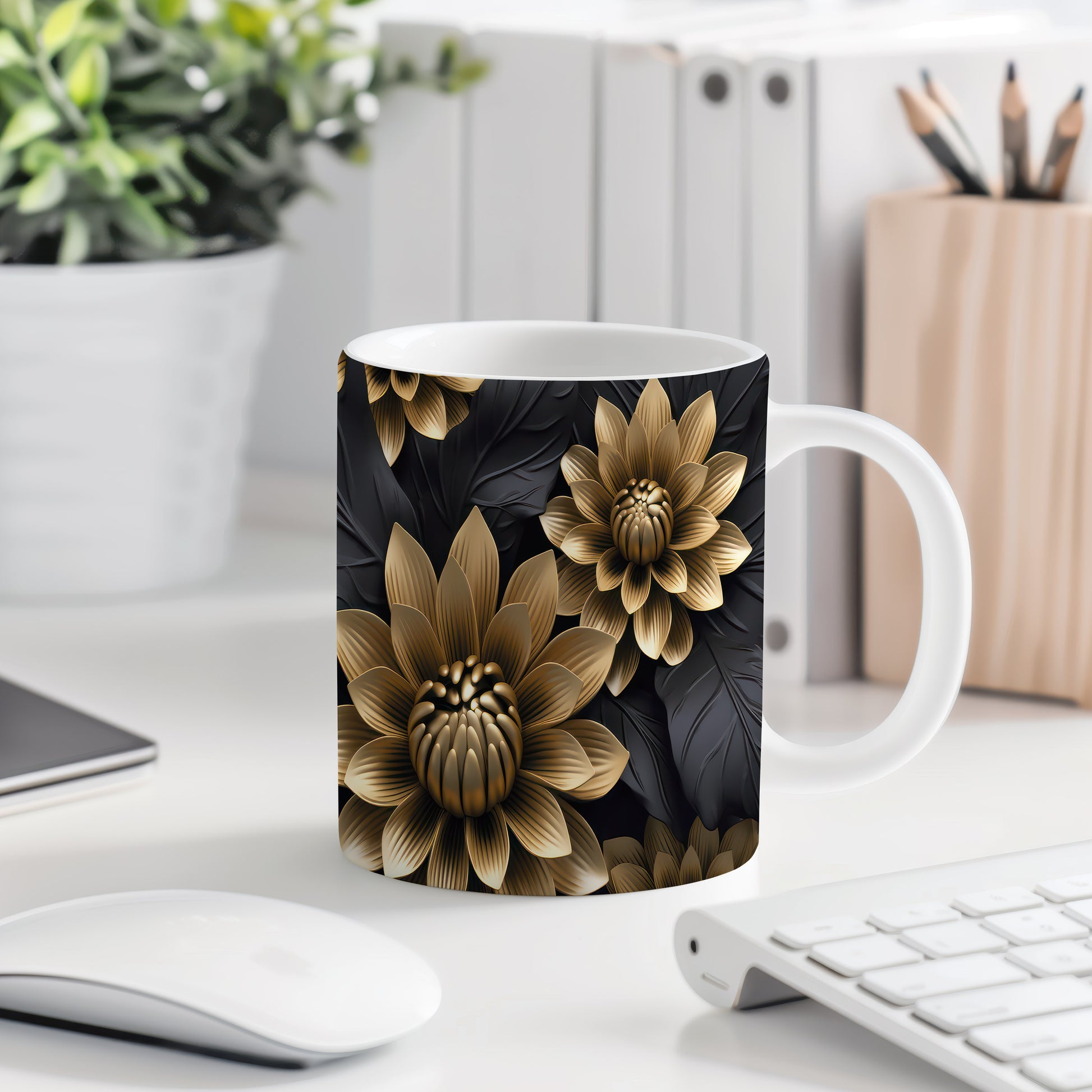 Elegantní hrnek s motivem zlatých květin na černém pozadí. Tento stylový kousek je ideální pro milovníky krásného designu a skvělým dárkem pro vaše blízké. Materiál: keramika. Objem: 330 ml. Vhodné do myčky i mikrovlnky. Používání tohoto hrnku přináší radost z každého doušku.