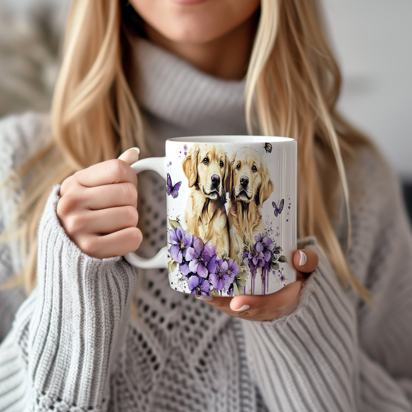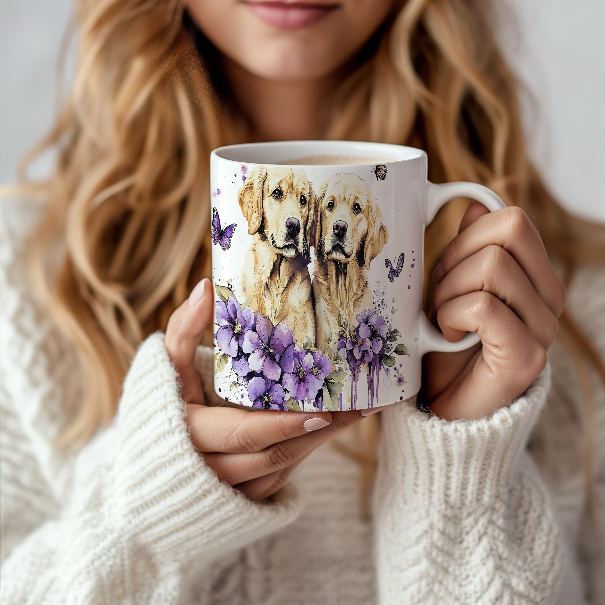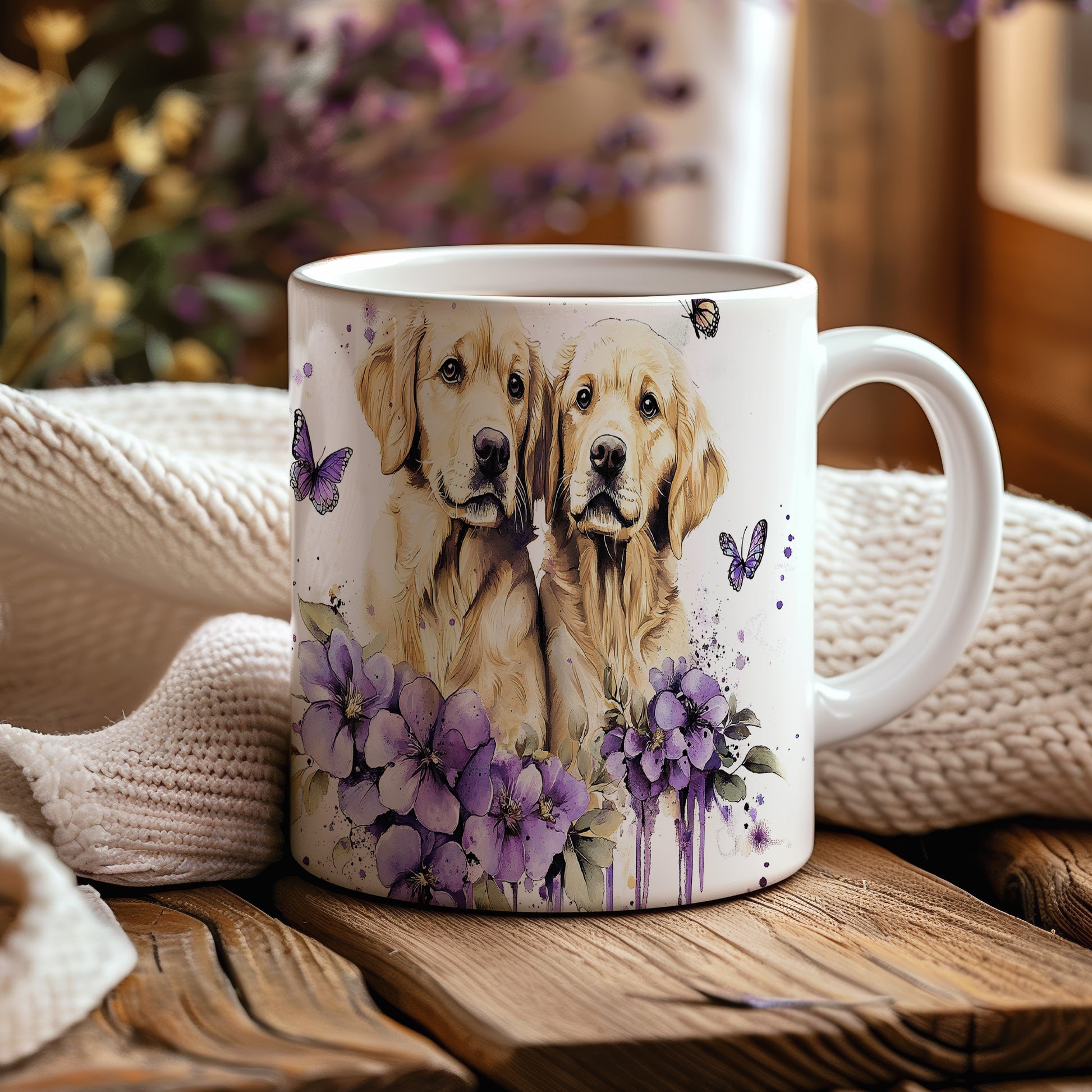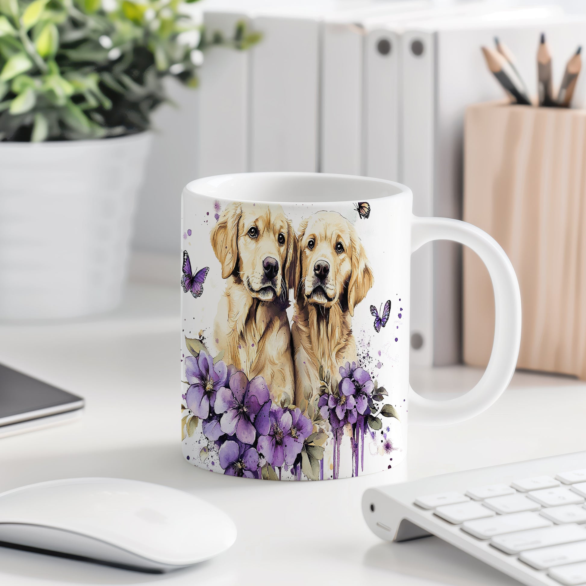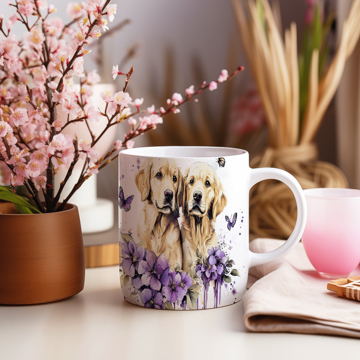 Tento keramický hrnek s motivem zlatých retrívrů a květin je skvělou volbou pro milovníky psů a přírody. Je ideální jako dárek pro přátele nebo rodinu, kteří ocení stylové a praktické doplňky. Materiál: keramika. Objem: 330 ml. Vhodné do myčky i mikrovlnky. Při každém doušku si užijete příjemný pocit a krásný design.