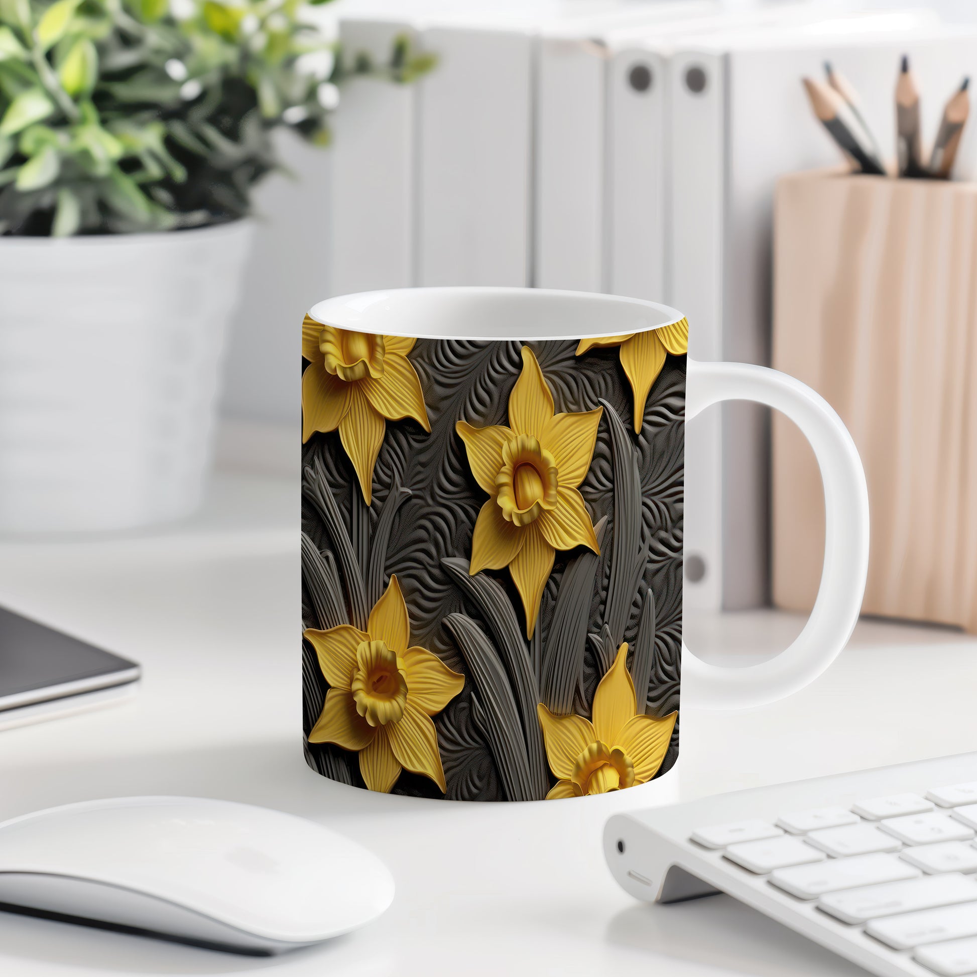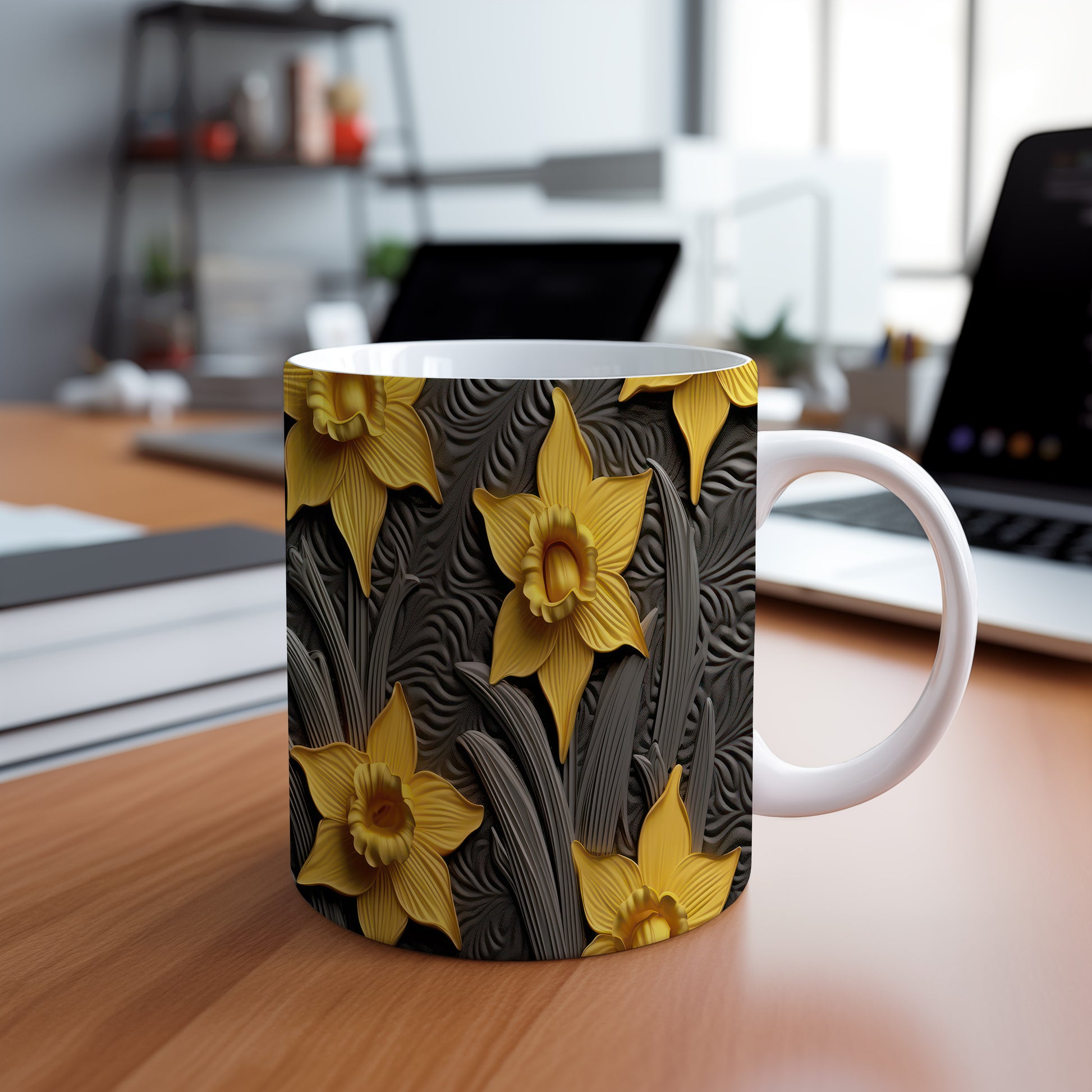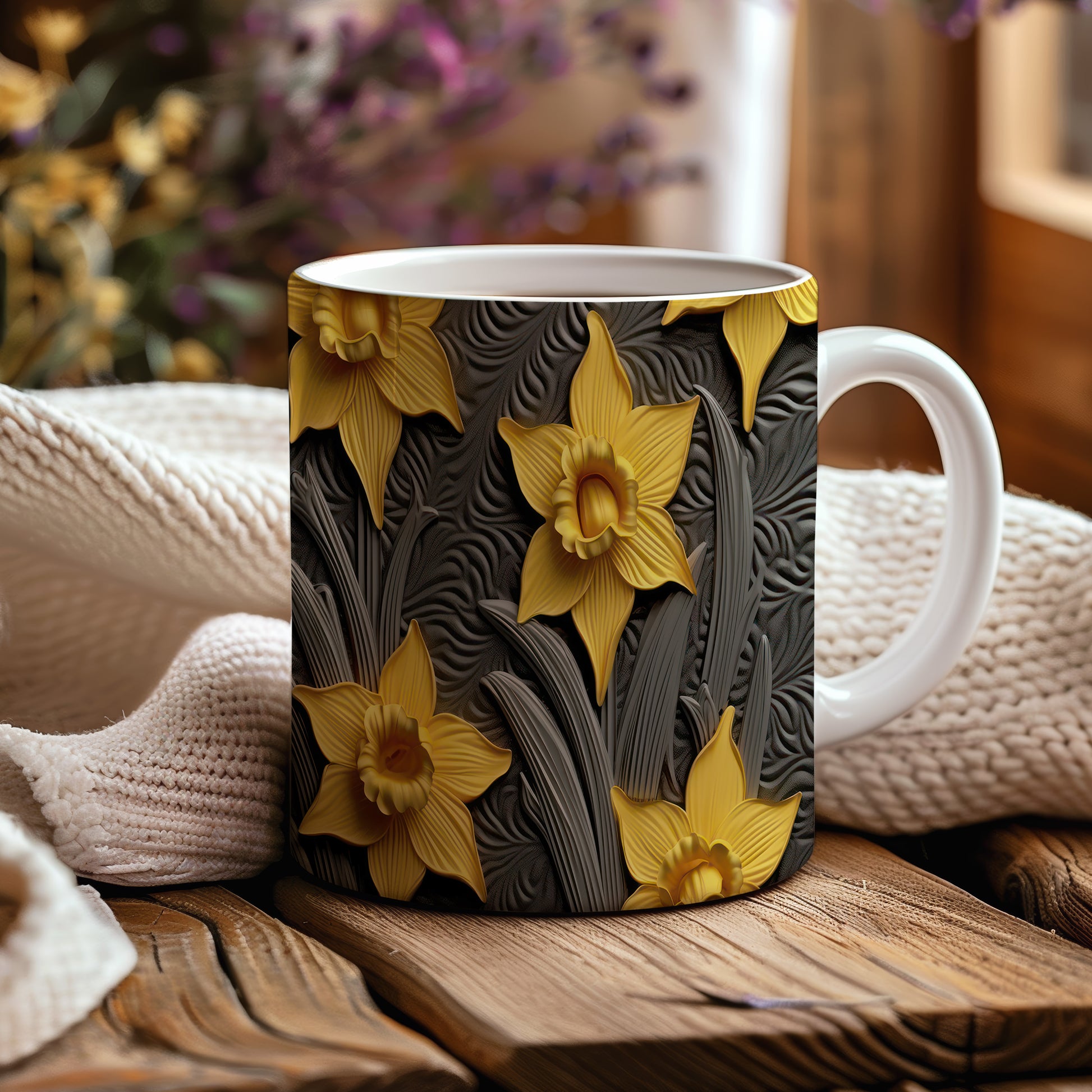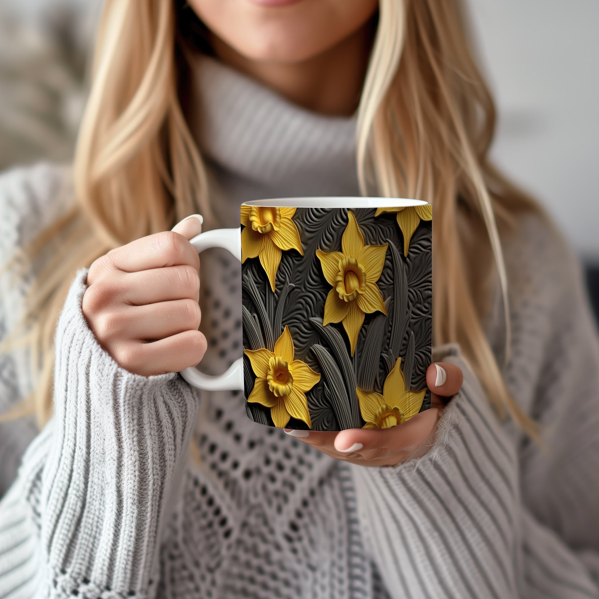 Hrnek s žlutými květy narcisů je elegantní a stylový kousek, který potěší milovníky přírody. Tento hrnek je ideální jako dárek pro přátele nebo rodinu, kteří ocení krásu květin. Materiál: keramika. Objem: 330 ml. Vhodné do myčky i mikrovlnky. Díky svému designu přináší do každodenního pití radost a pozitivní energii.