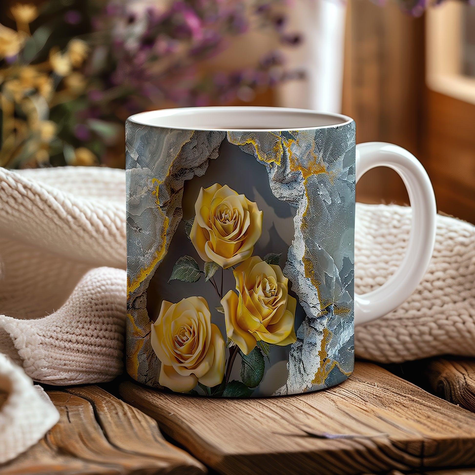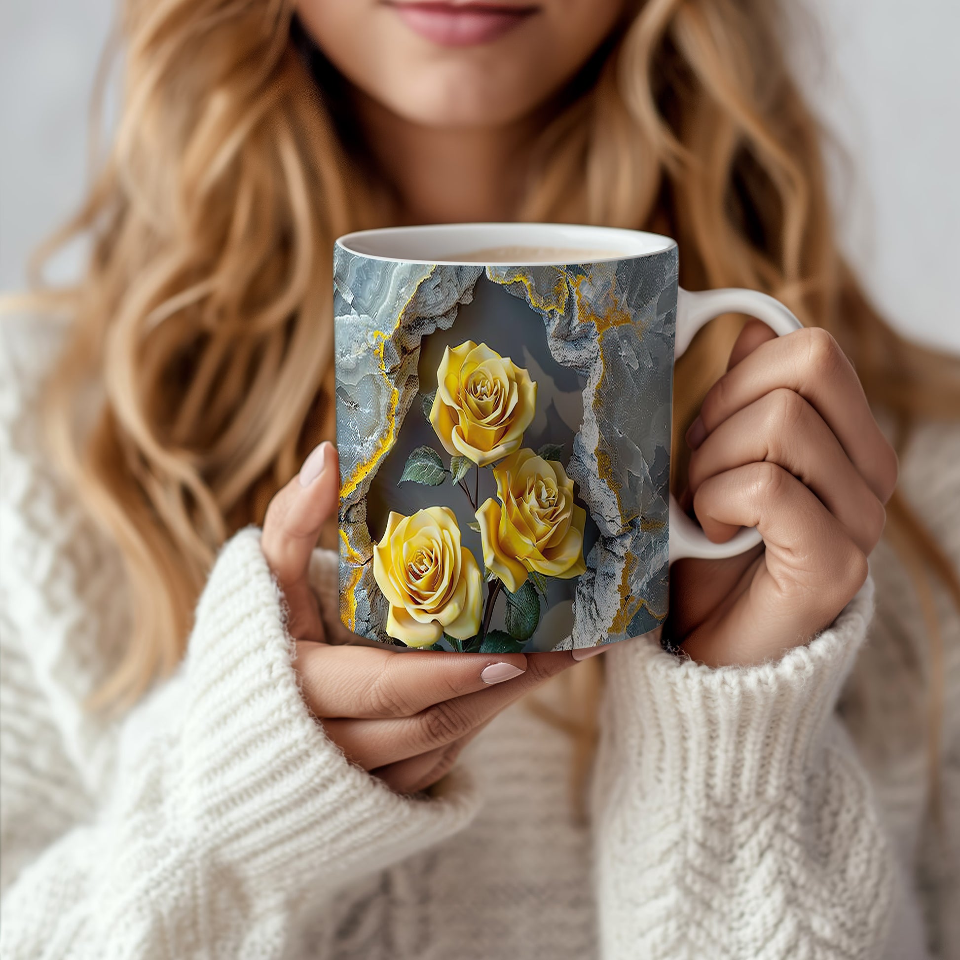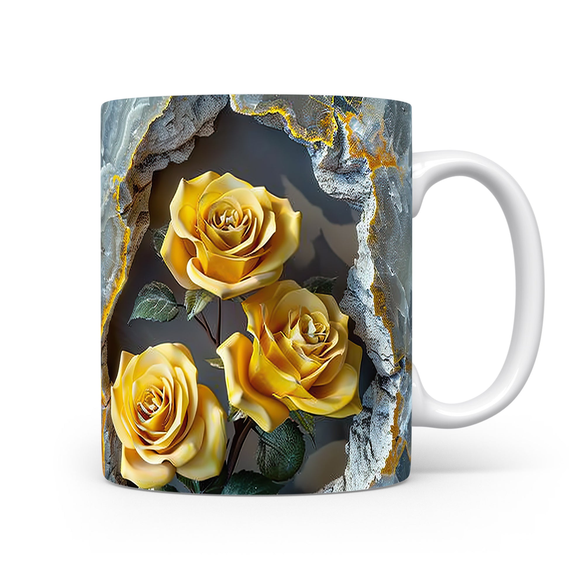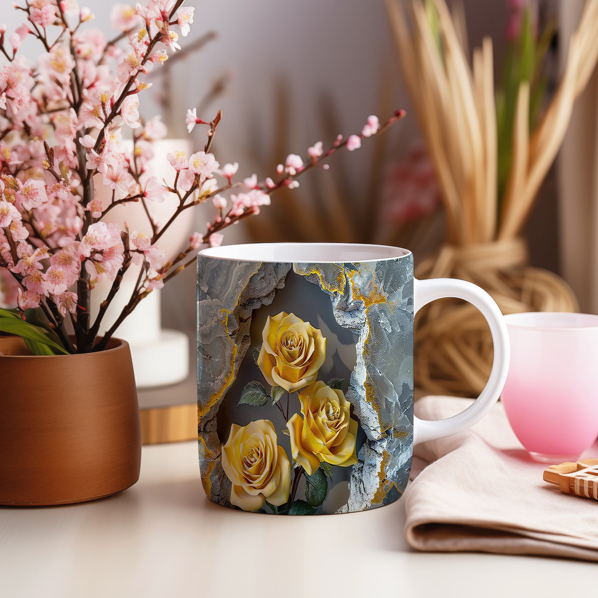 Hrnek s motivem žlutých růží v elegantním stylu. Tento krásný kousek potěší každého milovníka květin a skvělého designu, ideální jako dárek pro blízké. Materiál: keramika. Objem: 330 ml. Vhodné do myčky i mikrovlnky. Užívejte si kávu nebo čaj v tomto stylovém hrnku, který dodá každému okamžiku šmrnc.