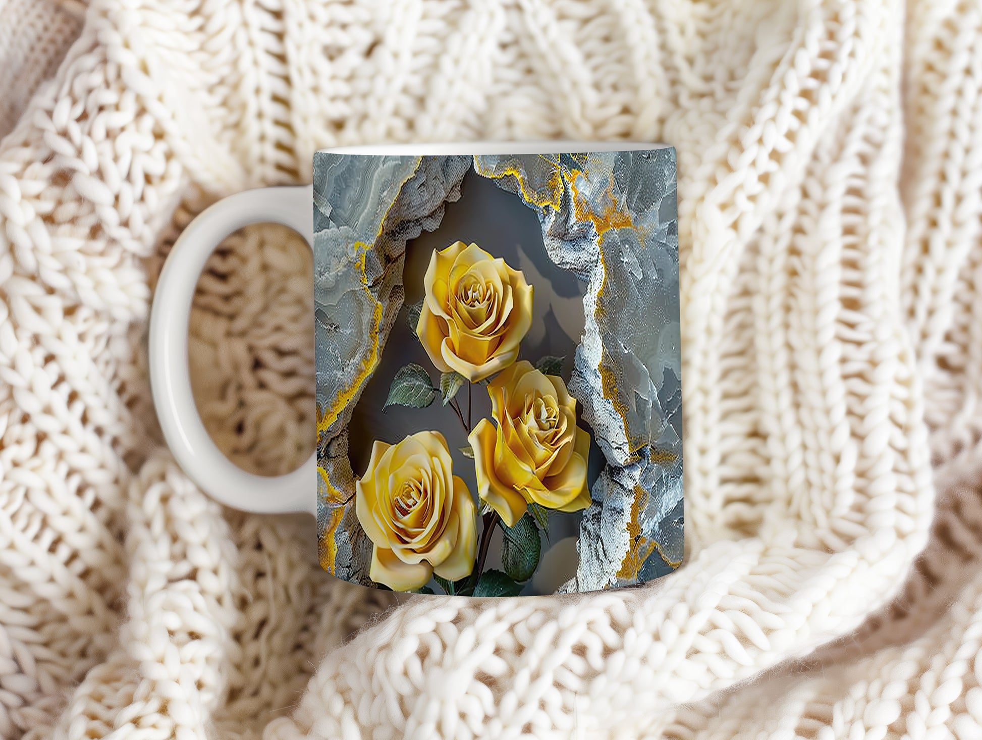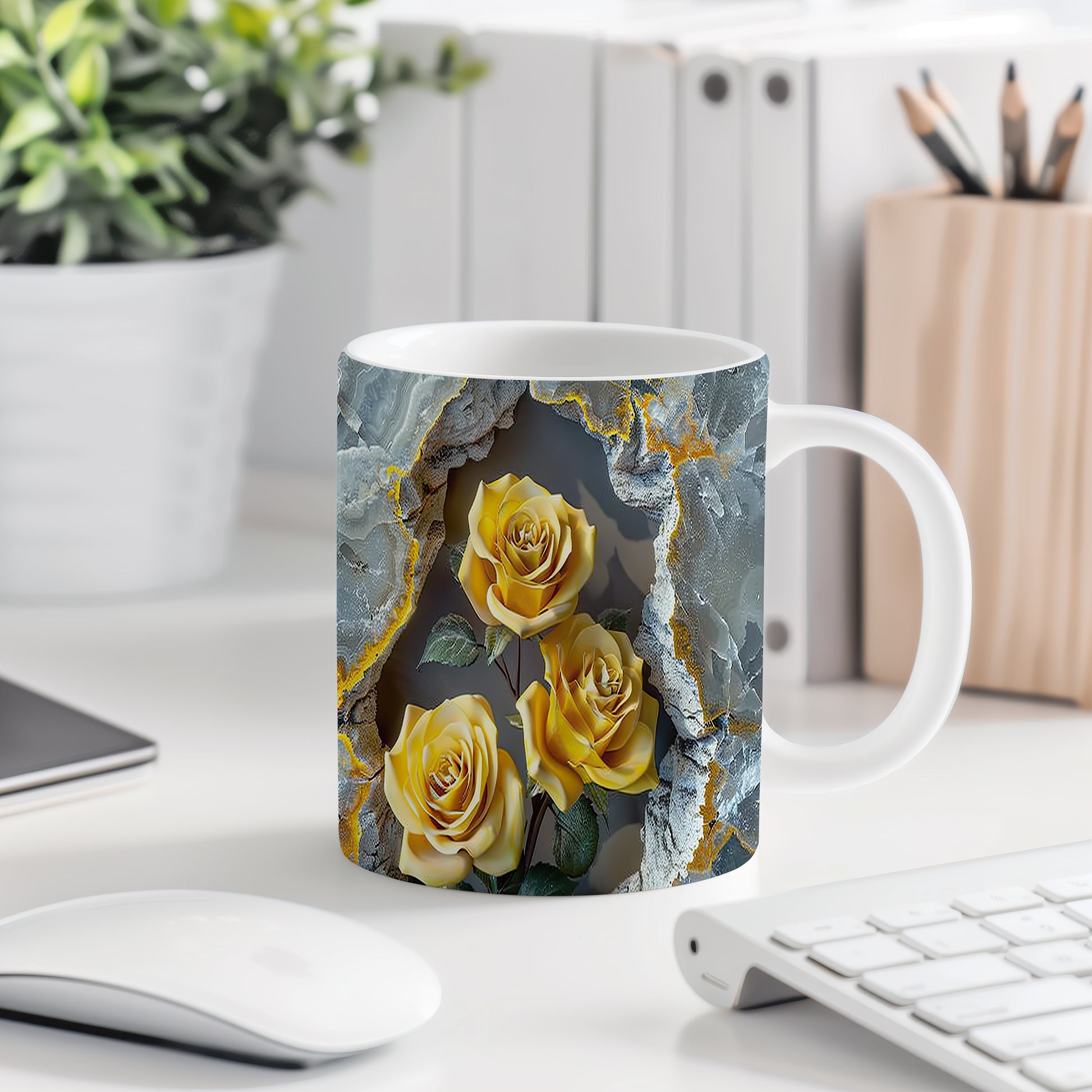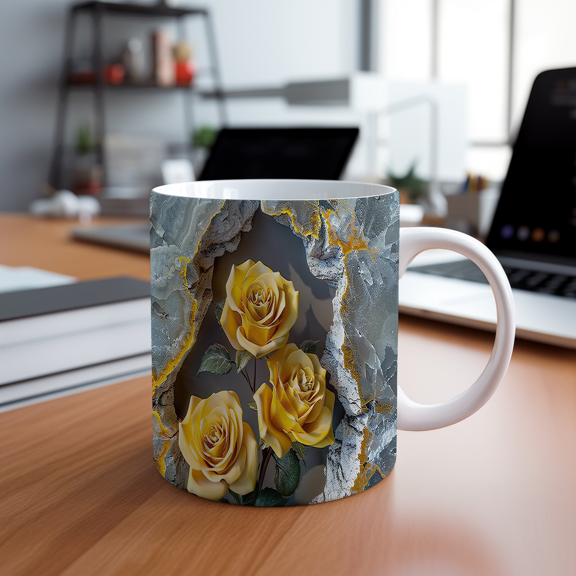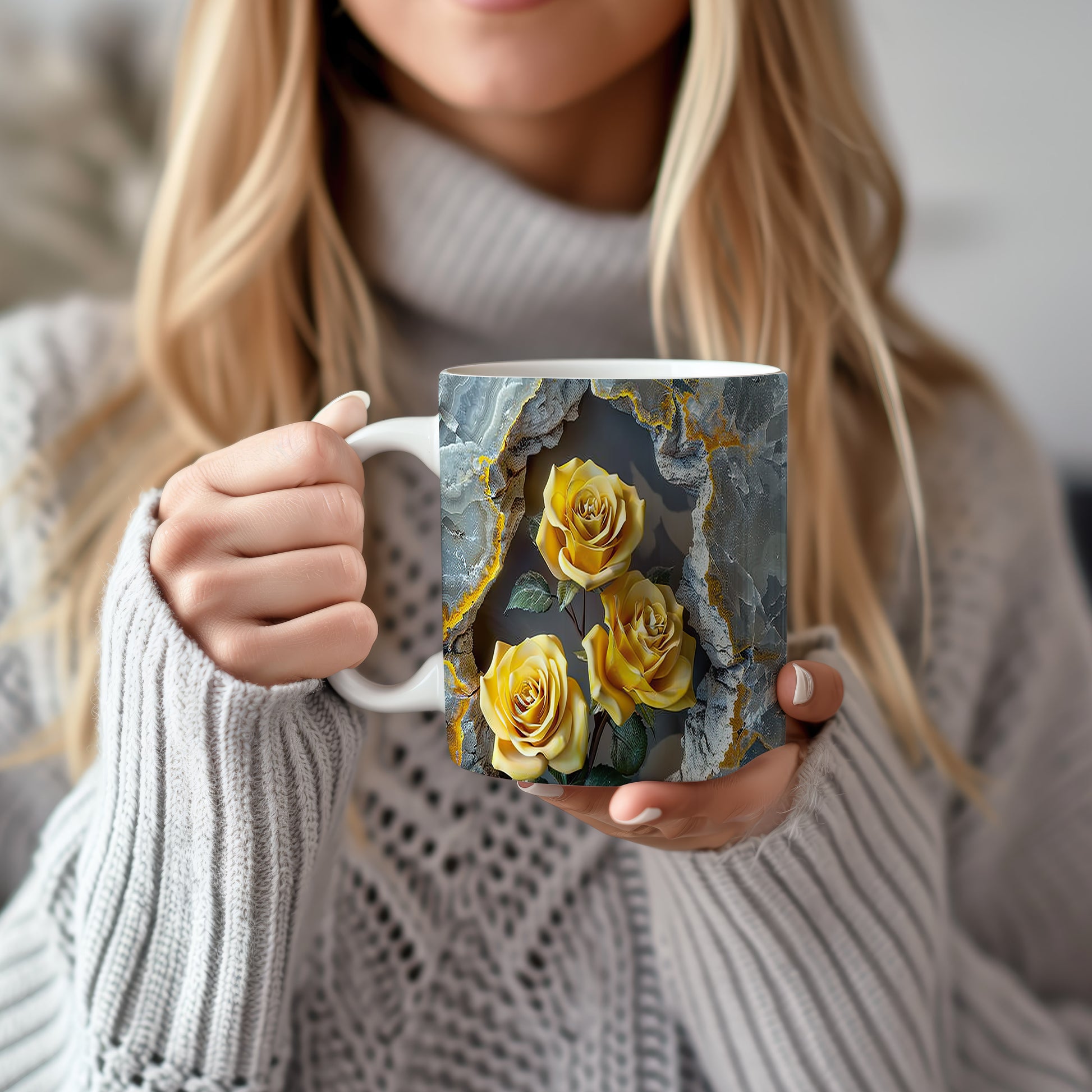 Hrnek s motivem žlutých růží v elegantním stylu. Tento krásný kousek potěší každého milovníka květin a skvělého designu, ideální jako dárek pro blízké. Materiál: keramika. Objem: 330 ml. Vhodné do myčky i mikrovlnky. Užívejte si kávu nebo čaj v tomto stylovém hrnku, který dodá každému okamžiku šmrnc.