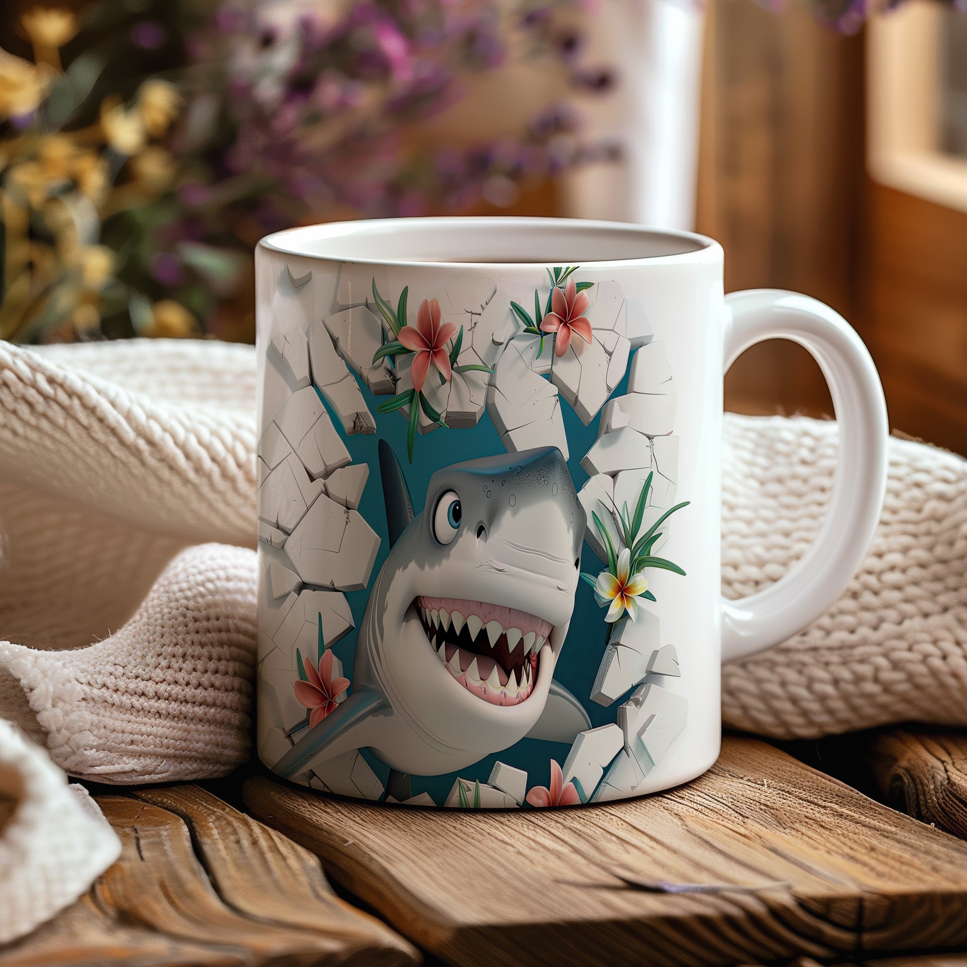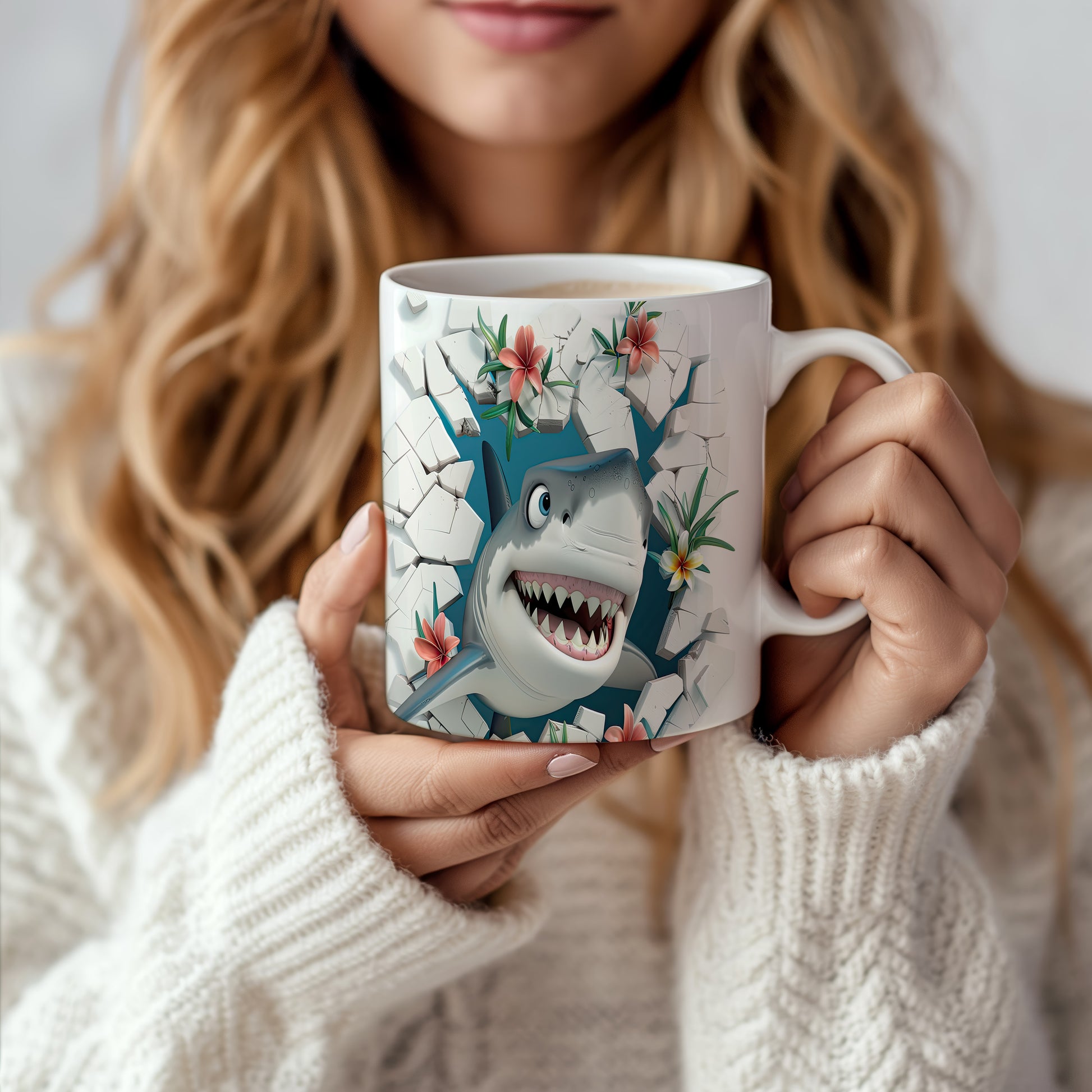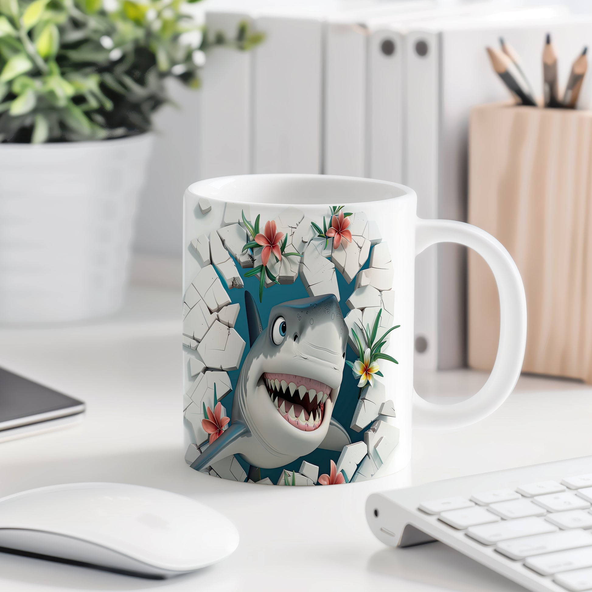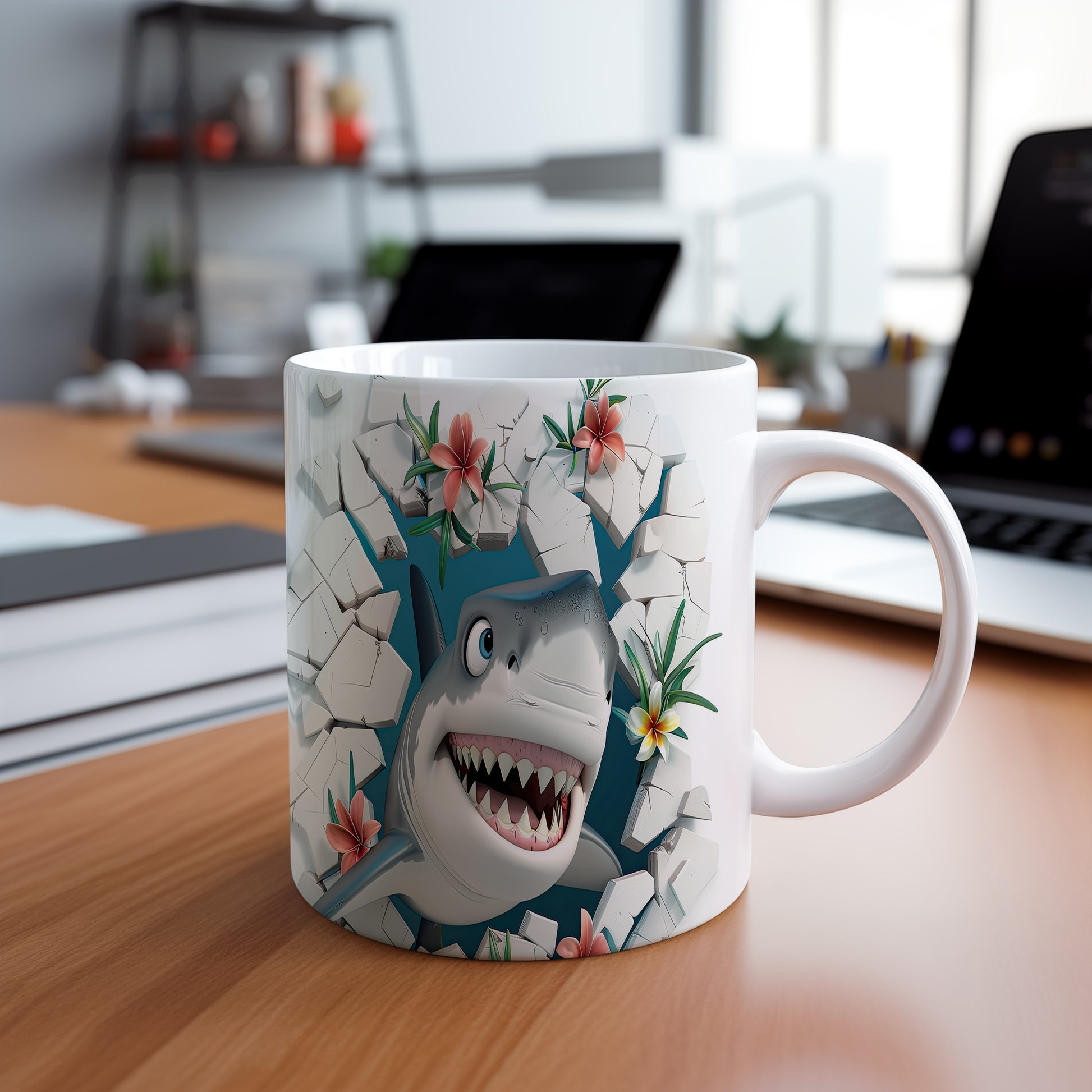 Tento keramický hrnek s motivem žraloka vyniká svým jedinečným designem. Je ideální pro milovníky mořských živočichů a skvělým dárkem pro každého, kdo má rád originální kousky. Materiál: keramika. Objem: 330 ml. Vhodné do myčky i mikrovlnky. Díky svému stylovému vzhledu přinese do každého dne radost a oživí vaše pití.