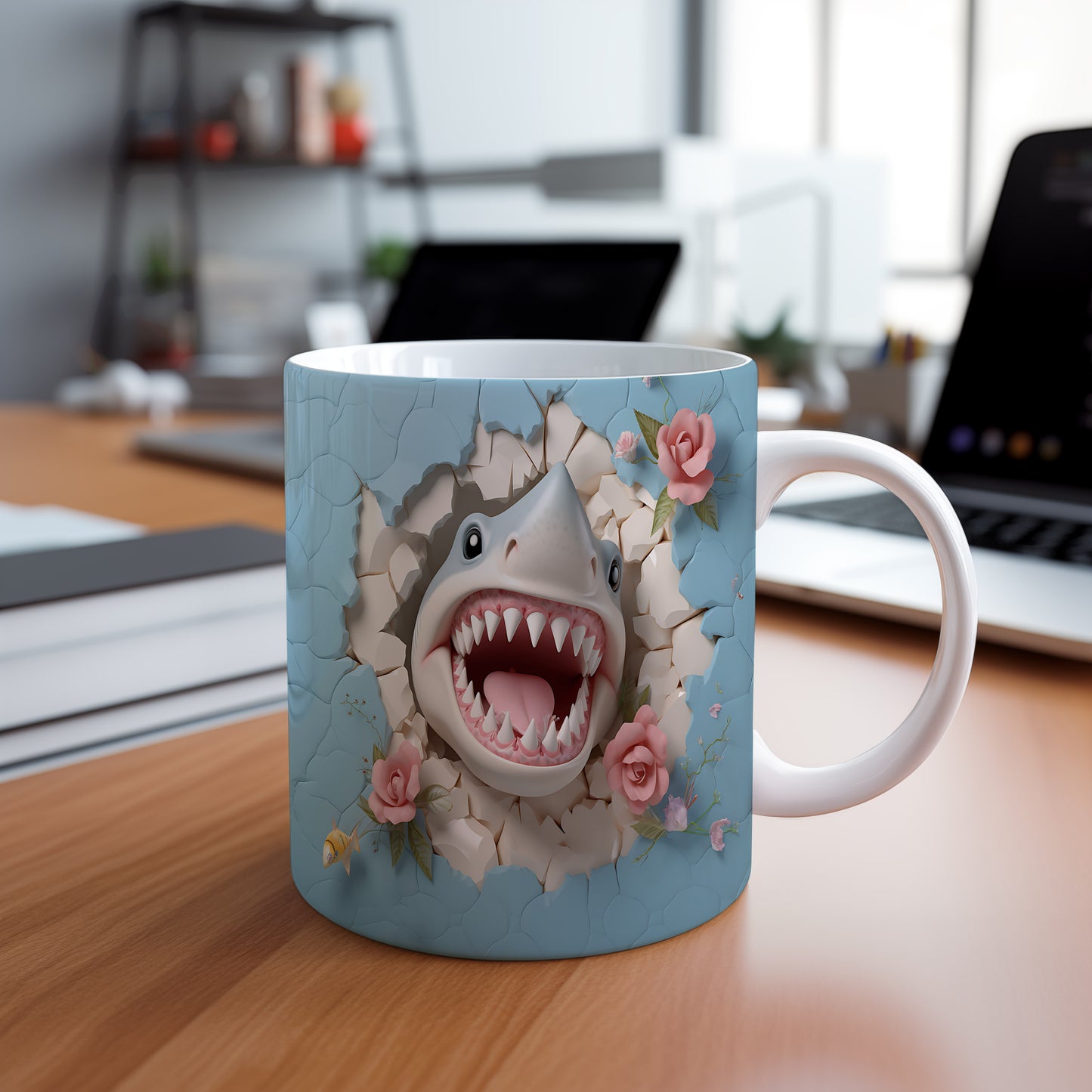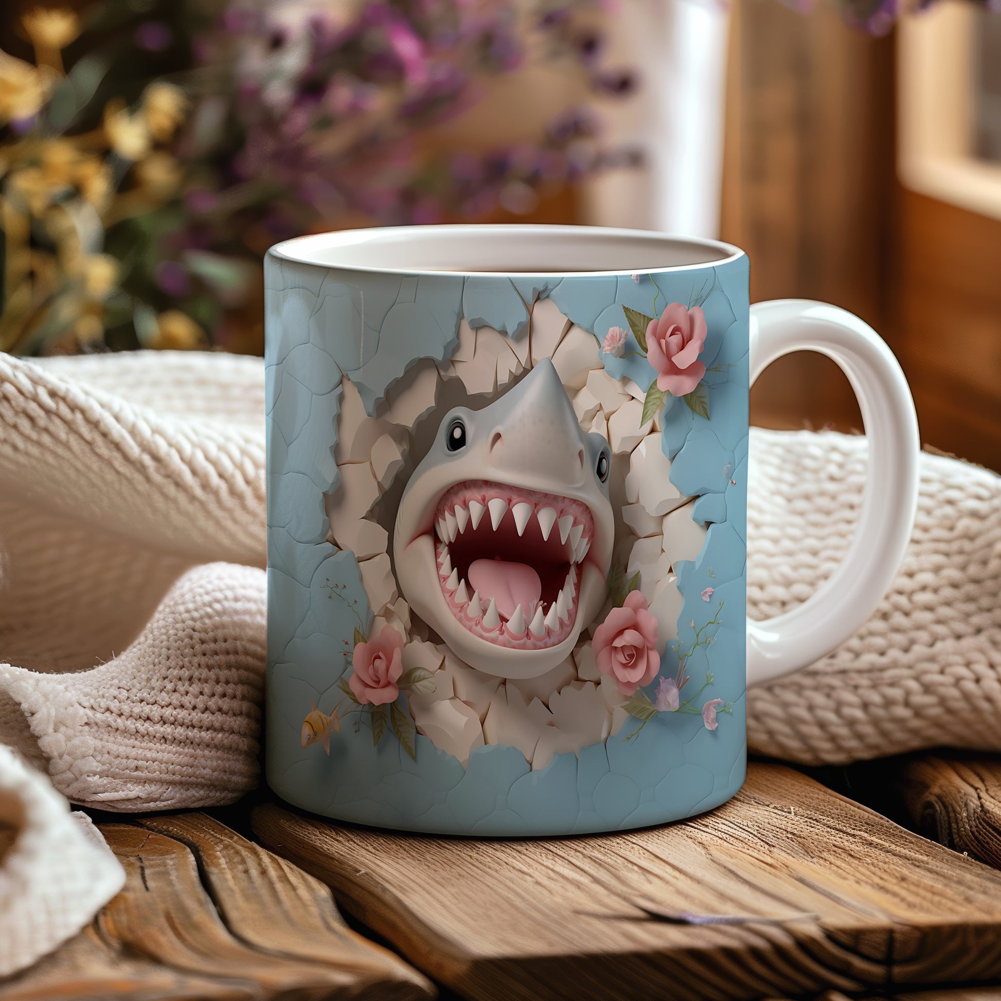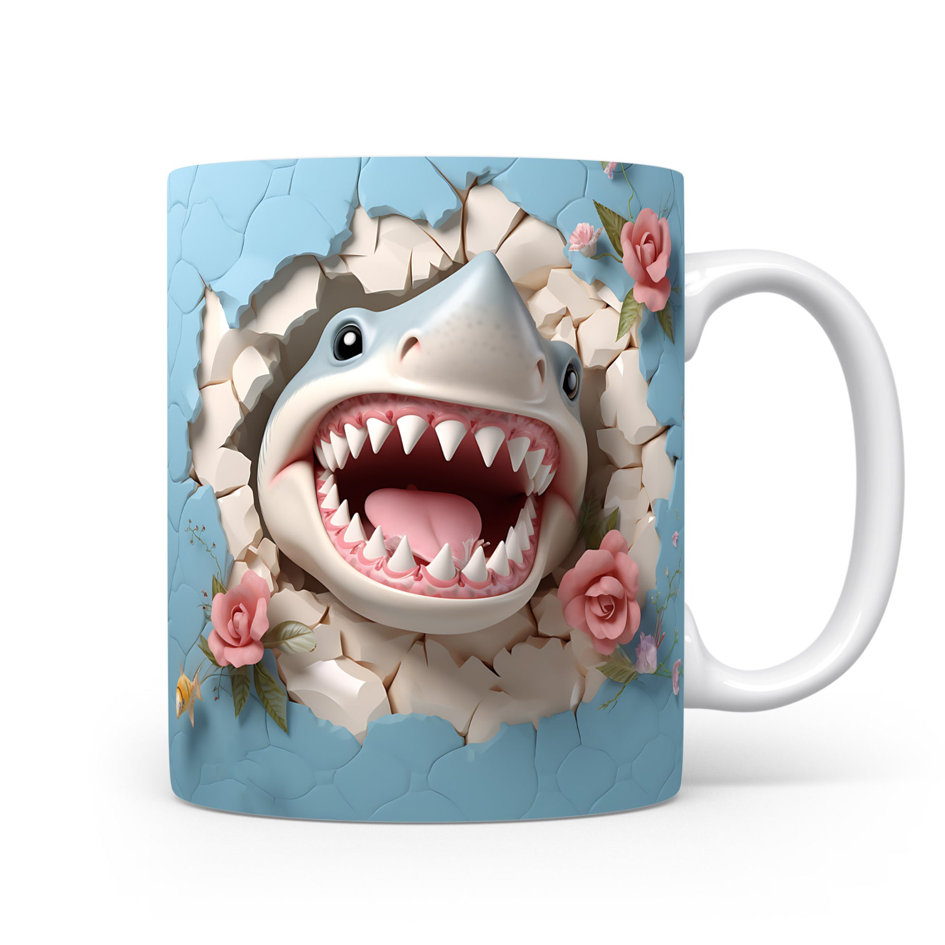 Hrnek s motivem žraloka obklopeného květinami přináší hravou atmosféru do každého dne. Tento originální kousek je ideální pro milovníky moře a přírody, skvělý tip na dárek pro přátele nebo rodinu. Materiál: keramika. Objem: 330 ml. Vhodné do myčky i mikrovlnky. Používáním tohoto hrnku si zpříjemníte každé sousto a nápoj.