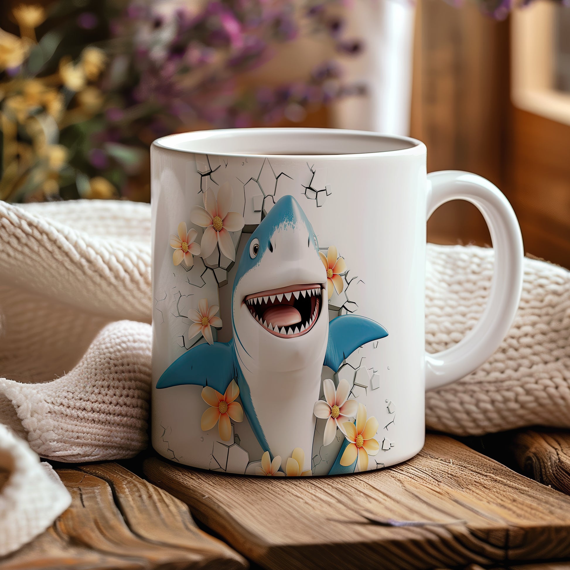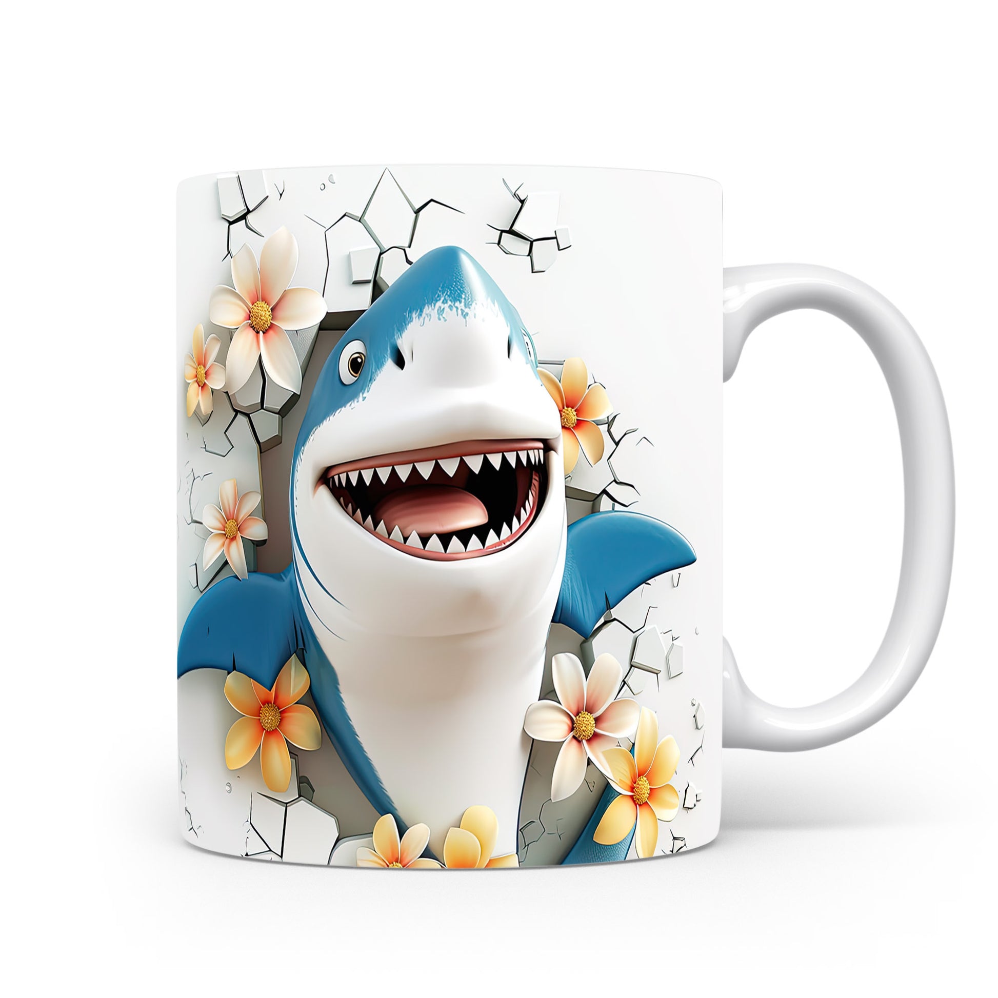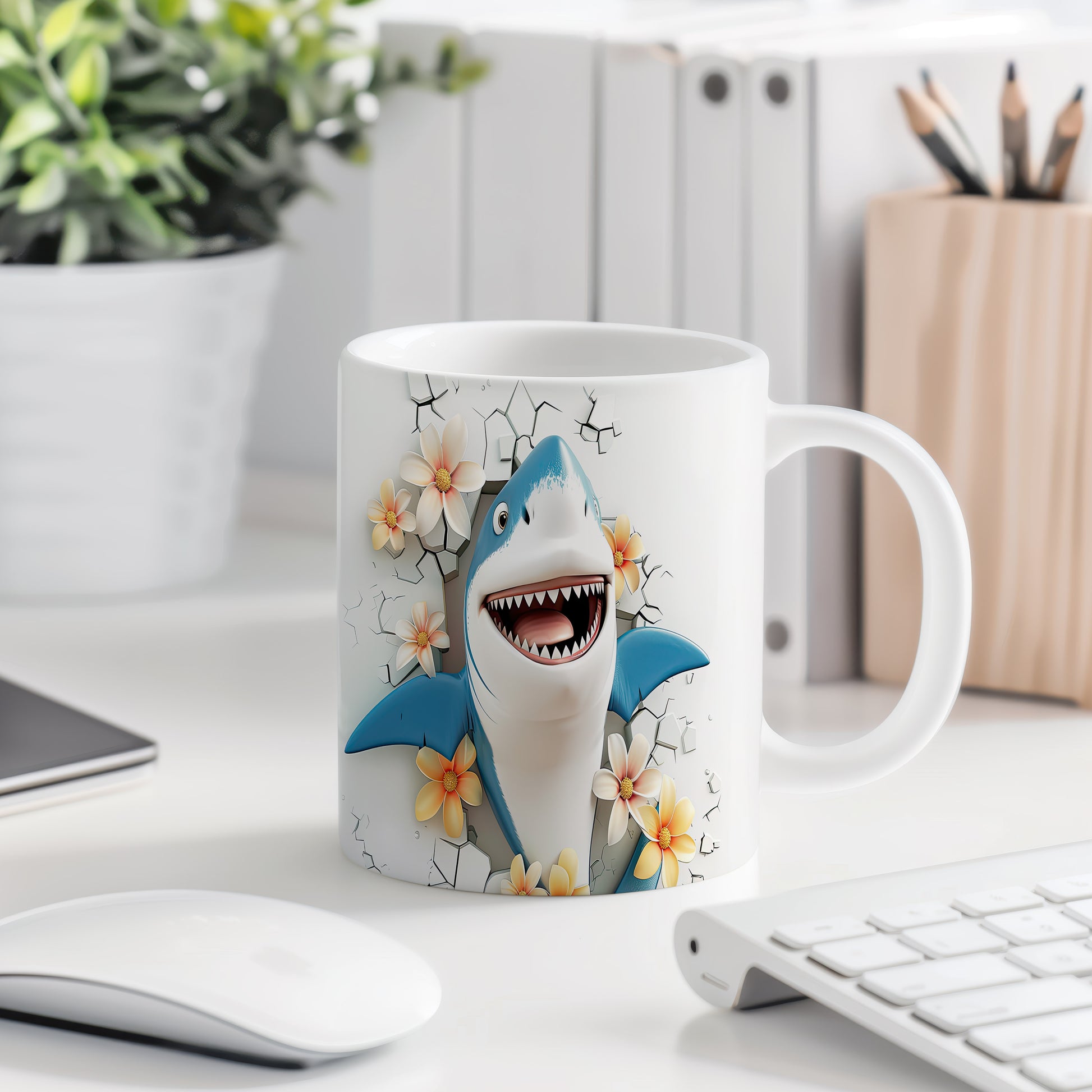 Tento keramický hrnek zobrazuje veselého žraloka s květinovým pozadím. Je ideální pro milovníky moře a zábavy, skvělý tip na dárek pro přátele nebo rodinu. Materiál: keramika. Objem: 330 ml. Vhodné do myčky i mikrovlnky. Používání tohoto hrnku přinese radost a oživí každé pití.