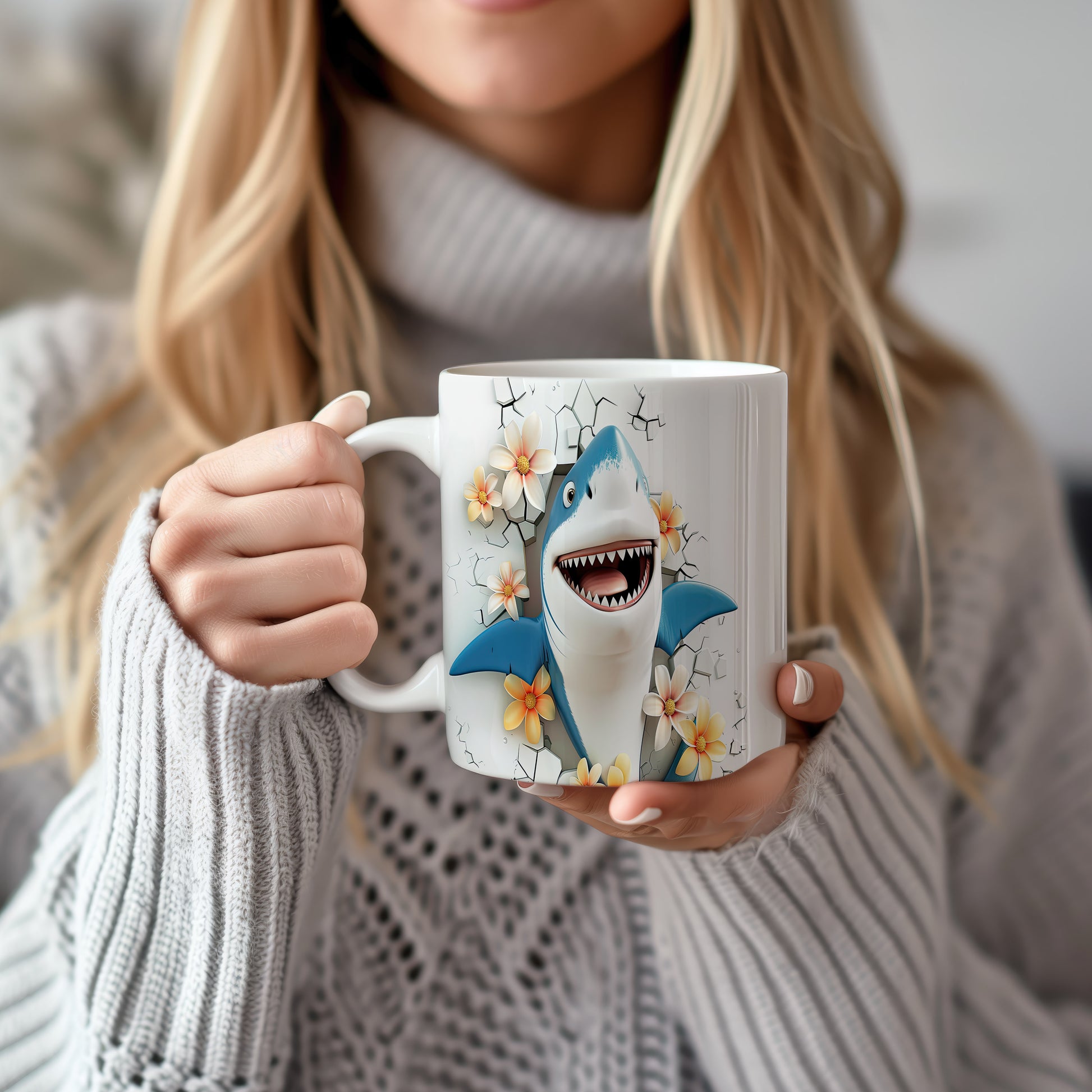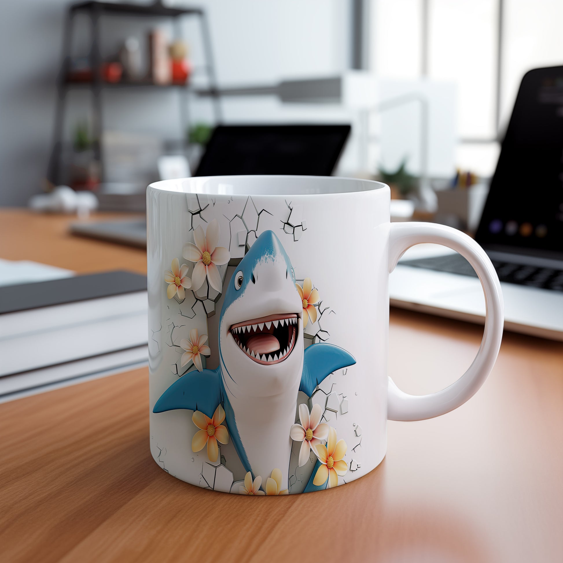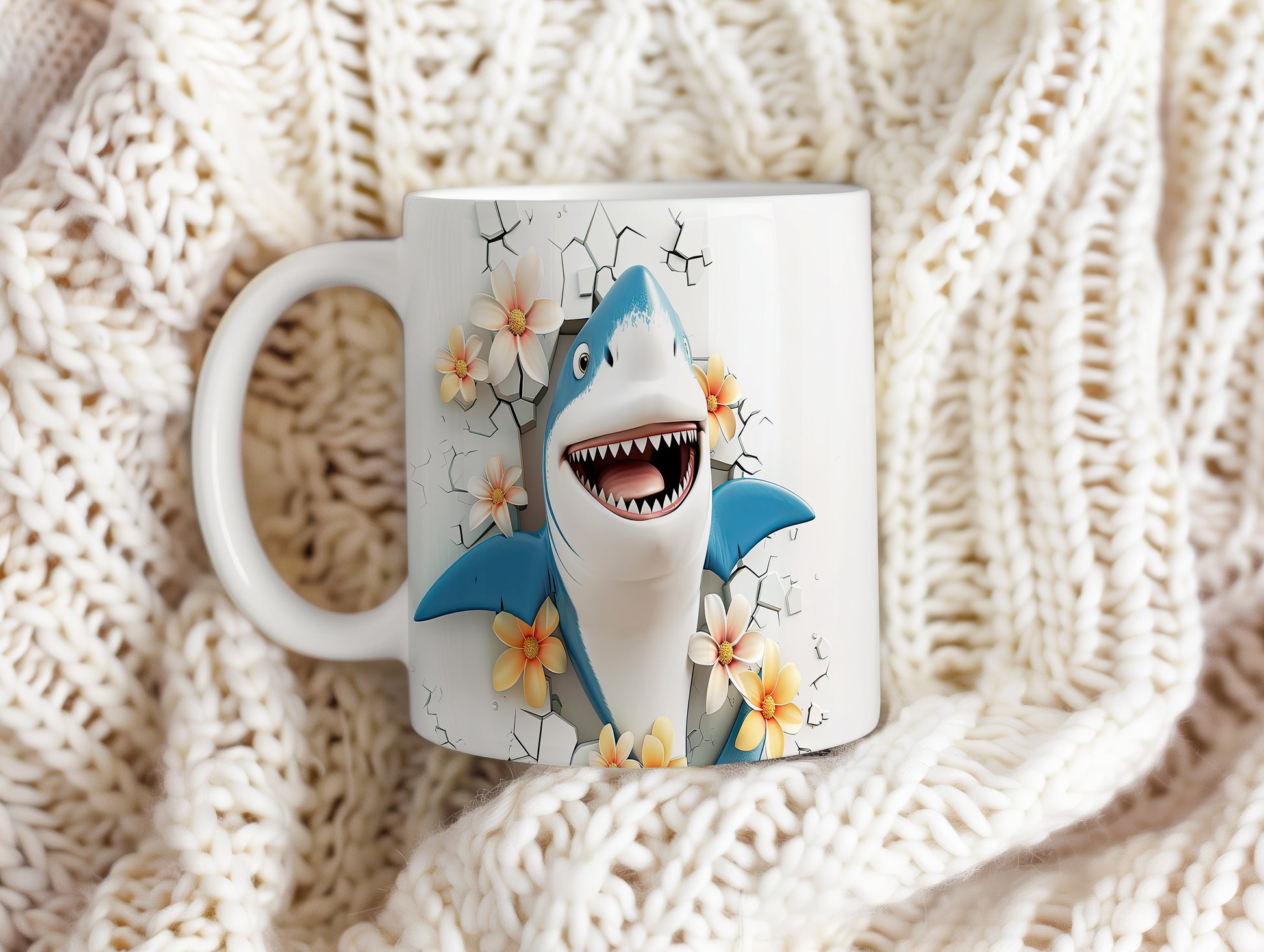 Tento keramický hrnek zobrazuje veselého žraloka s květinovým pozadím. Je ideální pro milovníky moře a zábavy, skvělý tip na dárek pro přátele nebo rodinu. Materiál: keramika. Objem: 330 ml. Vhodné do myčky i mikrovlnky. Používání tohoto hrnku přinese radost a oživí každé pití.