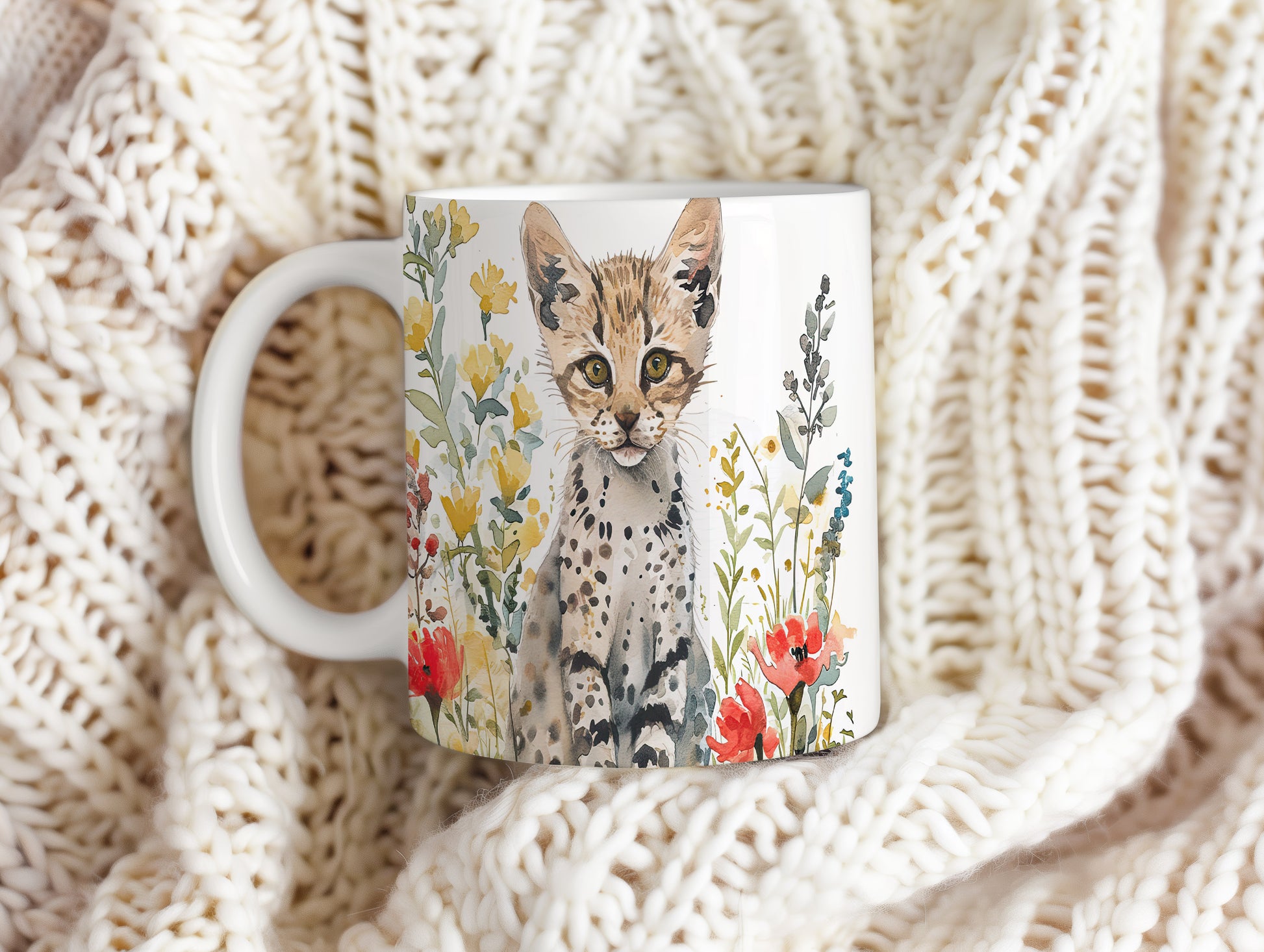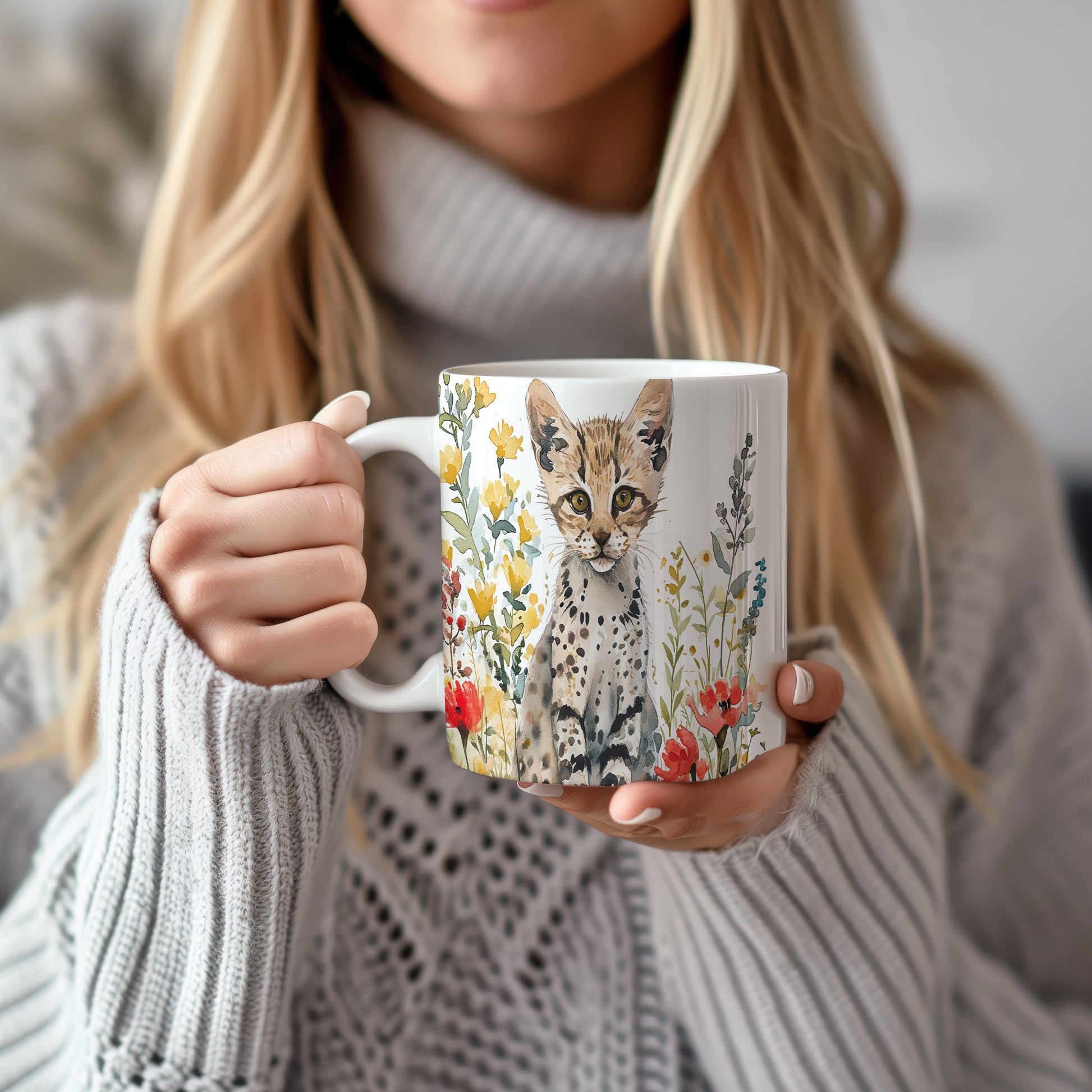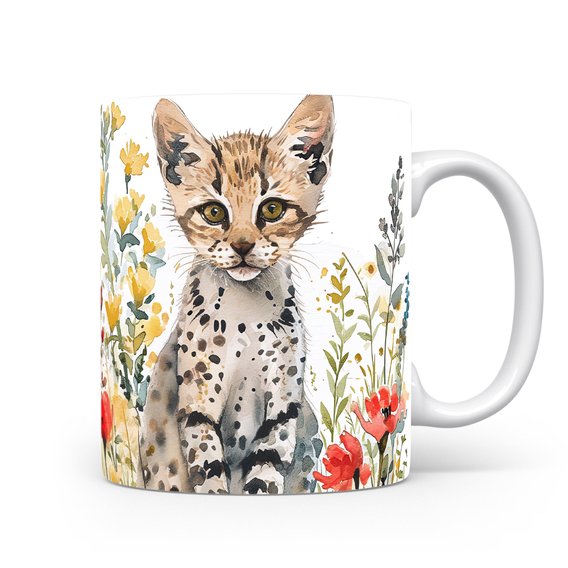 Tento keramický hrnek s motivem malé divoké kočky a barevných květin přináší do vašeho dne radost a svěžest. Je ideální pro milovníky zvířat a skvělým dárkem pro přátele či rodinu. Materiál: keramika. Objem: 330 ml. Vhodné do myčky i mikrovlnky. Užijte si kávu nebo čaj s tímto jedinečným designem, který potěší každého.