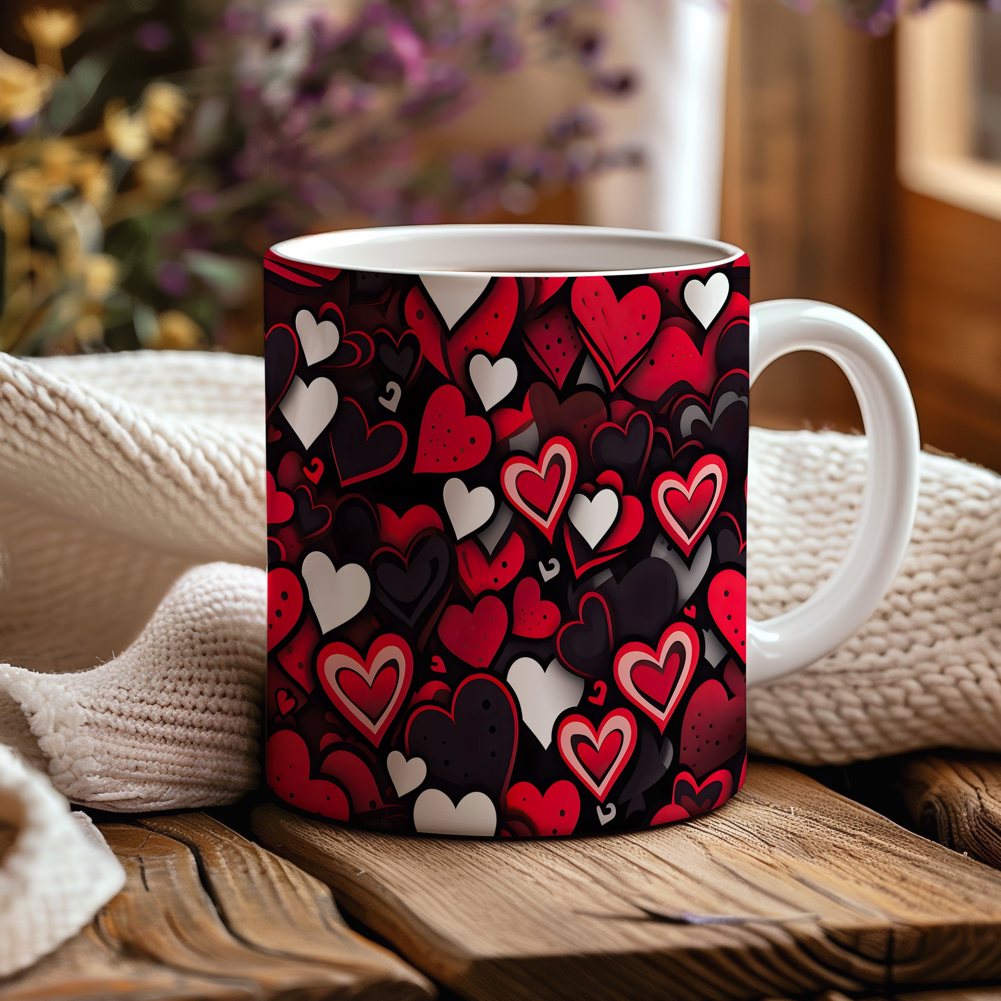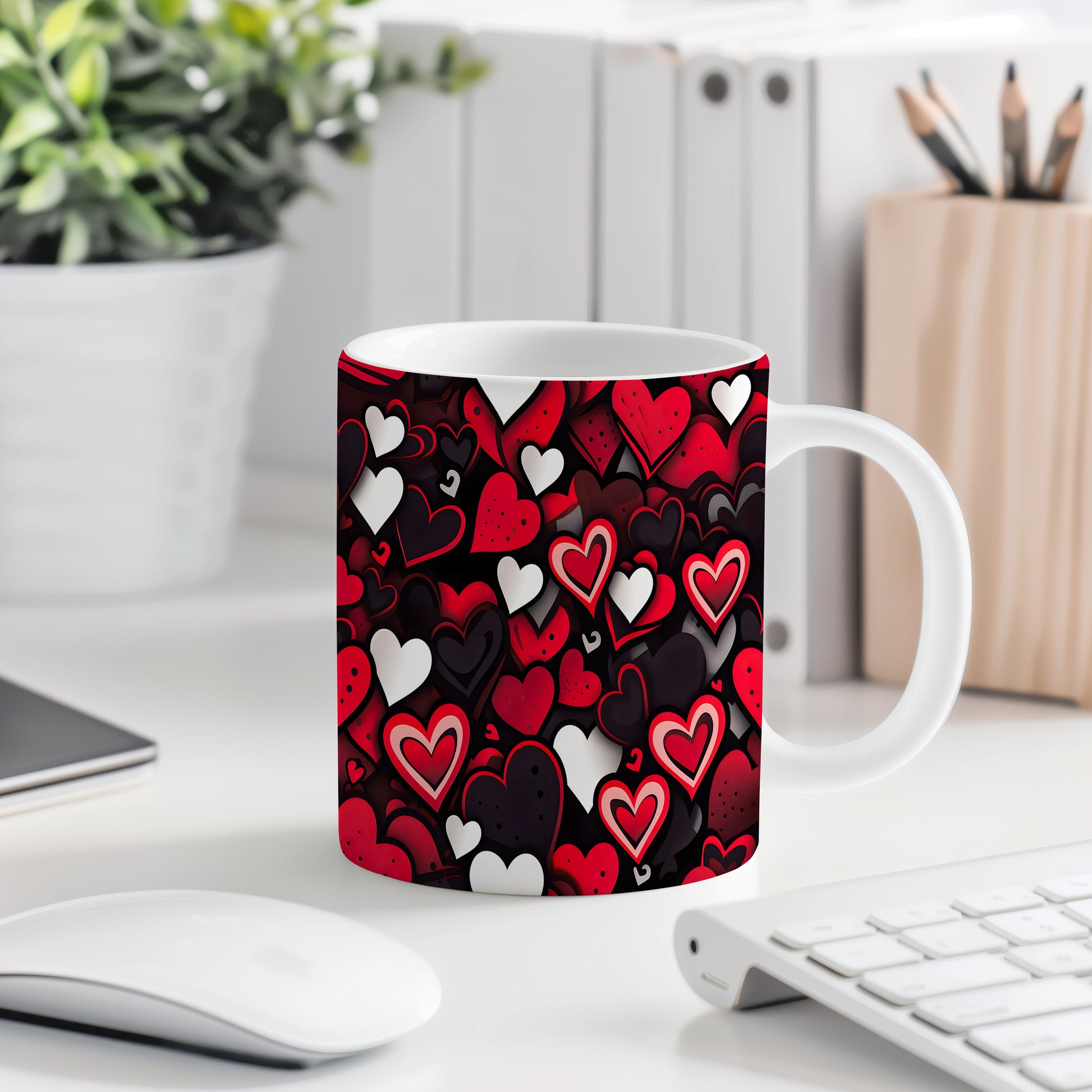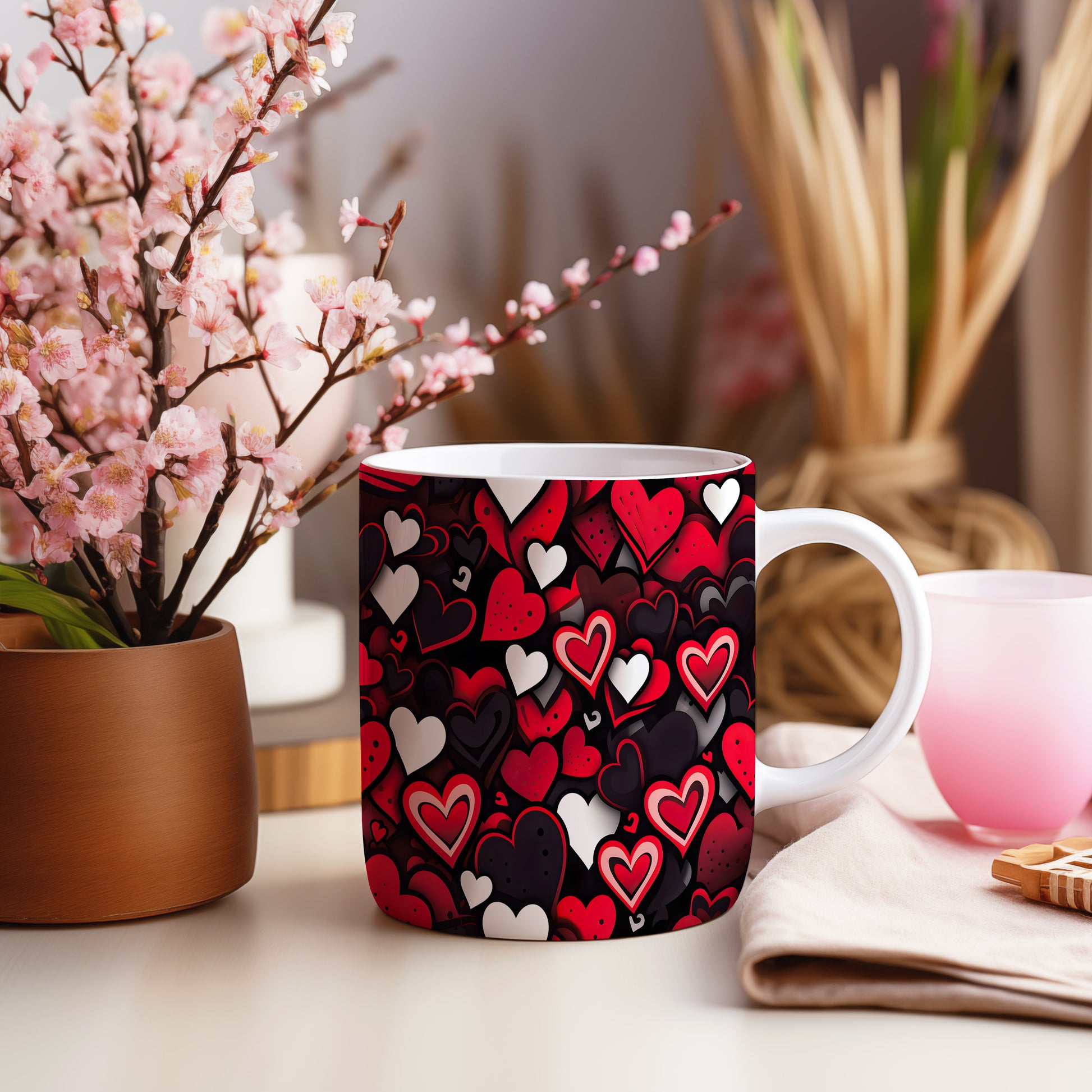 Vyjádřete svou lásku s tímto hrnkem plným srdcí v červené a černé barvě. Ideální pro romantické chvíle i jako dárek pro milovanou osobu. Ukažte své city stylově s naším designovým hrnkem.