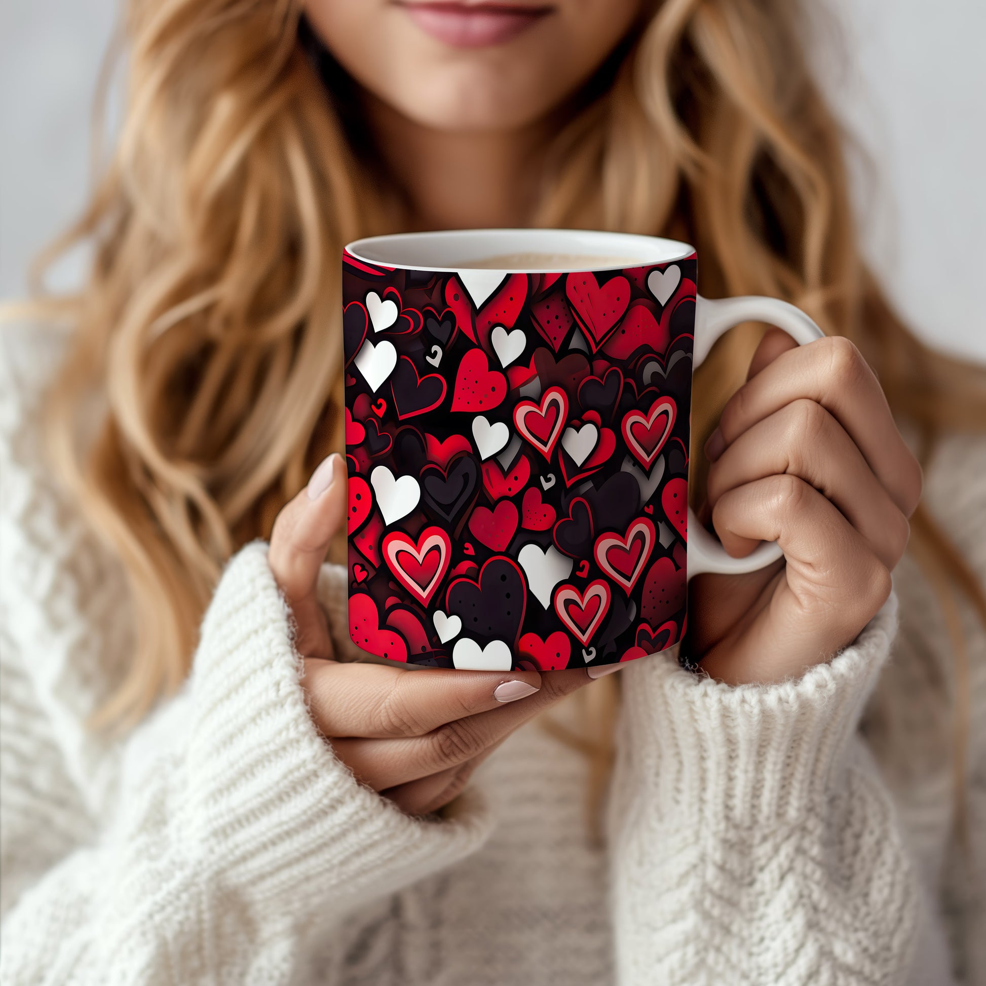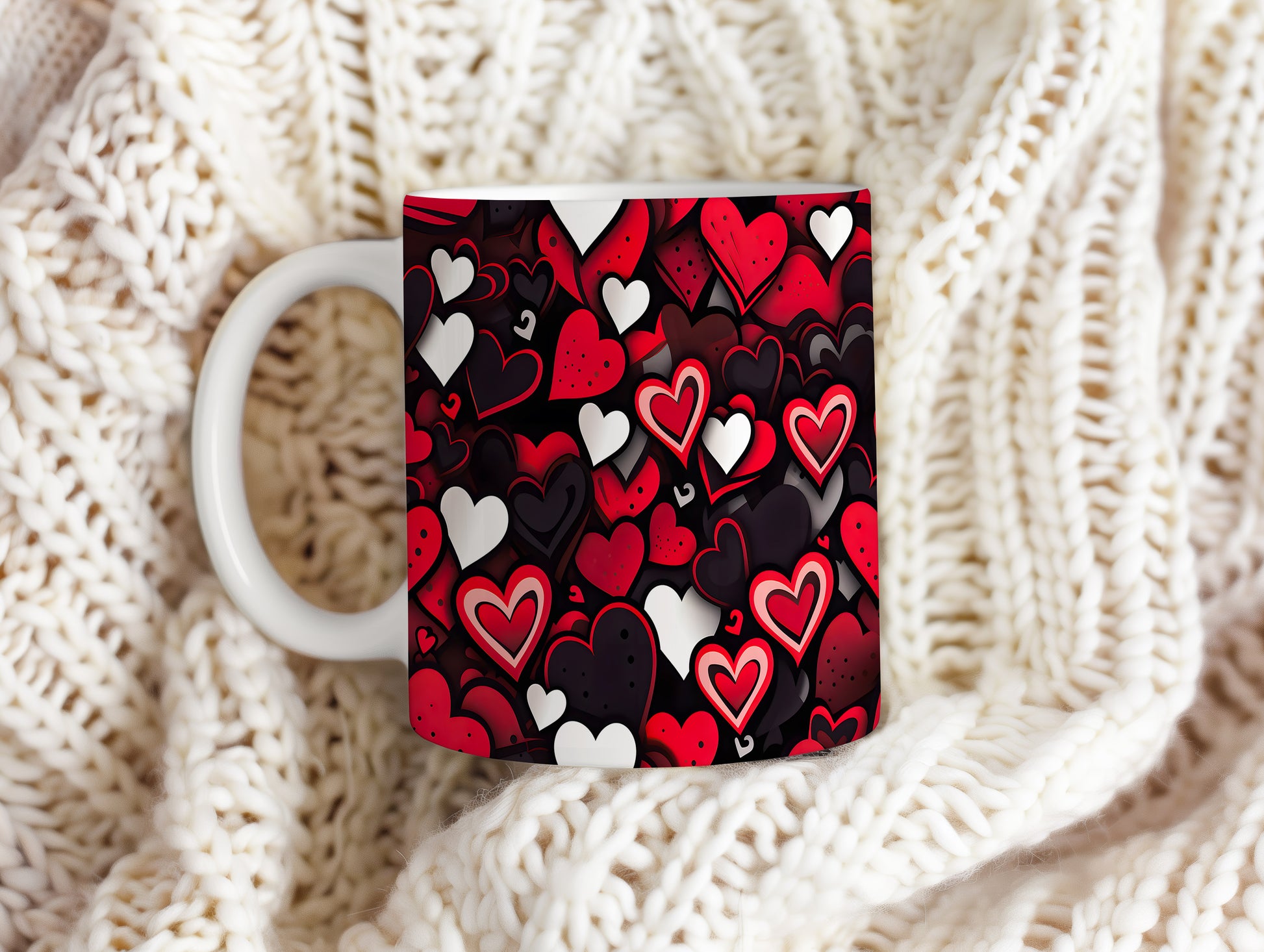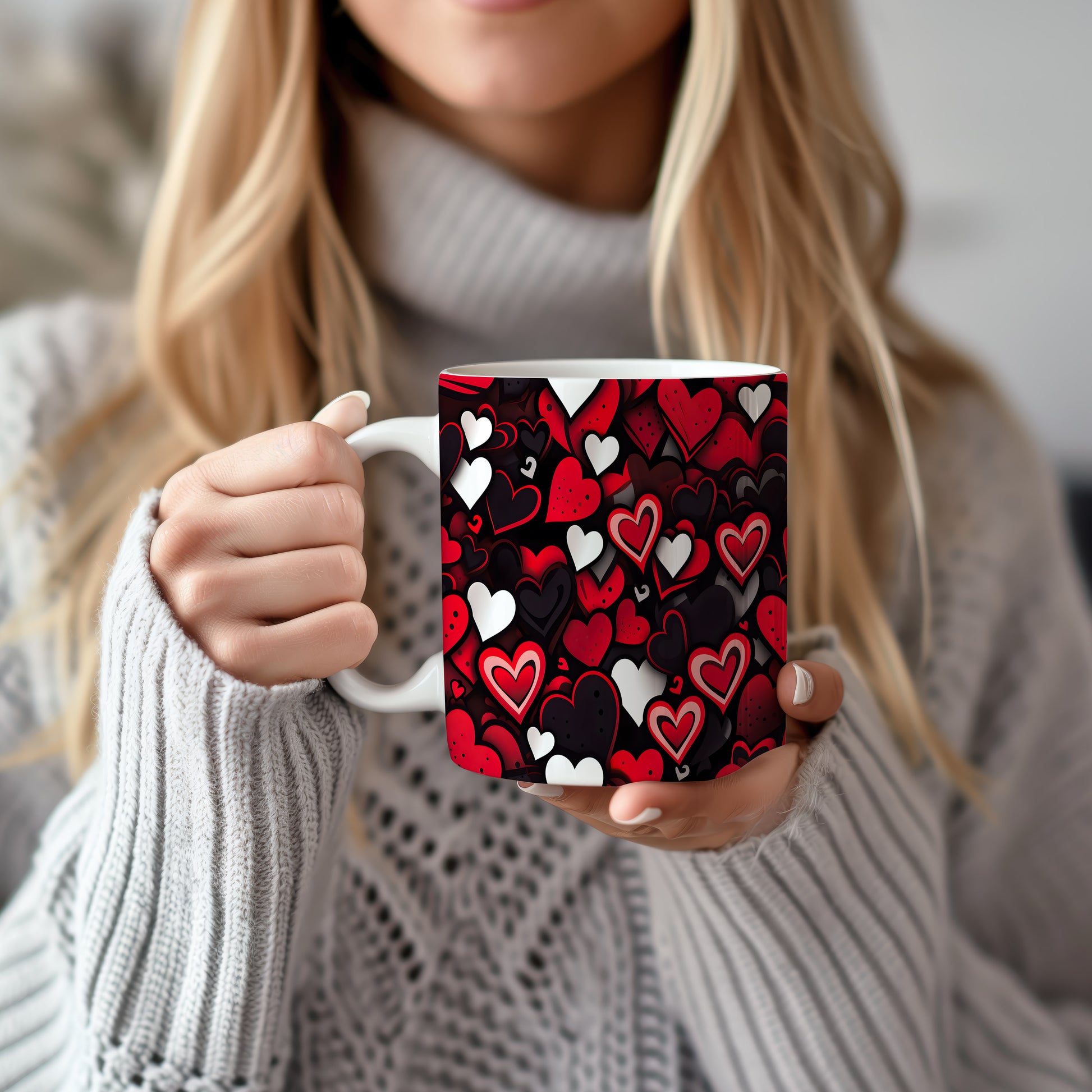 Vyjádřete svou lásku s tímto hrnkem plným srdcí v červené a černé barvě. Ideální pro romantické chvíle i jako dárek pro milovanou osobu. Ukažte své city stylově s naším designovým hrnkem.
