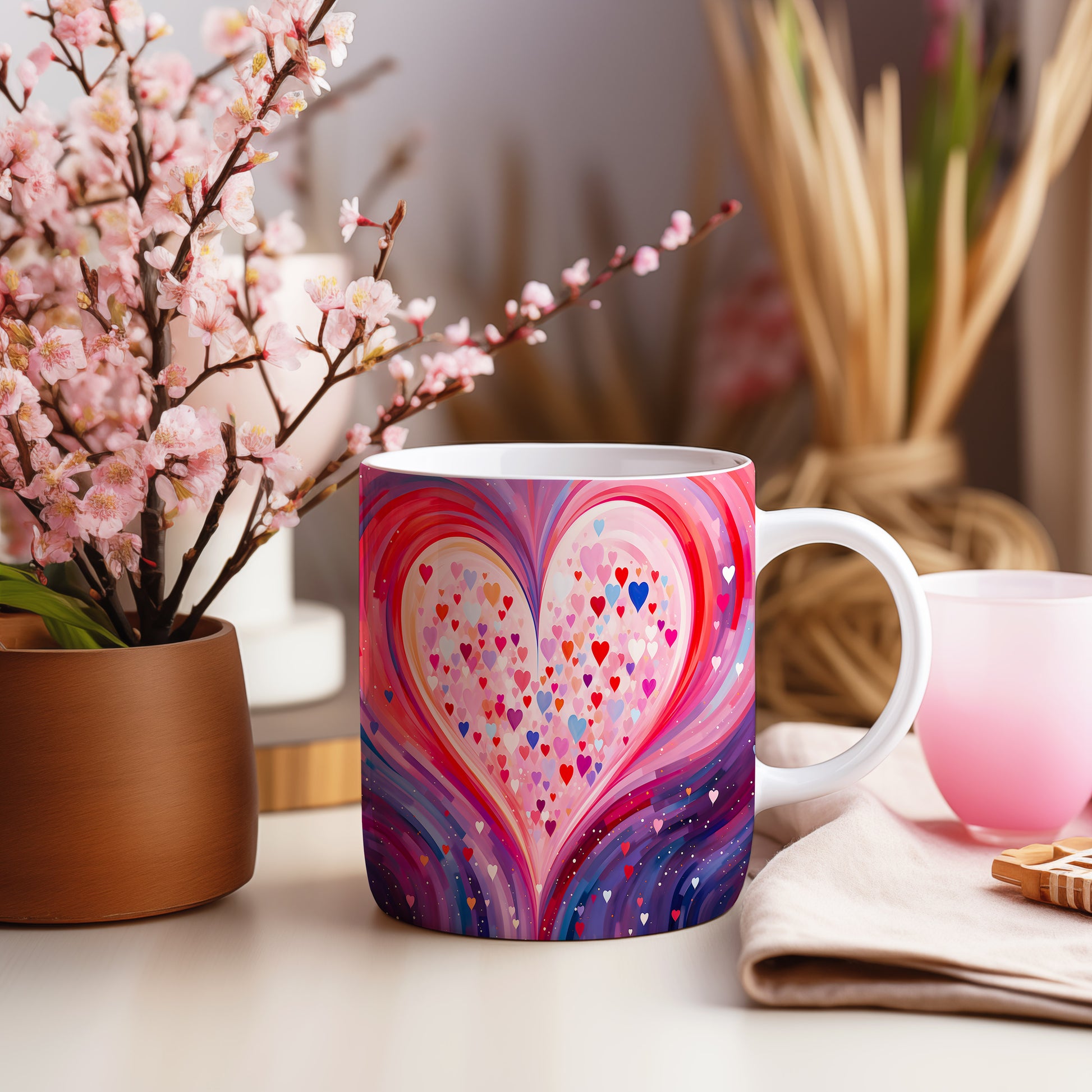 Objevte kouzlo romantiky s naším hrnkem plným srdcí v nádherných pastelových barvách. Tento design přináší do vašeho dne pocit lásky a radosti. Ideální dárek pro milovanou osobu nebo pro vlastní potěšení.