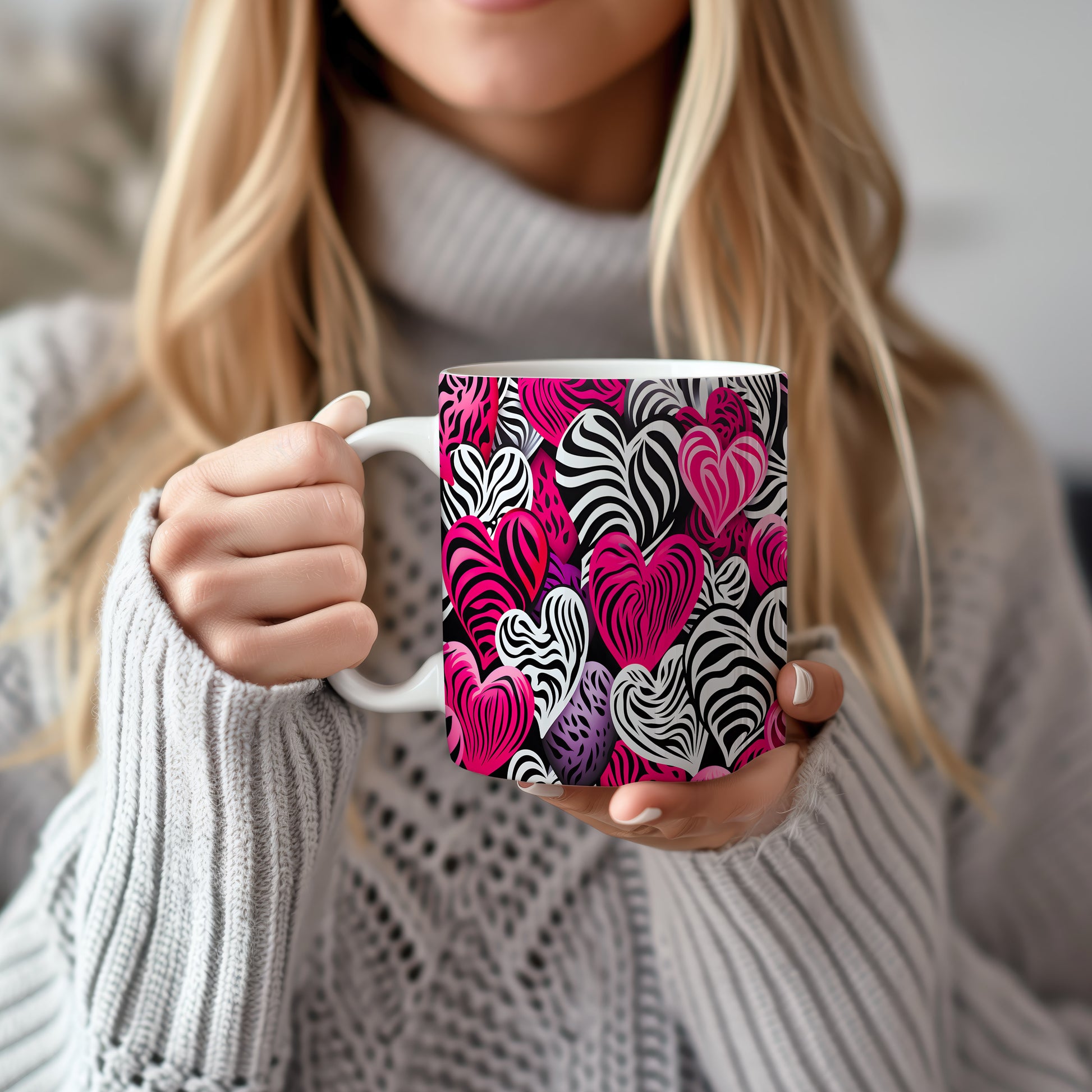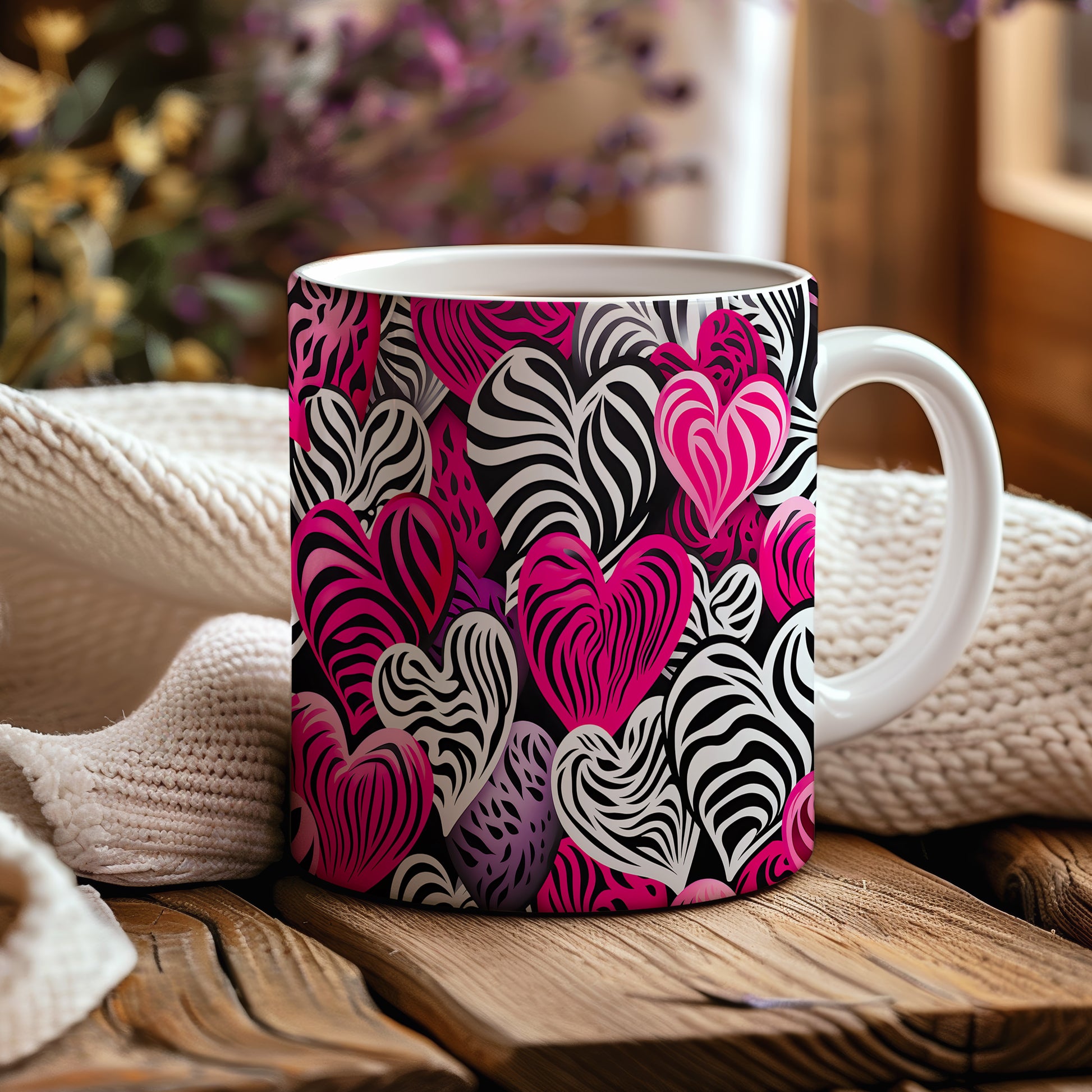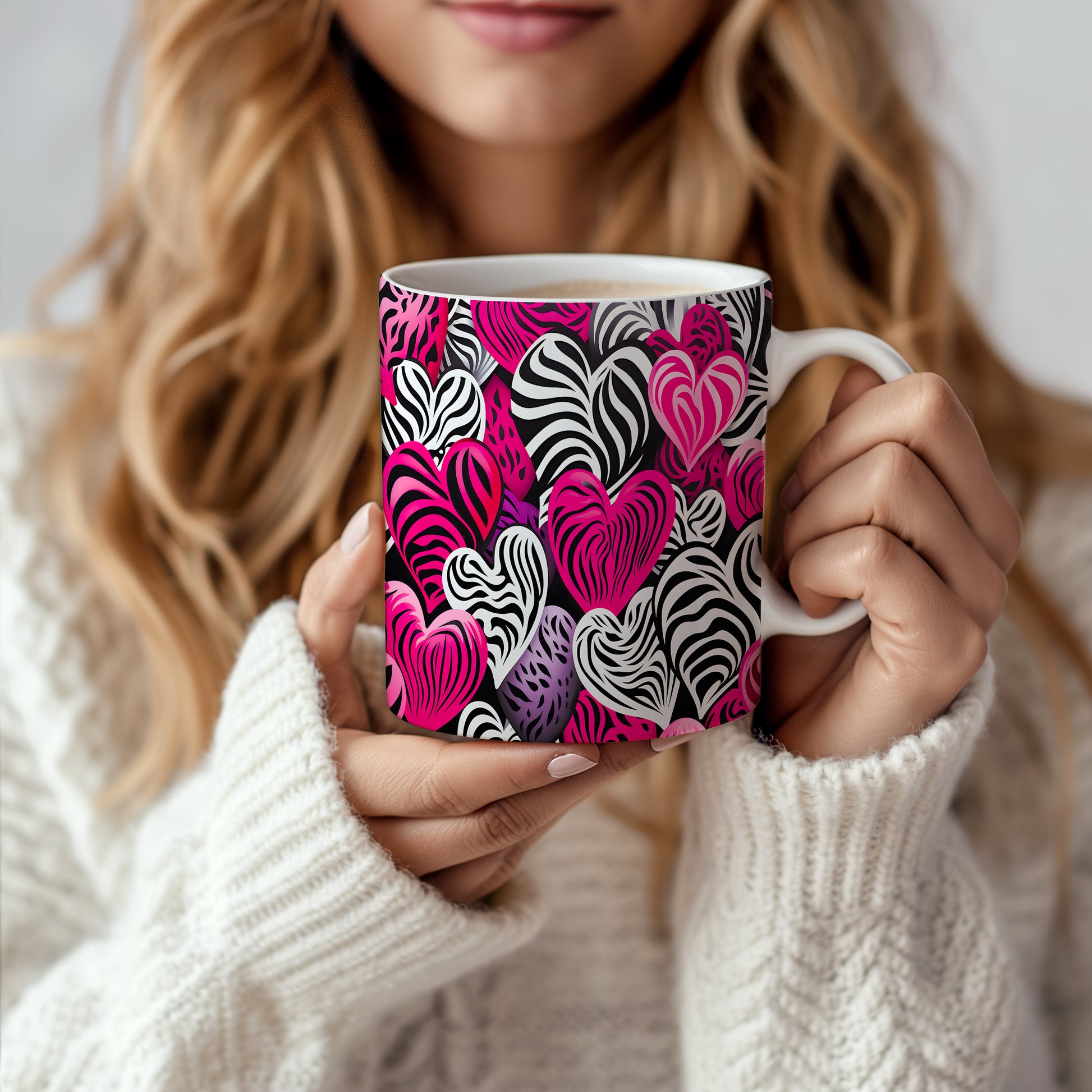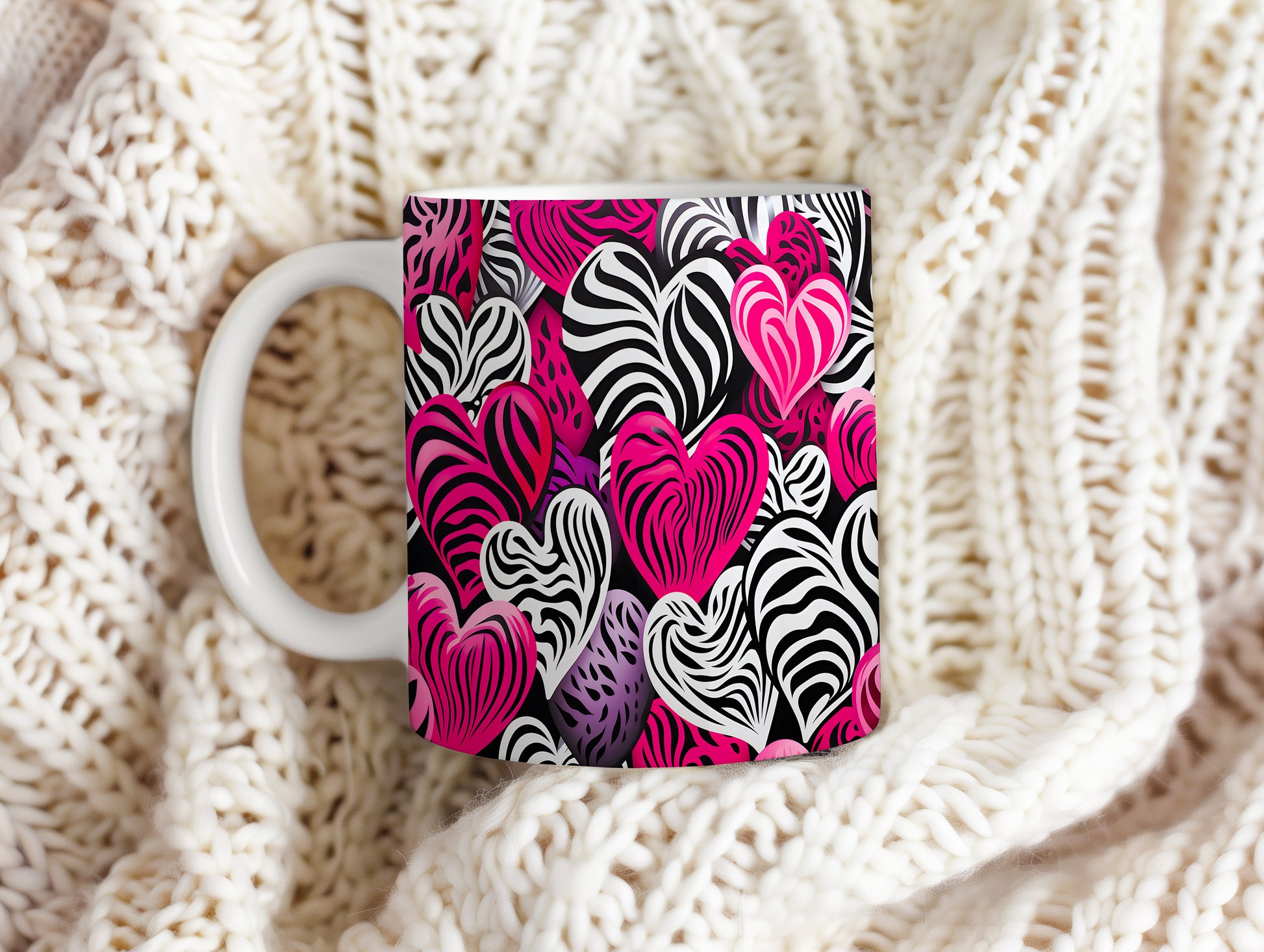 Objevte kouzlo lásky s naším hrnkem plným srdcí v zebrovém designu. Tento hrnek přináší jedinečnou kombinaci černobílého vzoru s výraznými růžovými tóny, která zaujme každého. Ideální pro romantické chvíle nebo jako dárek pro milovanou osobu.