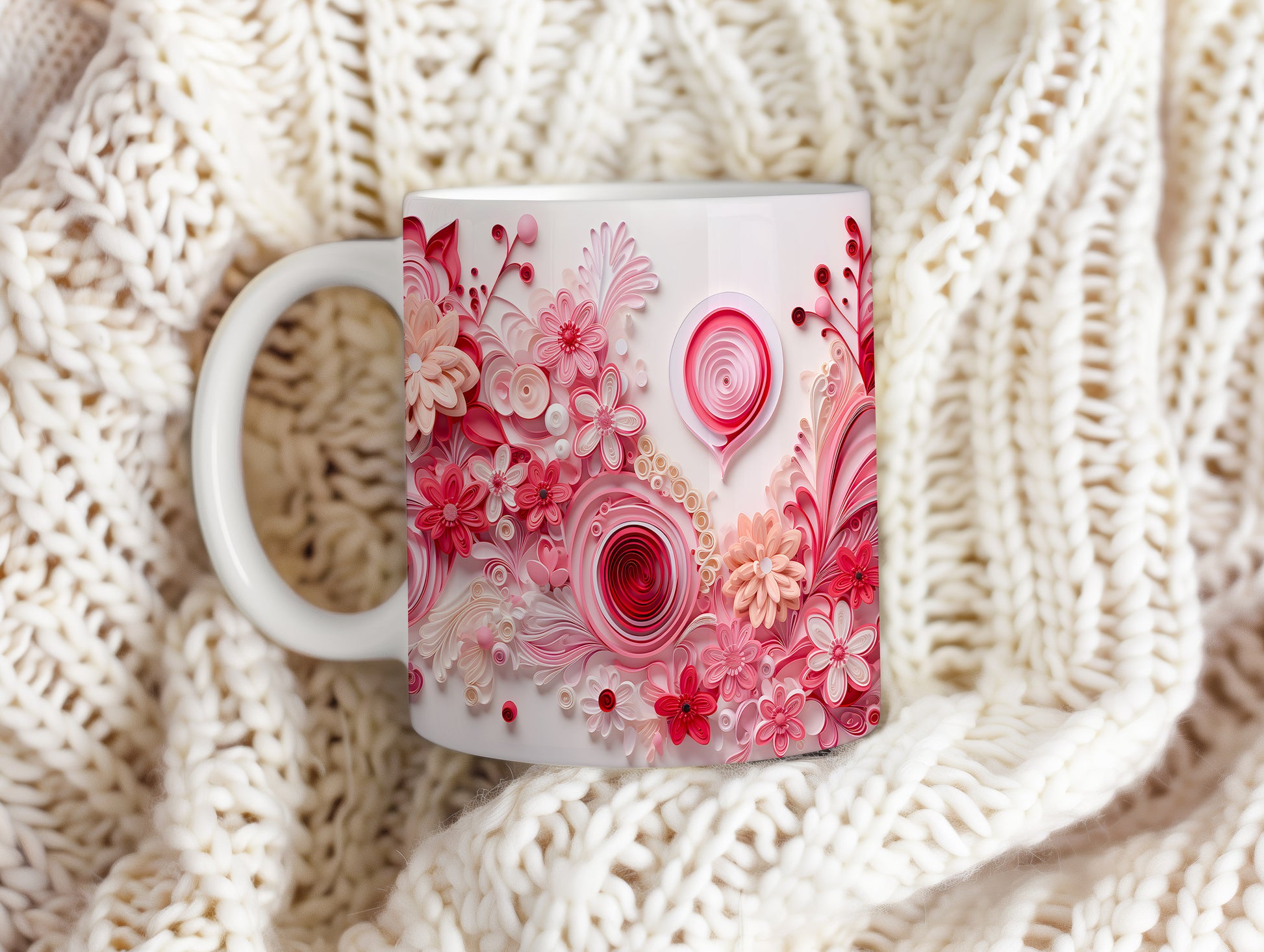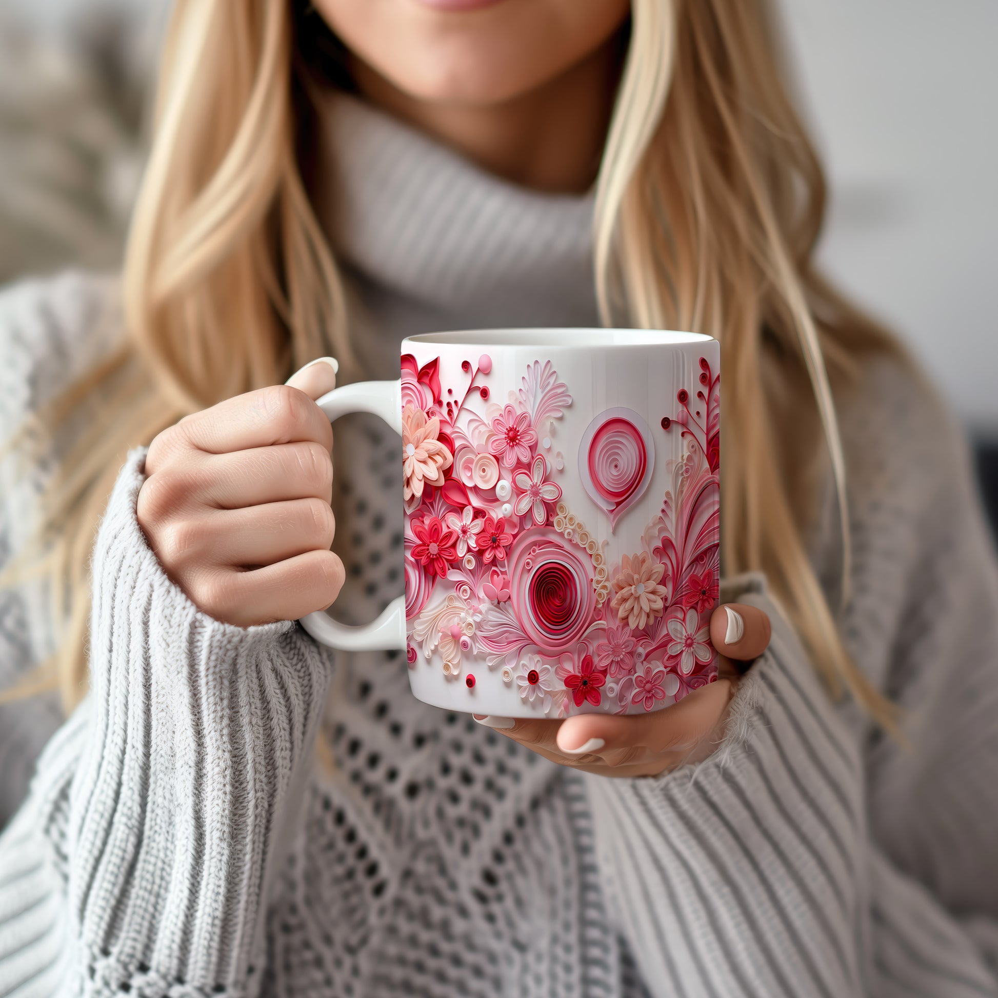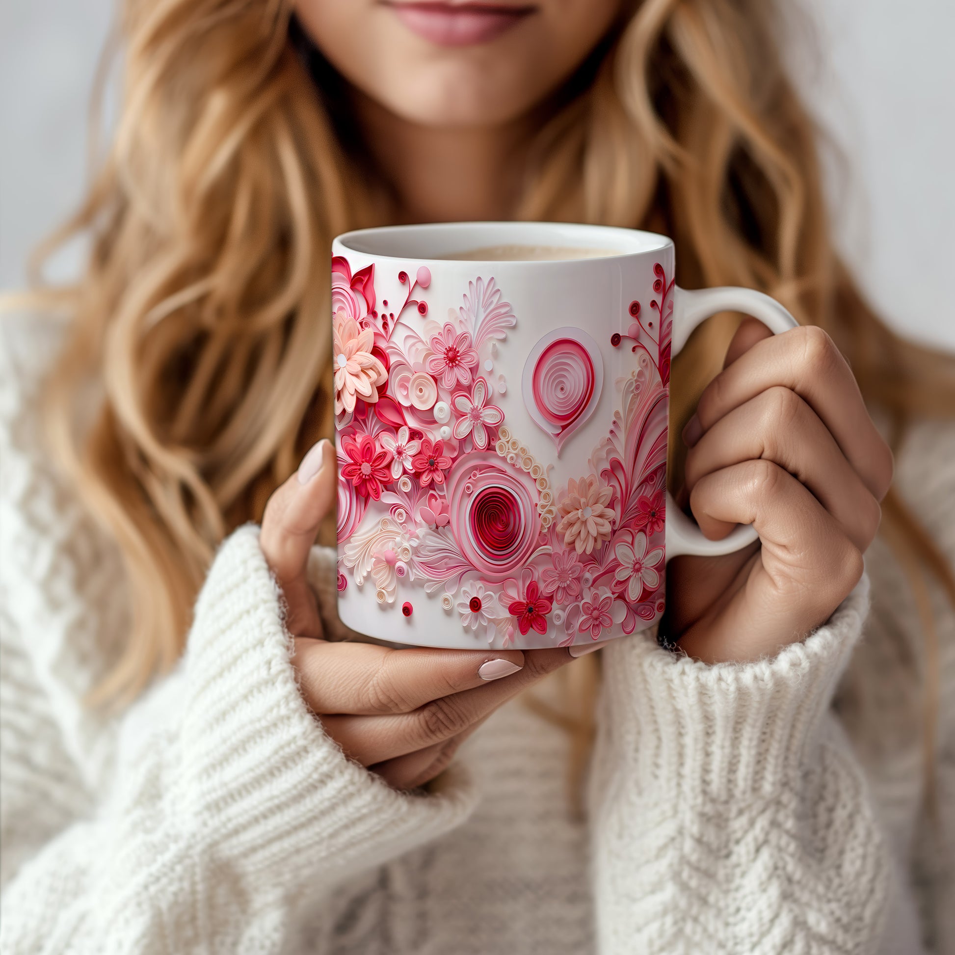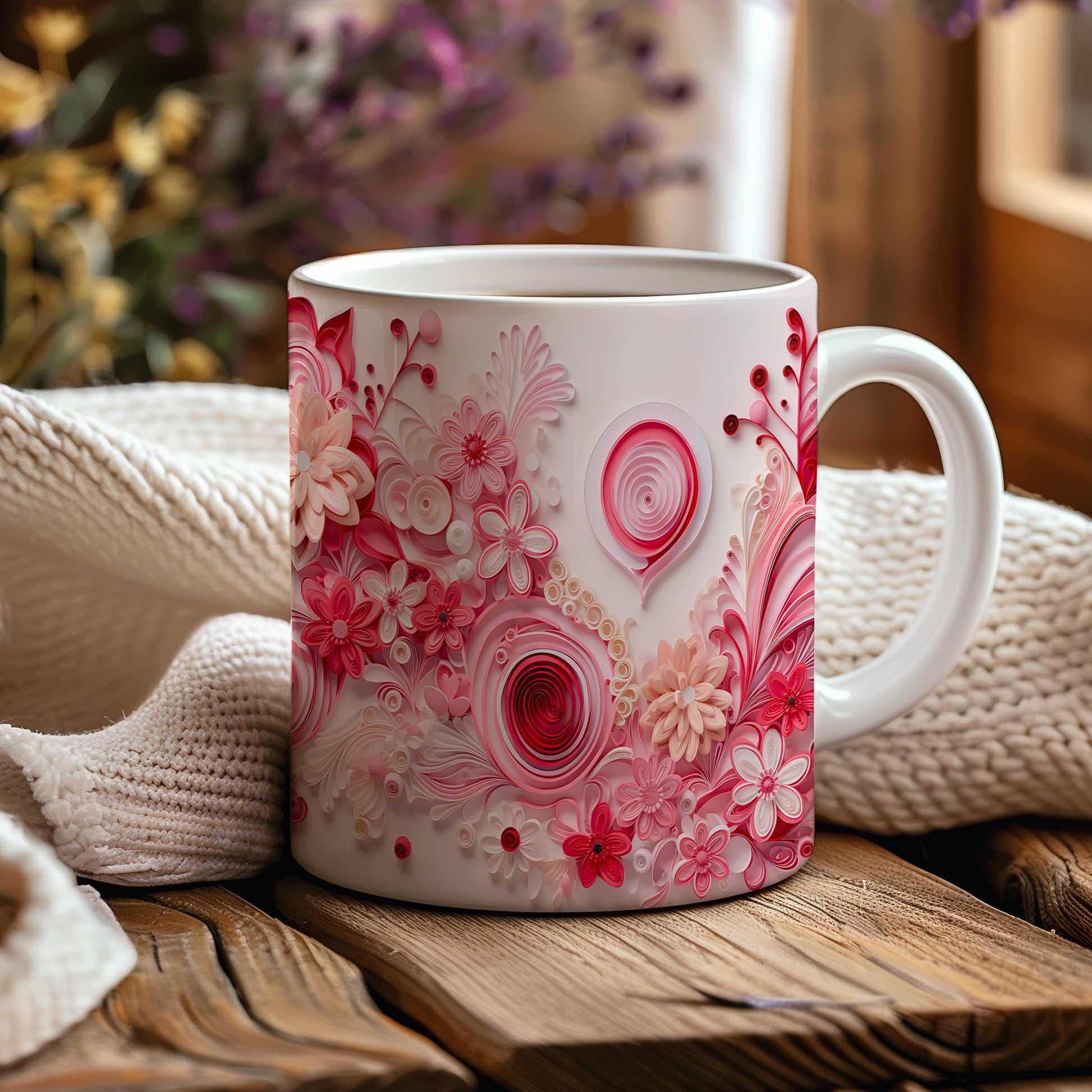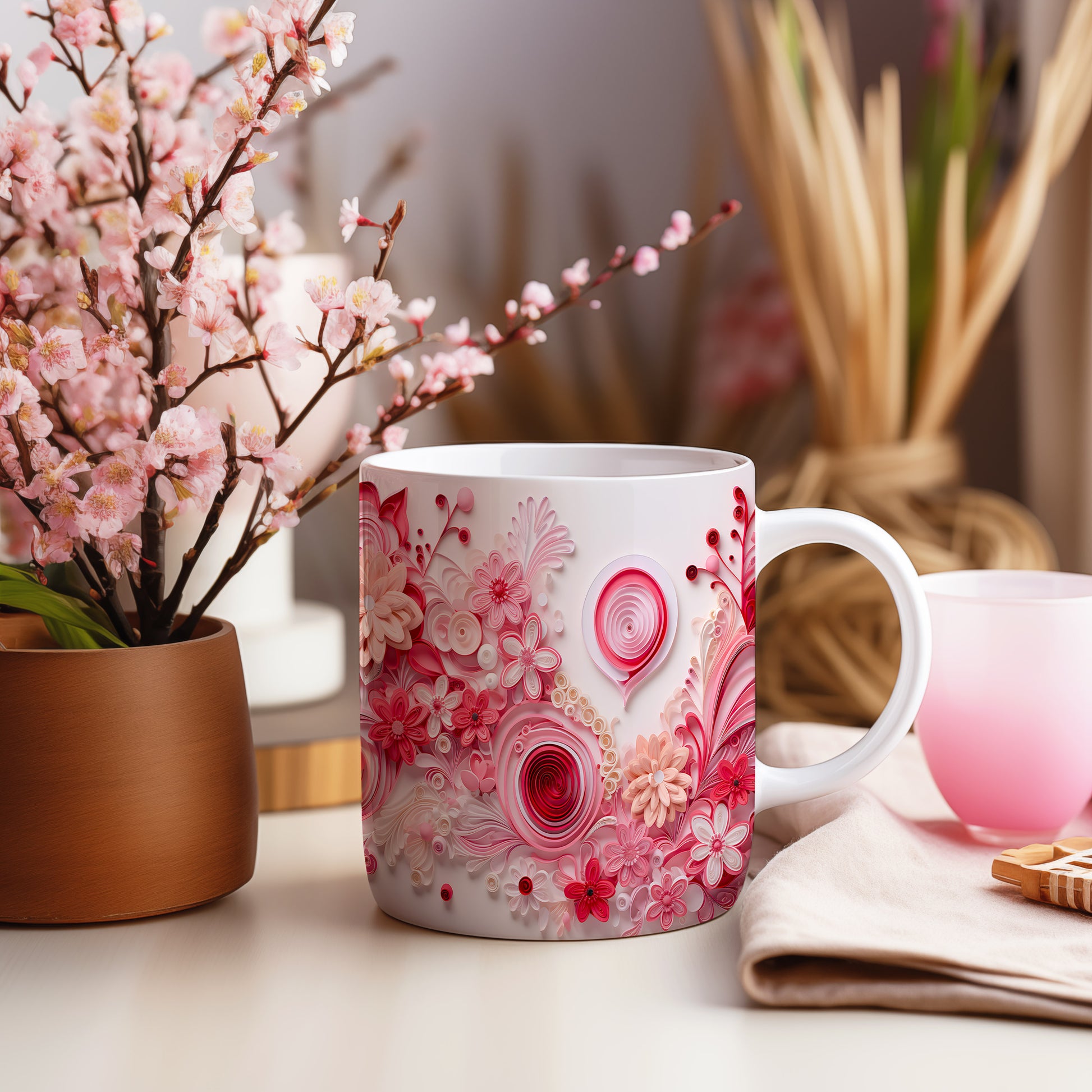 Hrnek s květinovým motivem v růžových odstínech