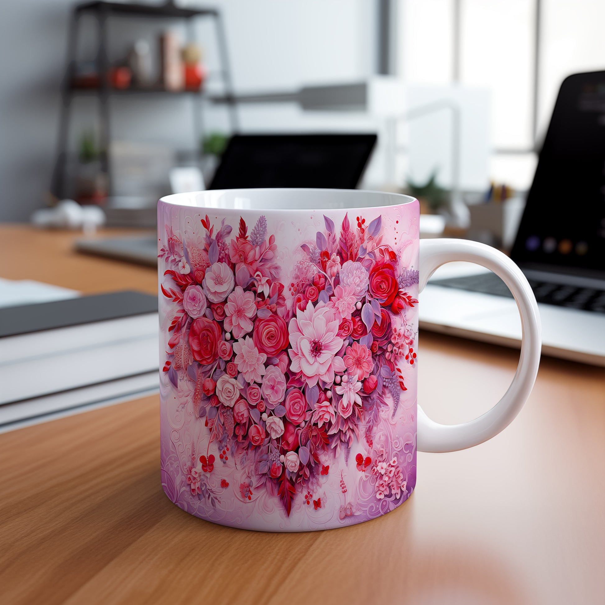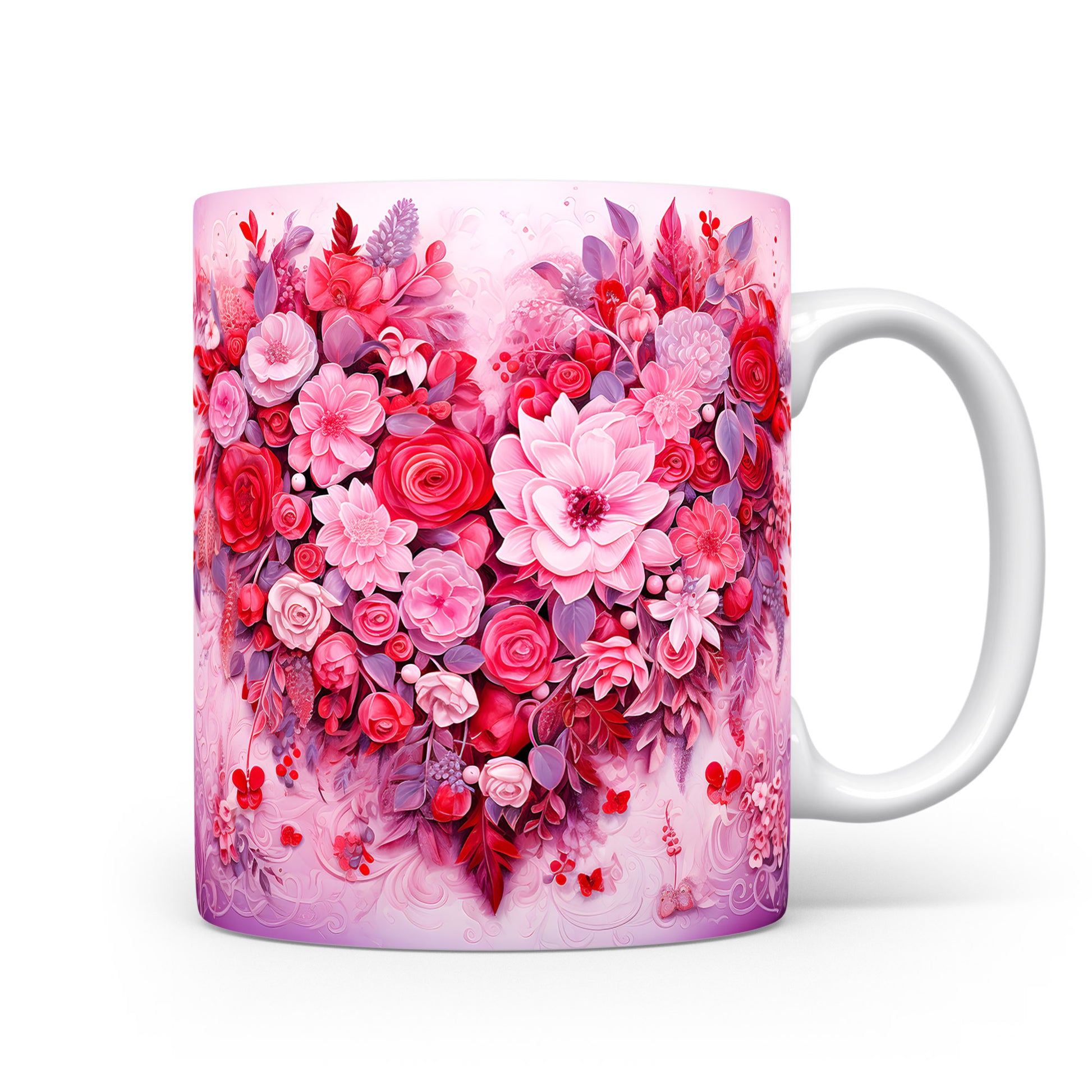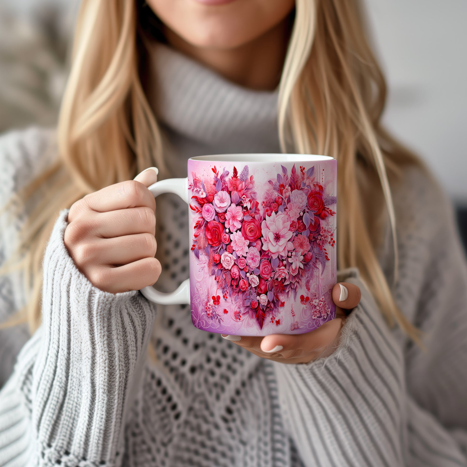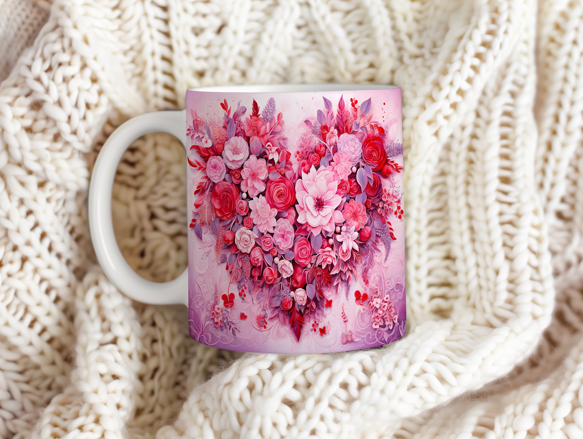 Objevte kouzlo romantiky s naším hrnkem, který zdobí srdce tvořené květinami v jemných růžových odstínech. Ideální pro zamilované chvíle a každodenní radost.