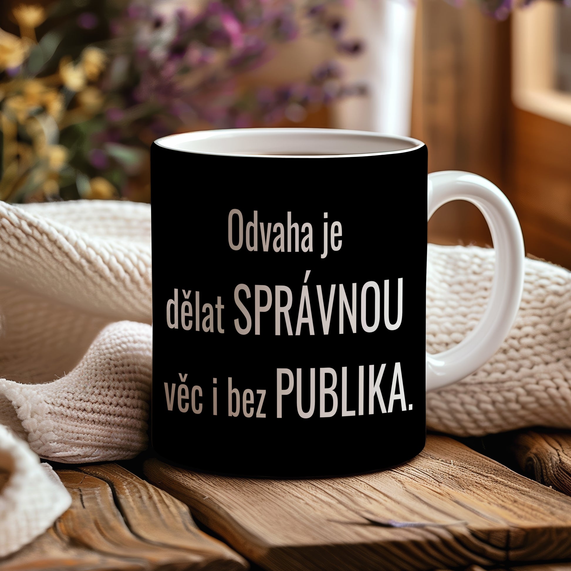 Tento keramický hrnek o objemu 330 ml s odolným potiskem je ideální pro každodenní povzbuzení. Připomíná, že odvaha je klíčem k úspěchu.