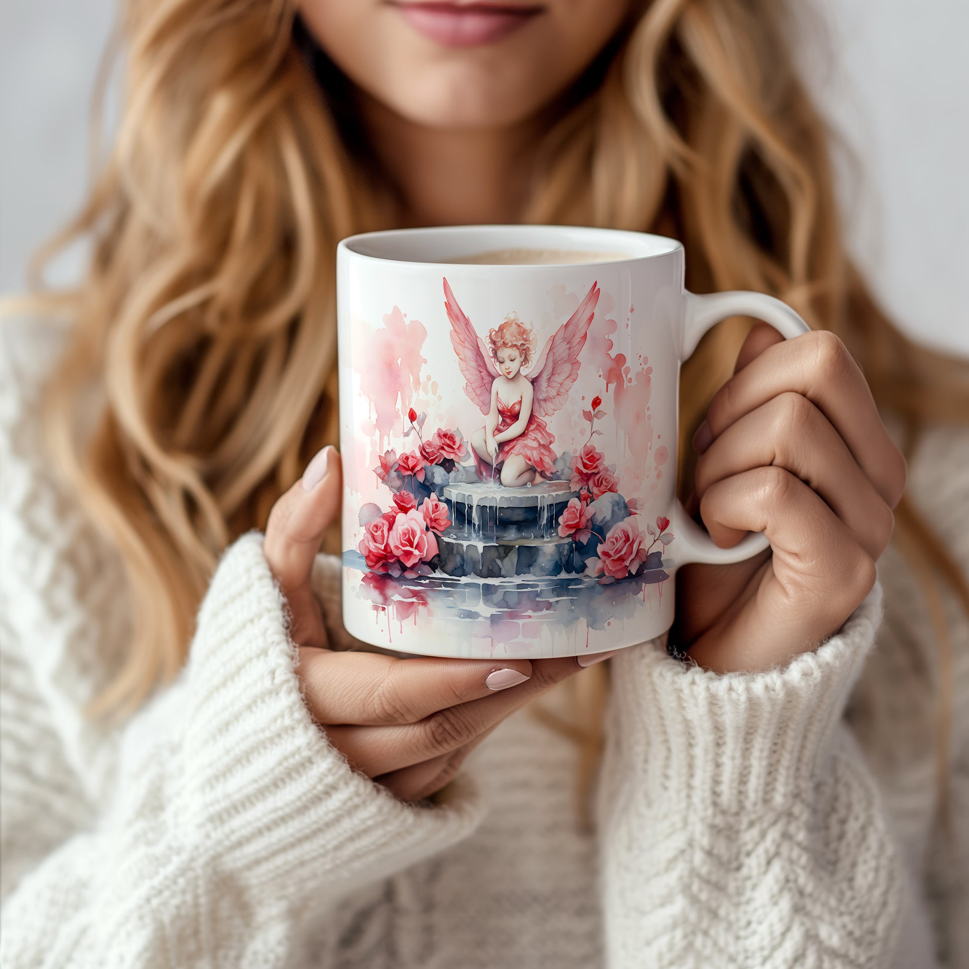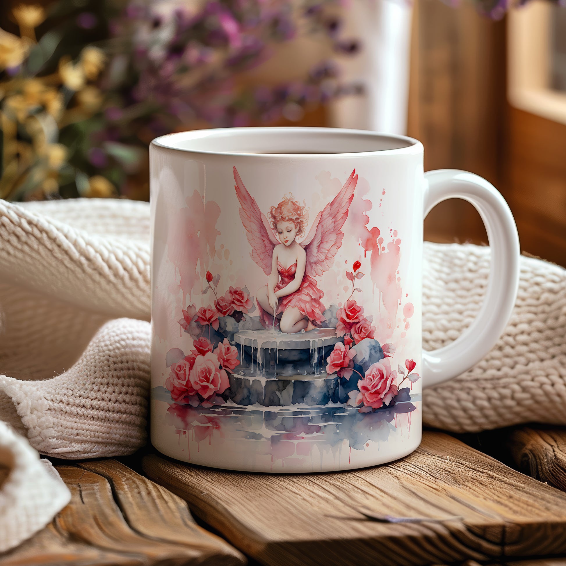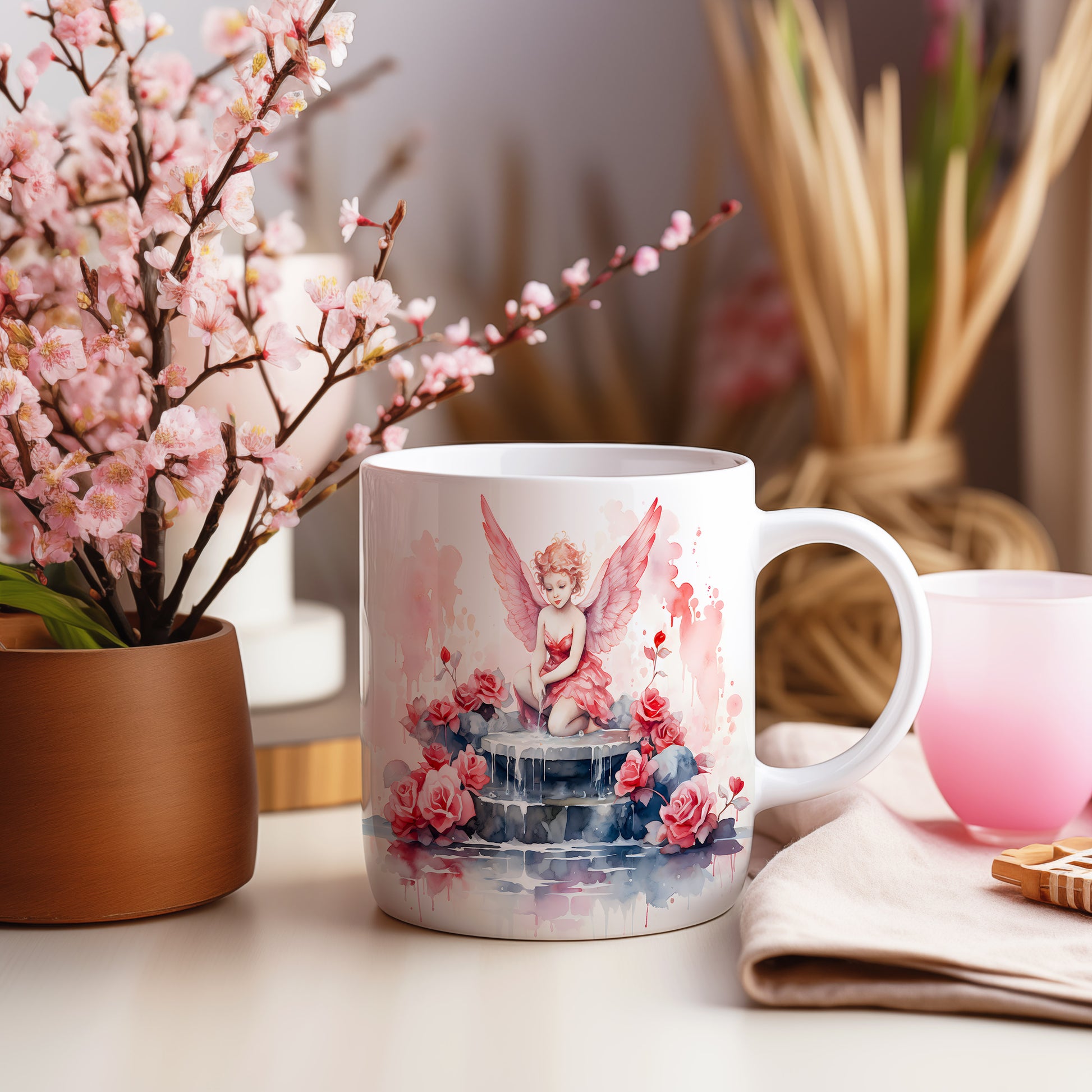 Hrnek s andílkem a růžemi v romantických barvách