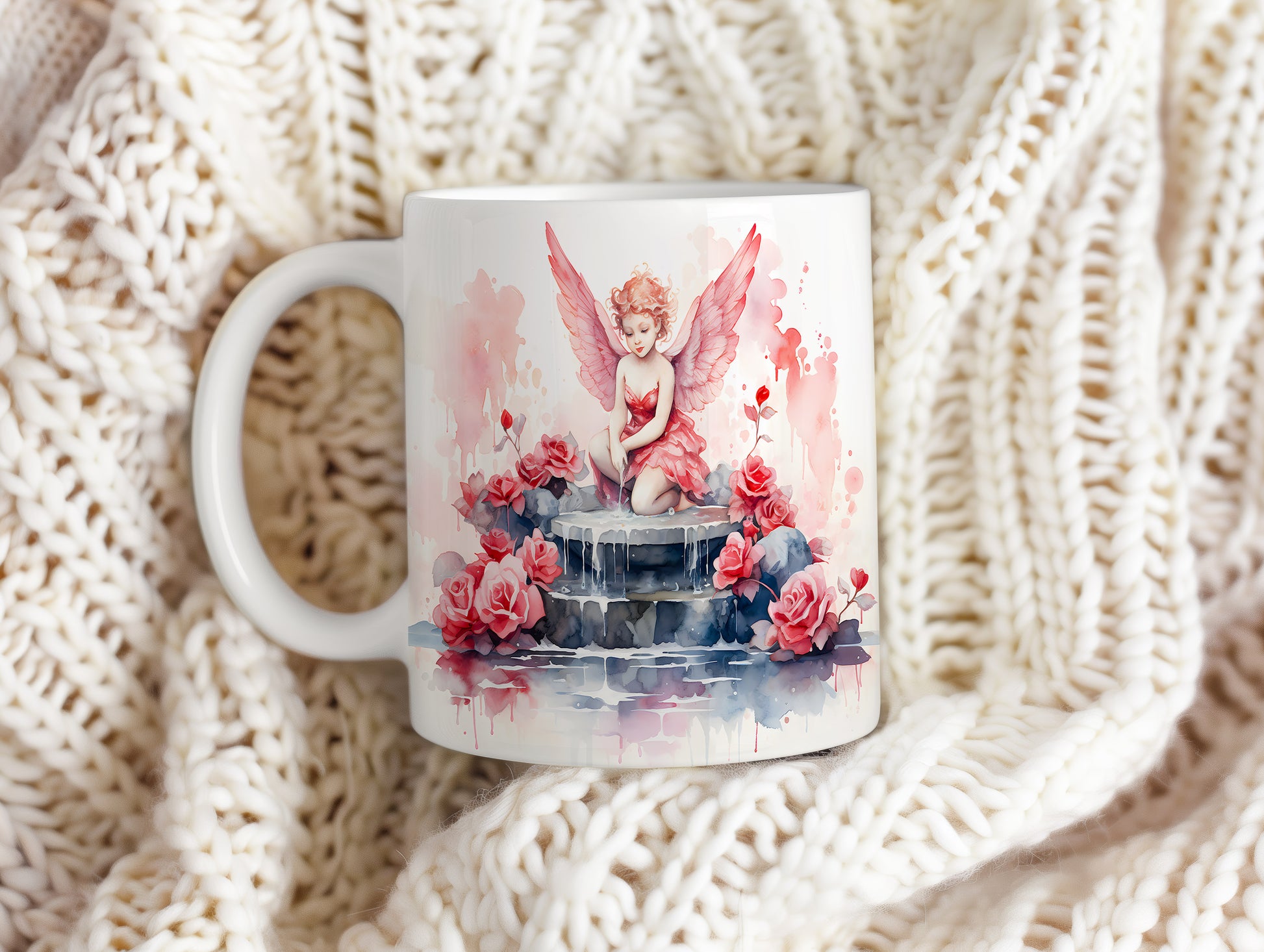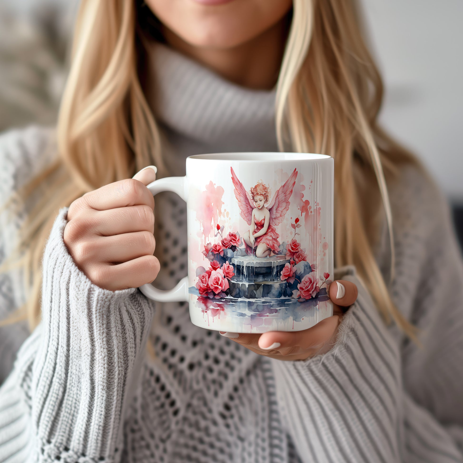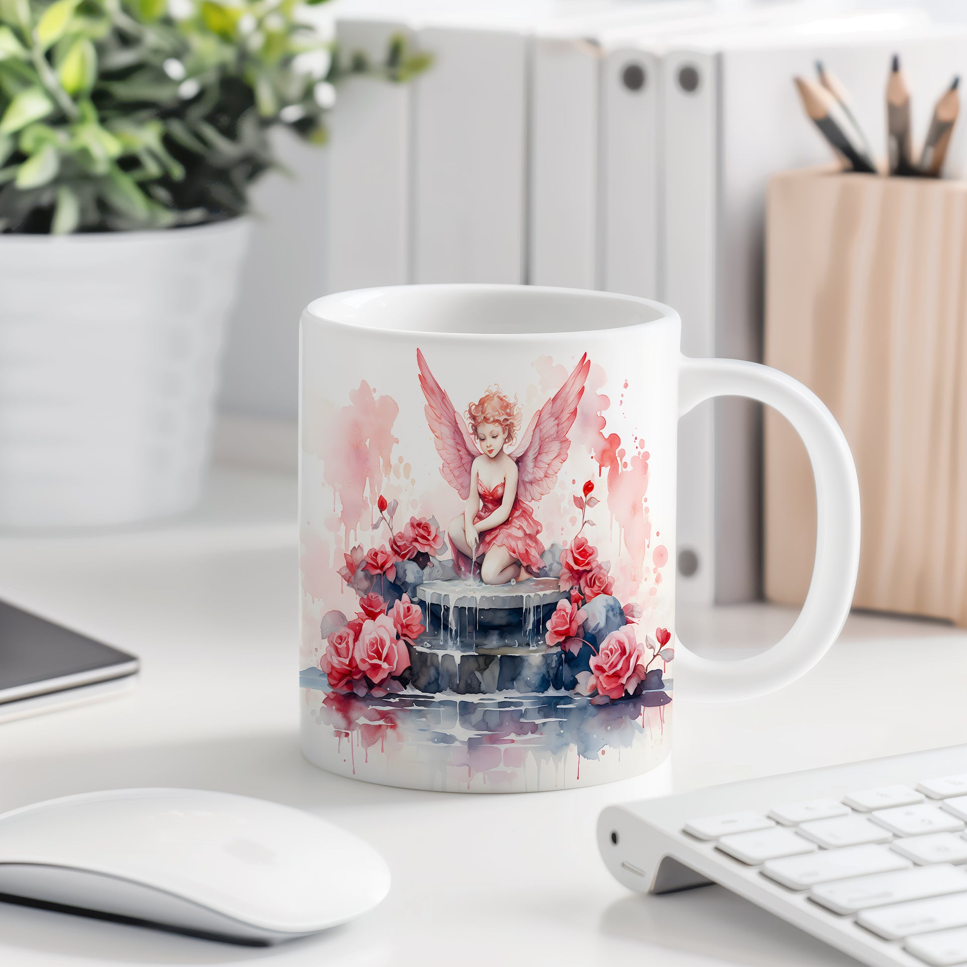 Hrnek s andílkem a růžemi v romantických barvách