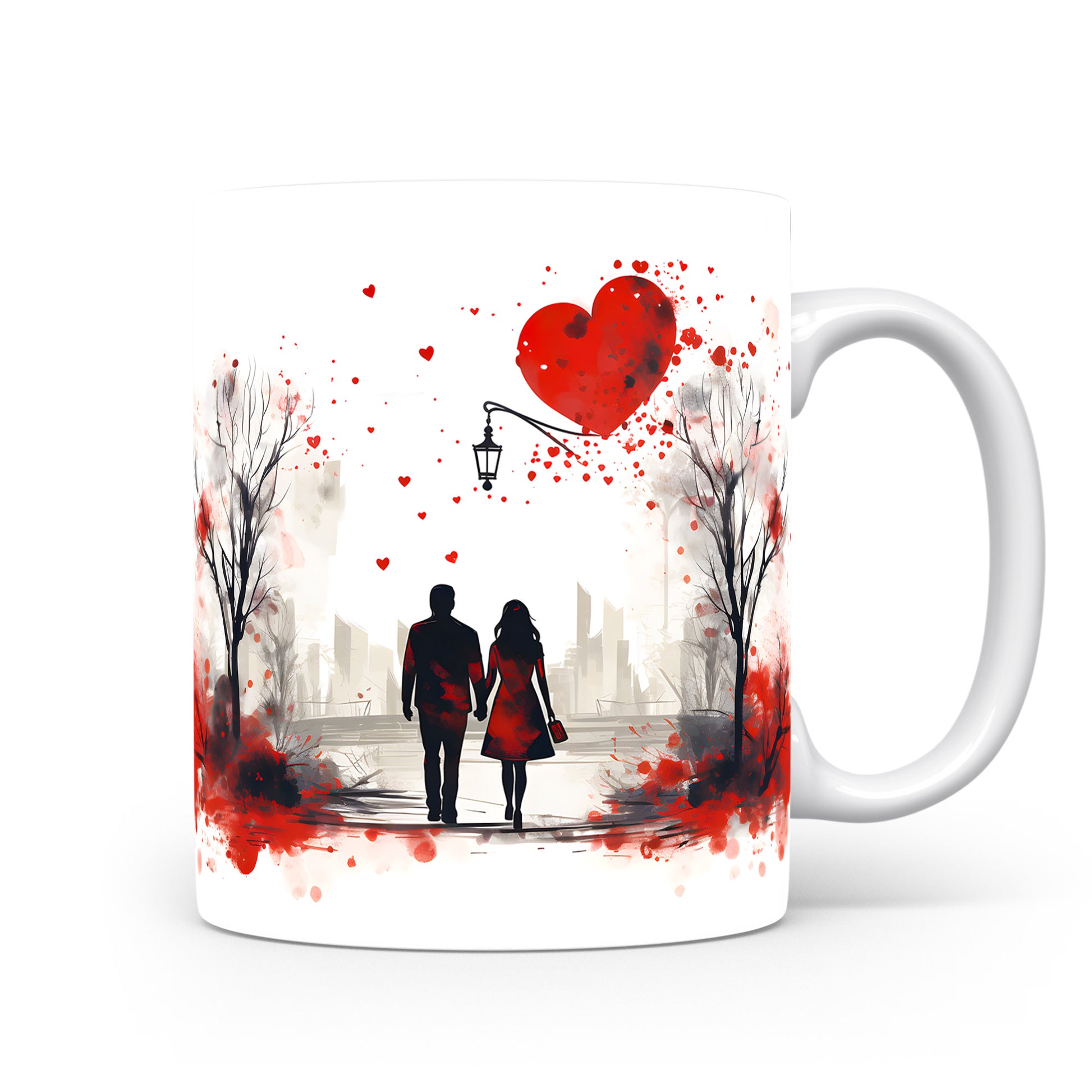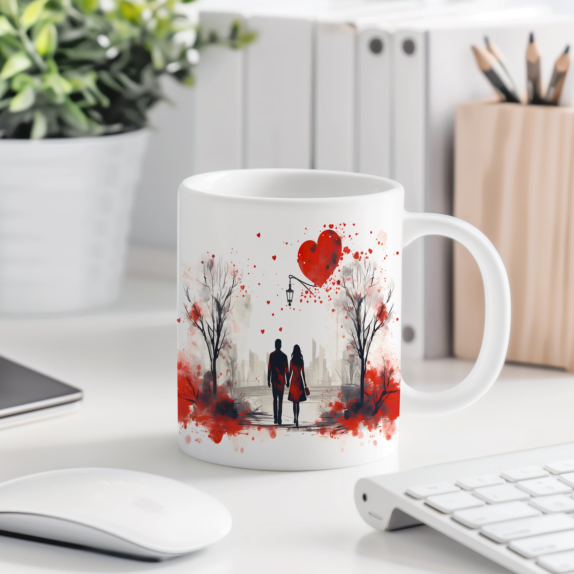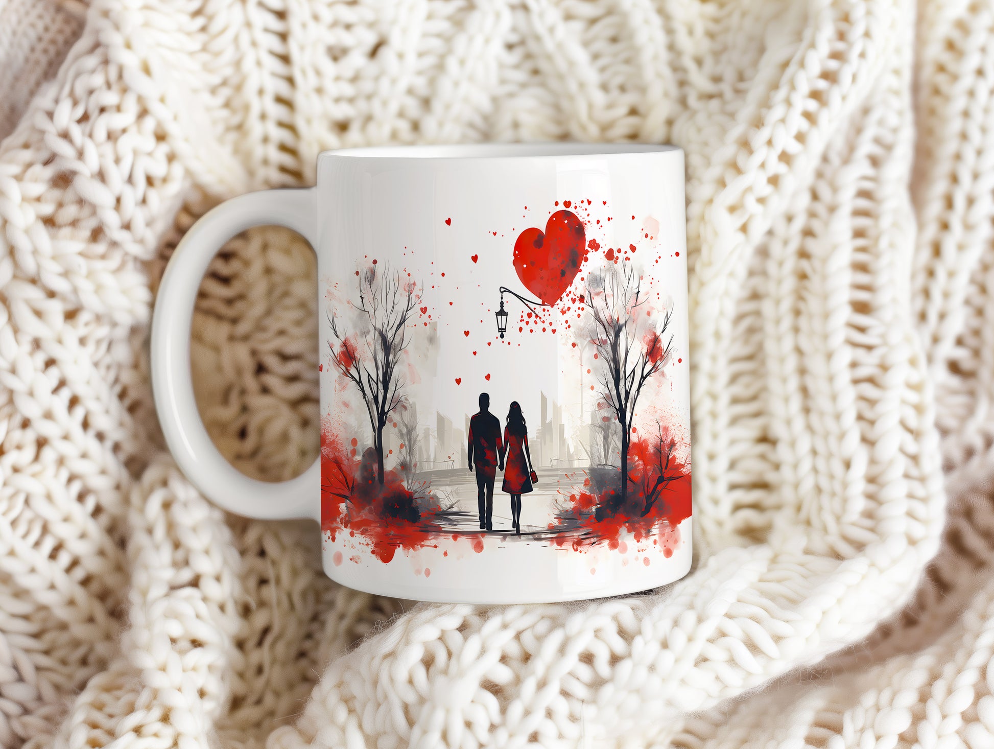 Objevte kouzlo romantiky s naším hrnkem, který zobrazuje zamilovanou dvojici pod červeným srdcem. Ideální pro chvíle pohody a lásky.
