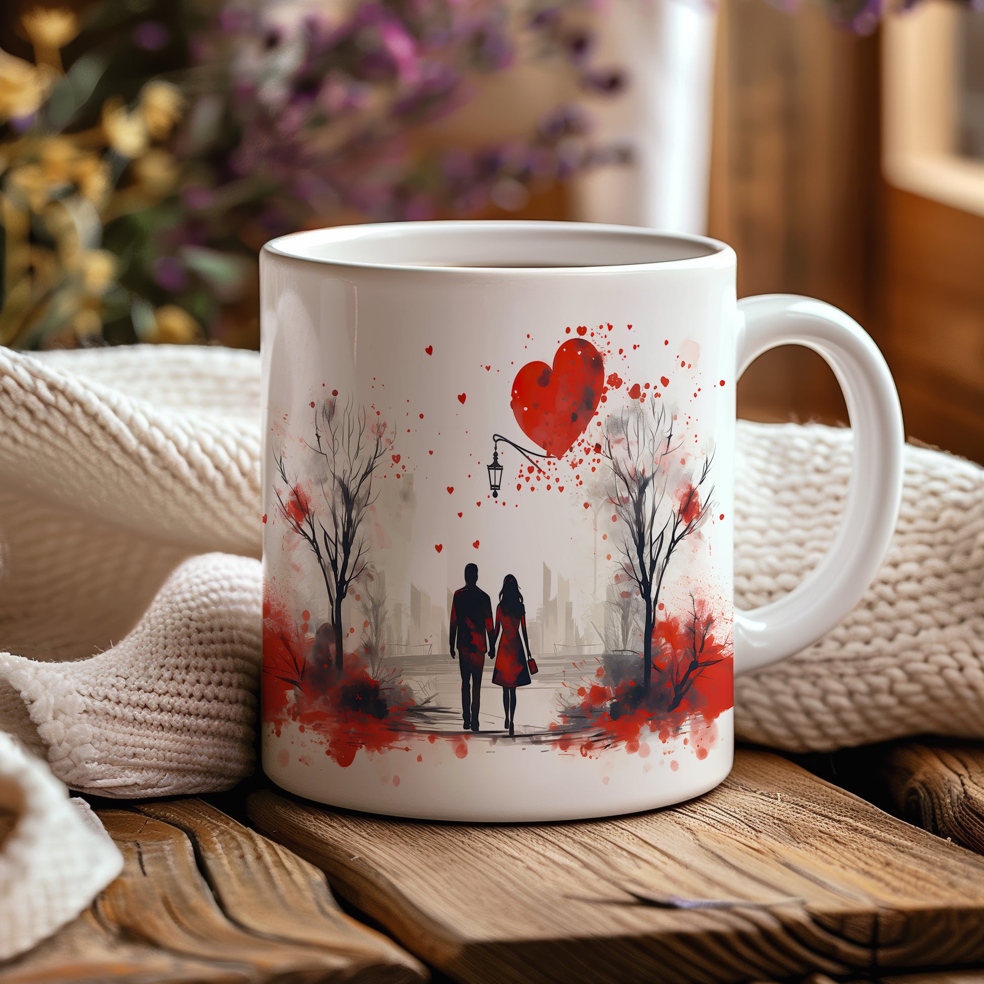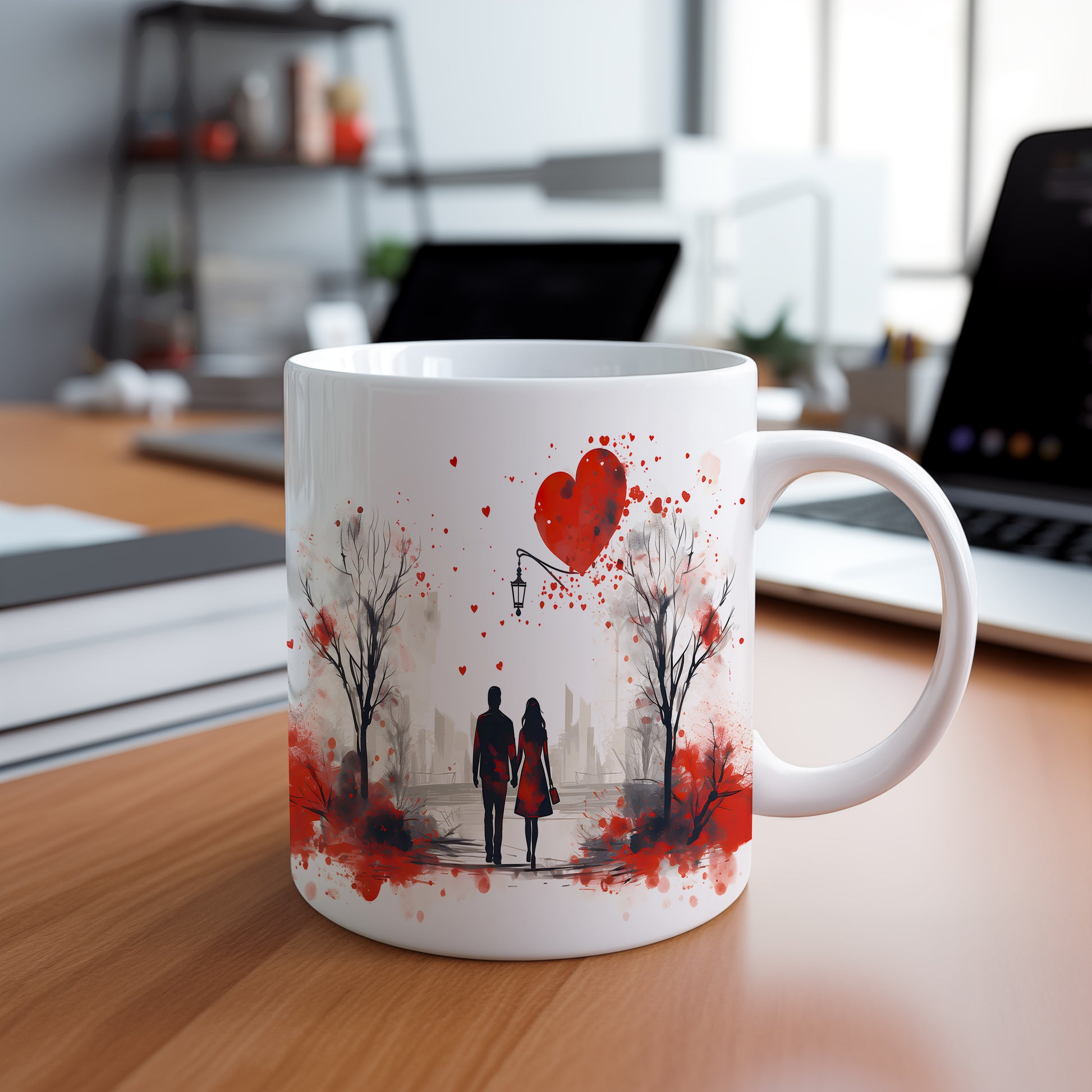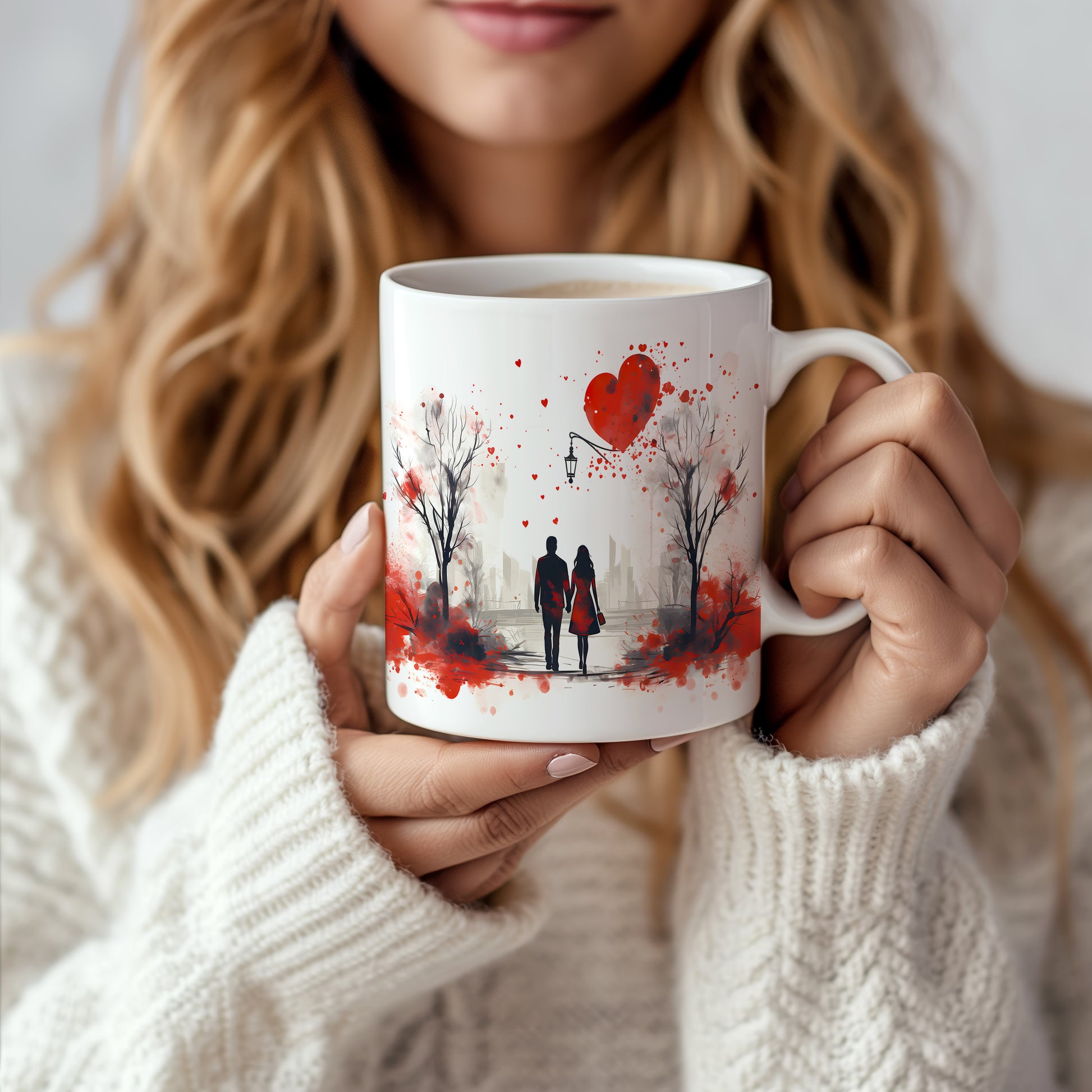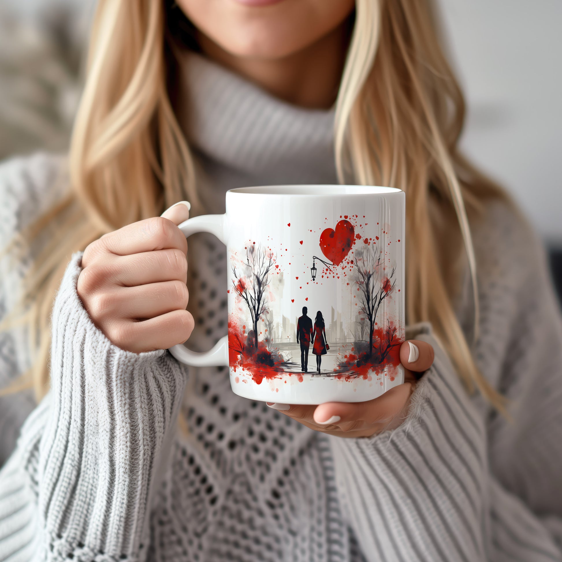 Objevte kouzlo romantiky s naším hrnkem, který zobrazuje zamilovanou dvojici pod červeným srdcem. Ideální pro chvíle pohody a lásky.
