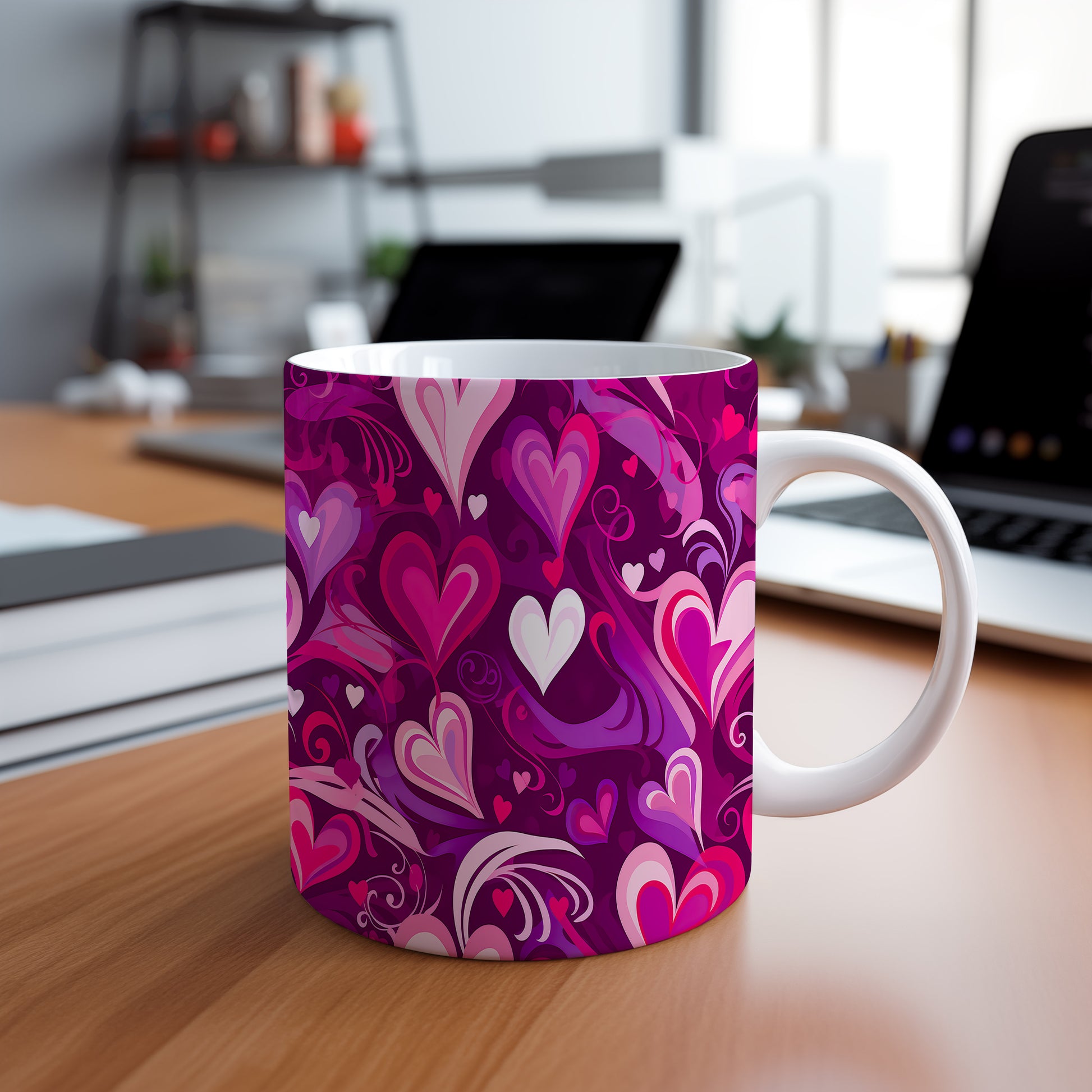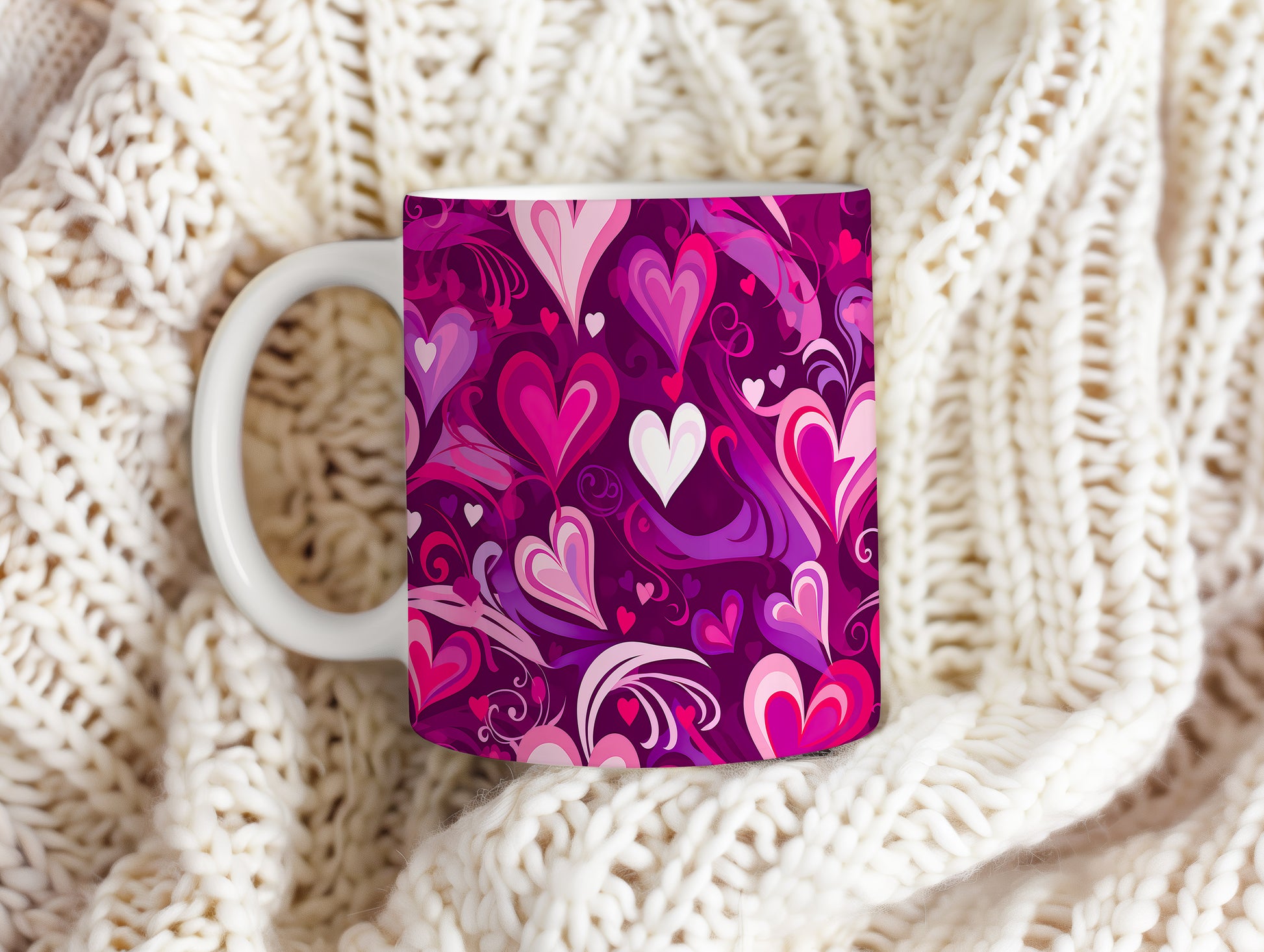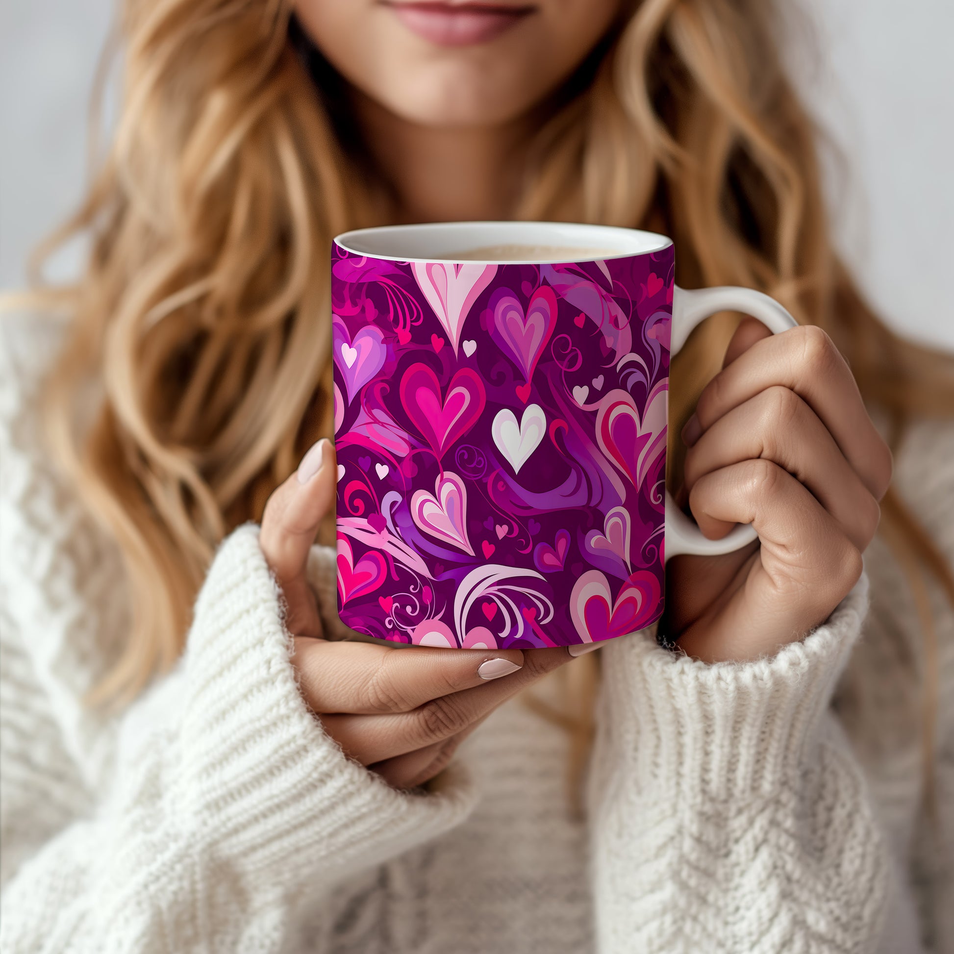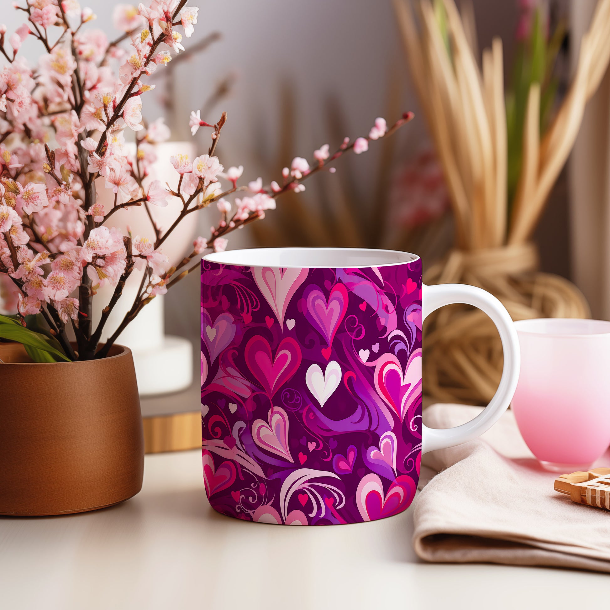 Probuďte lásku každým douškem z našeho hrnku s romantickým motivem srdcí. Syté odstíny fialové vytvářejí jedinečnou atmosféru, která zahřeje srdce i mysl. Perfektní dárek pro vaše blízké nebo pro chvíle pohody o samotě.