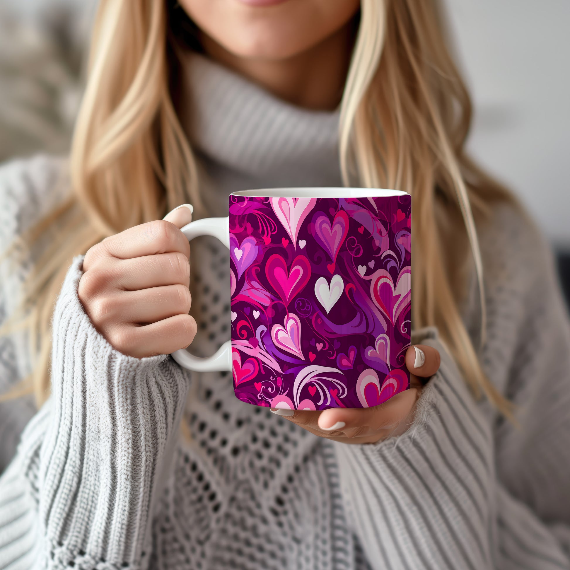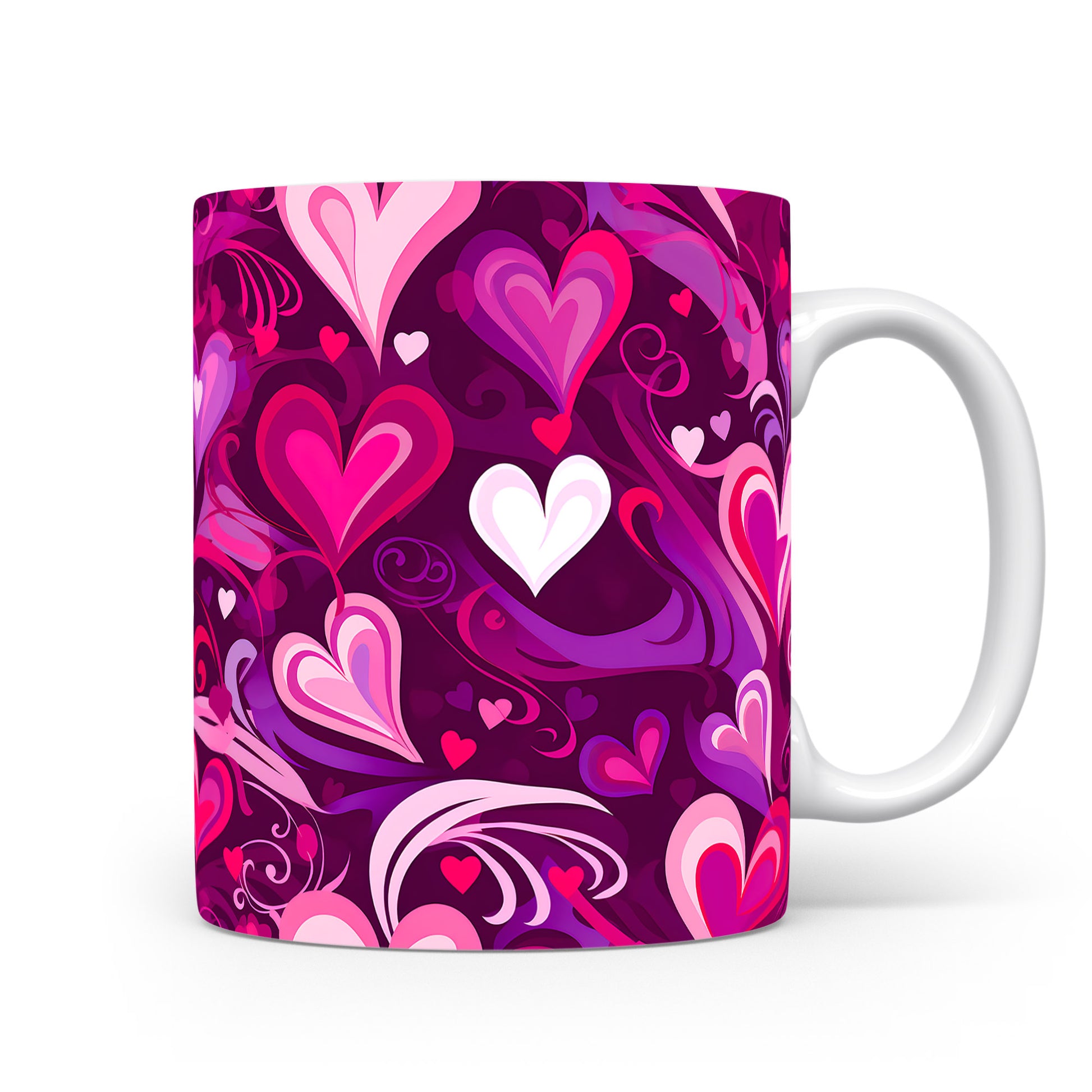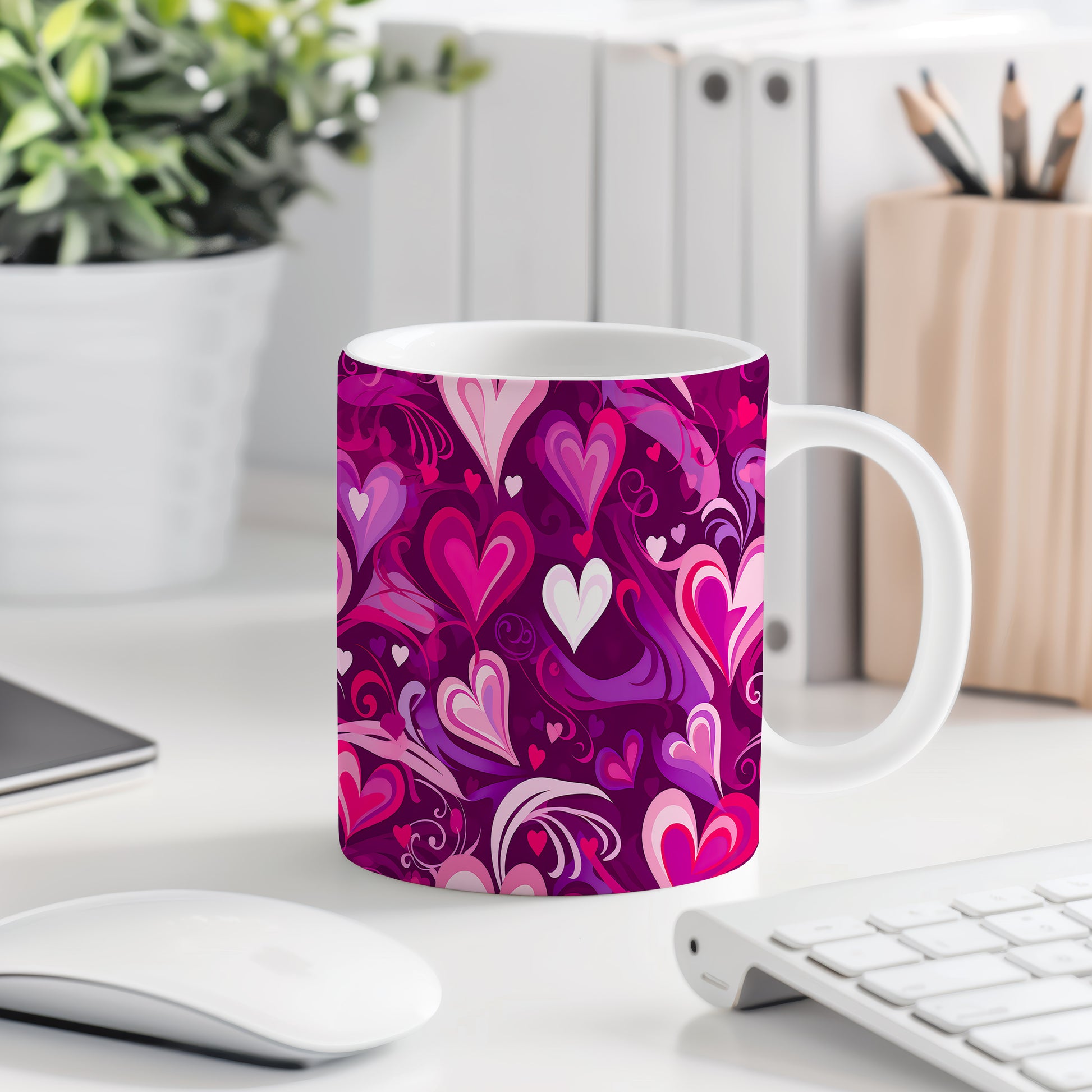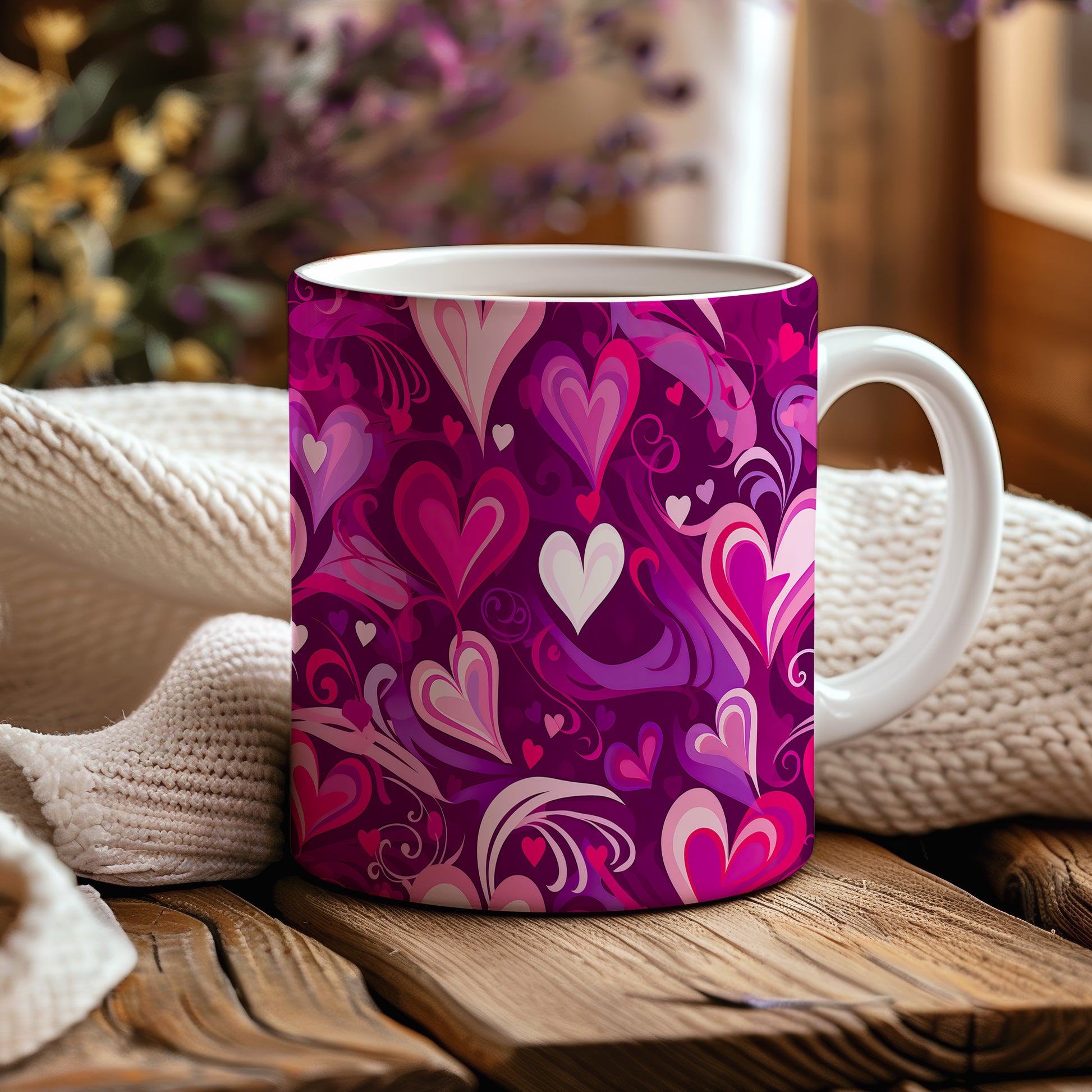 Probuďte lásku každým douškem z našeho hrnku s romantickým motivem srdcí. Syté odstíny fialové vytvářejí jedinečnou atmosféru, která zahřeje srdce i mysl. Perfektní dárek pro vaše blízké nebo pro chvíle pohody o samotě.