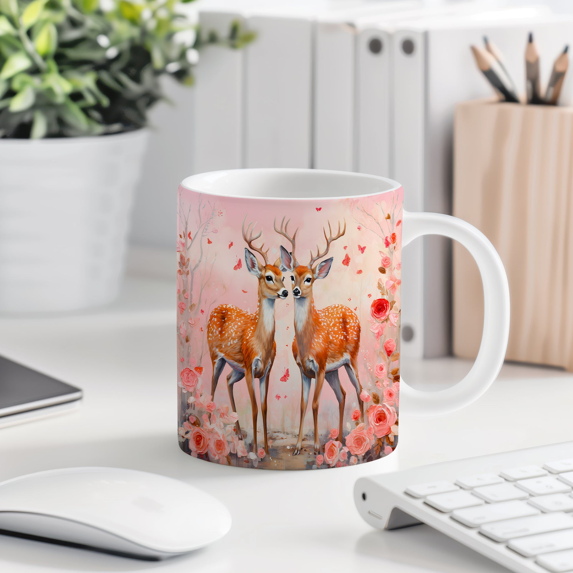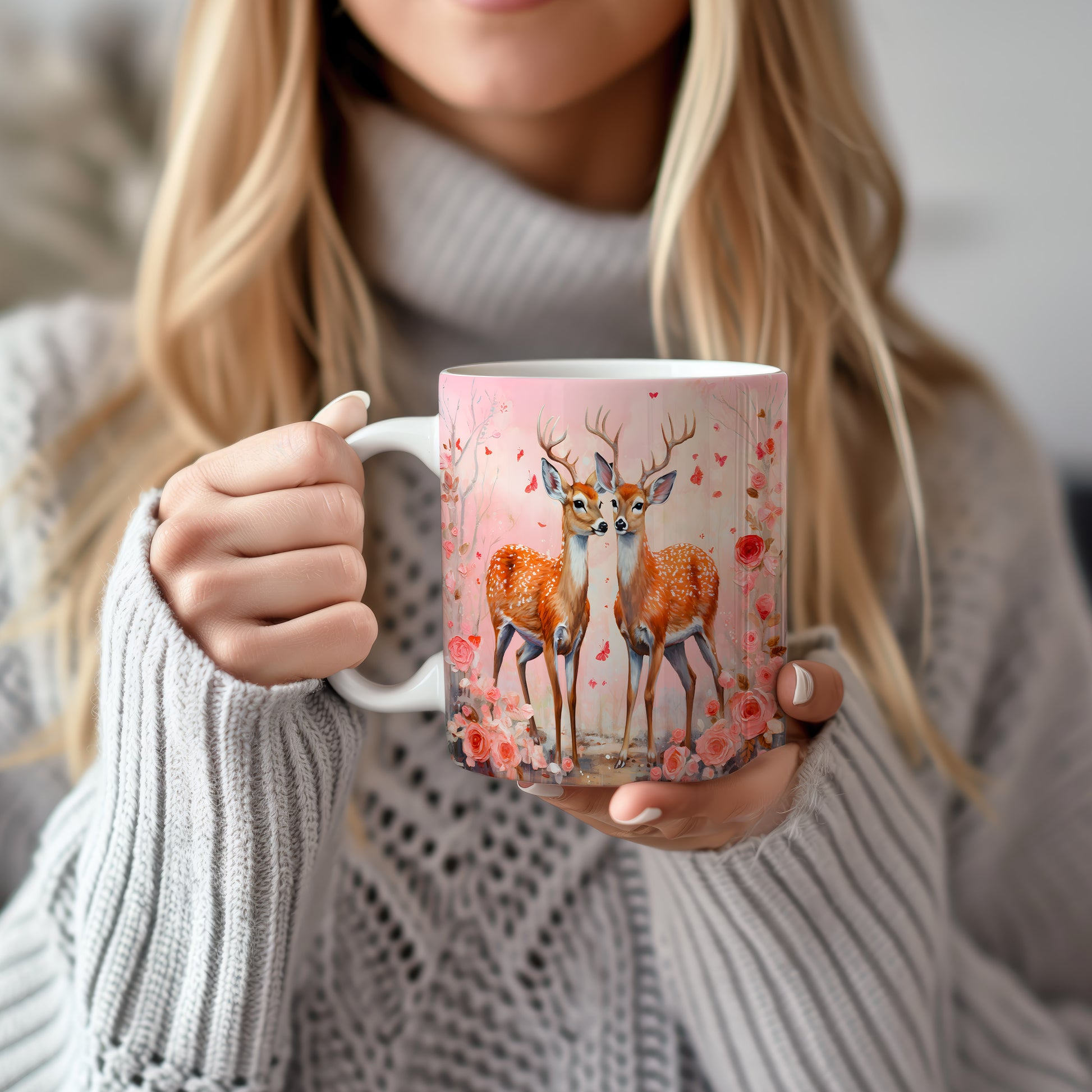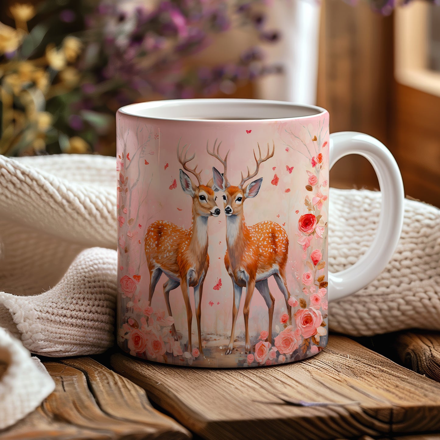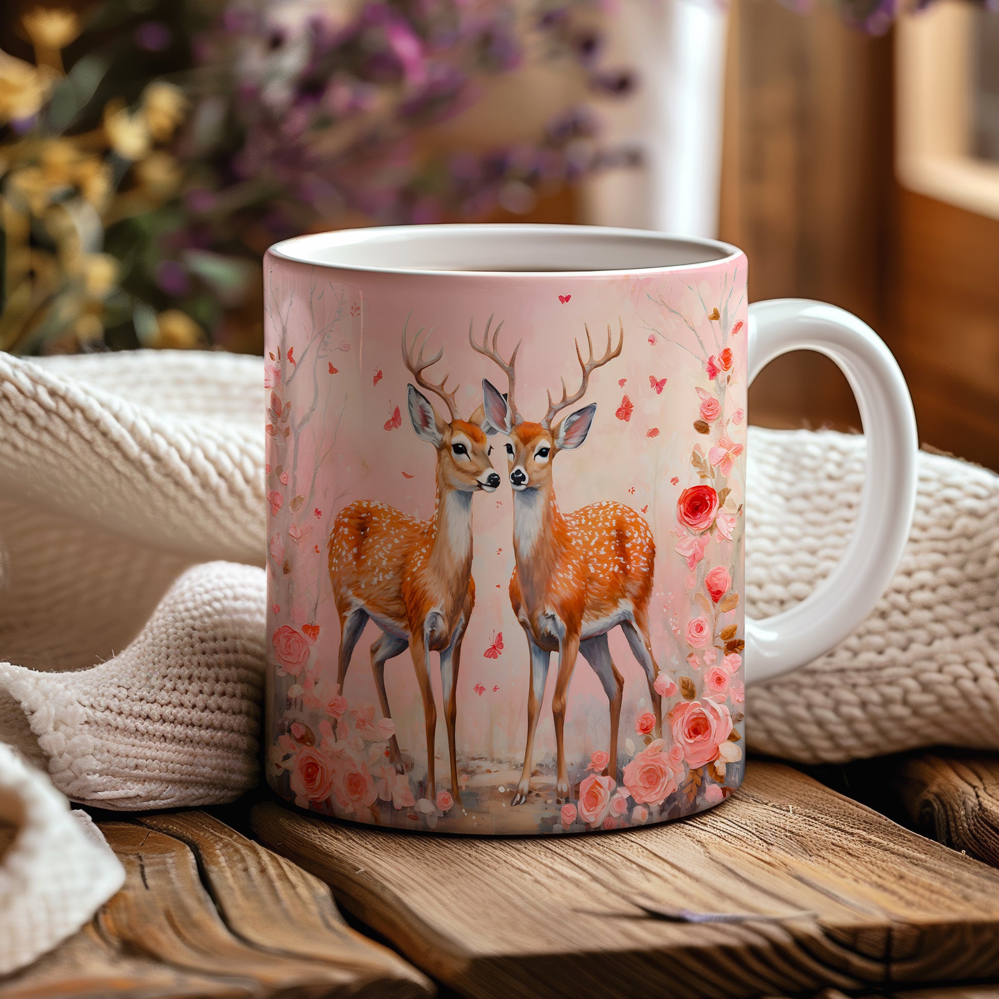 Objevte kouzlo přírody s naším hrnkem s motivem jelenů na jemně růžovém pozadí. Ideální pro milovníky přírody a romantiků, kteří ocení detailní ilustraci a jemné tóny. Přineste si kousek lesa do svého domova a užijte si každé ráno s úsměvem.