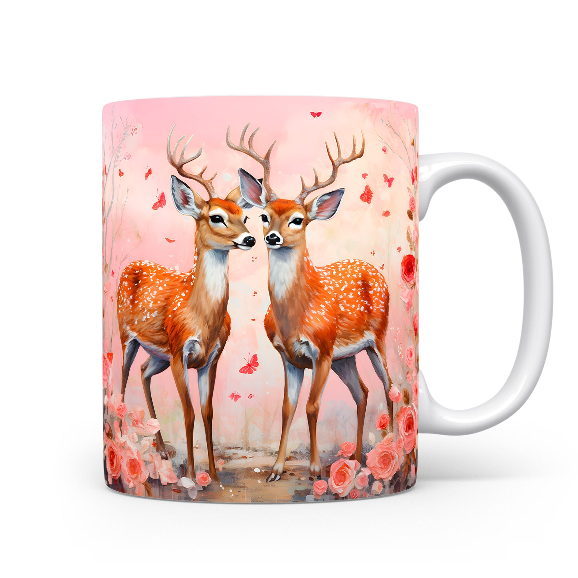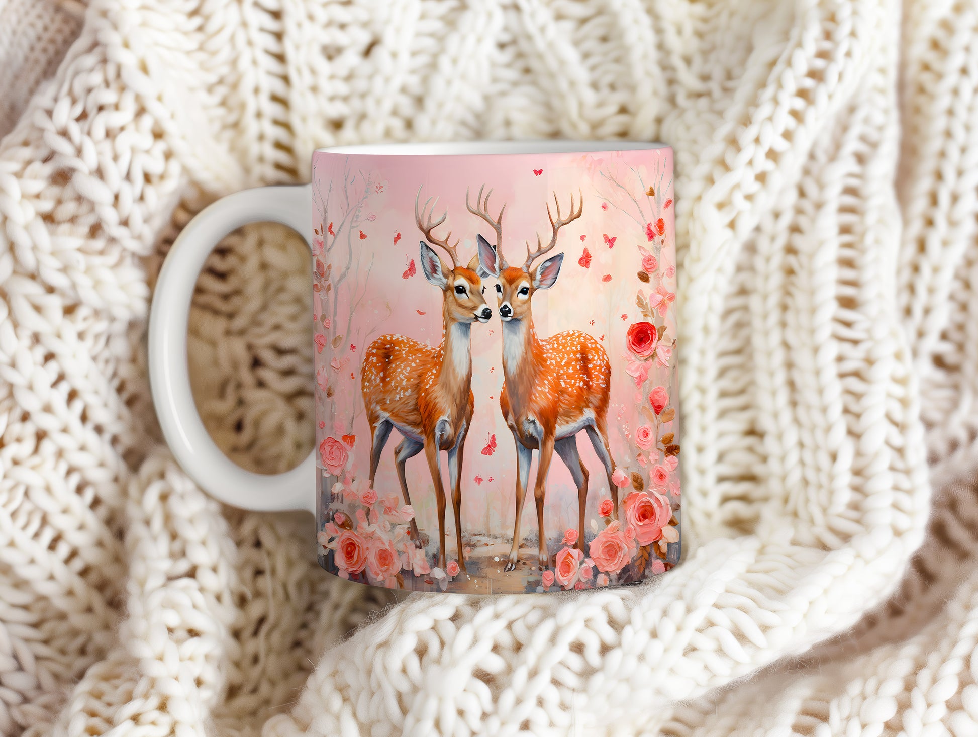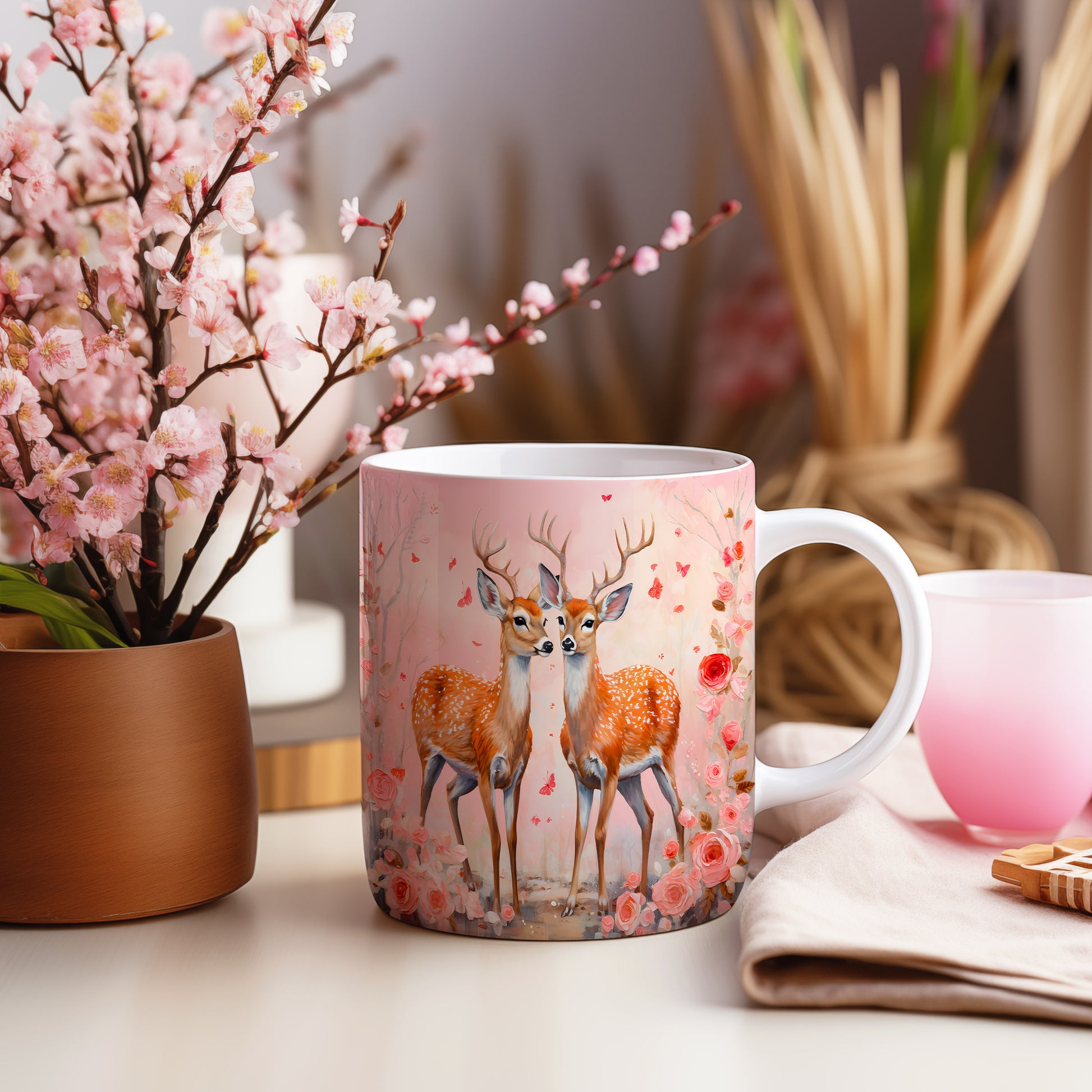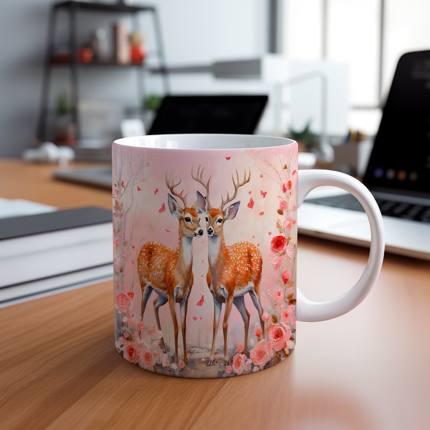 Objevte kouzlo přírody s naším hrnkem s motivem jelenů na jemně růžovém pozadí. Ideální pro milovníky přírody a romantiků, kteří ocení detailní ilustraci a jemné tóny. Přineste si kousek lesa do svého domova a užijte si každé ráno s úsměvem.