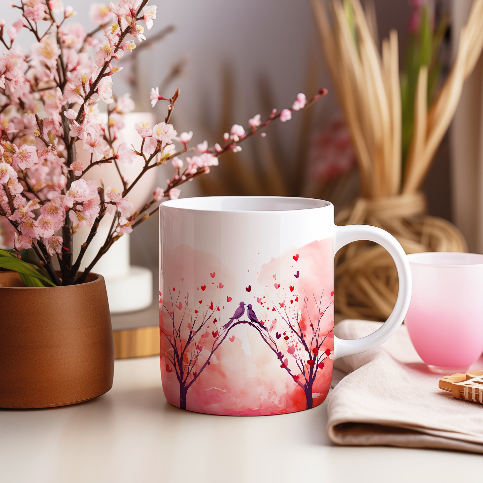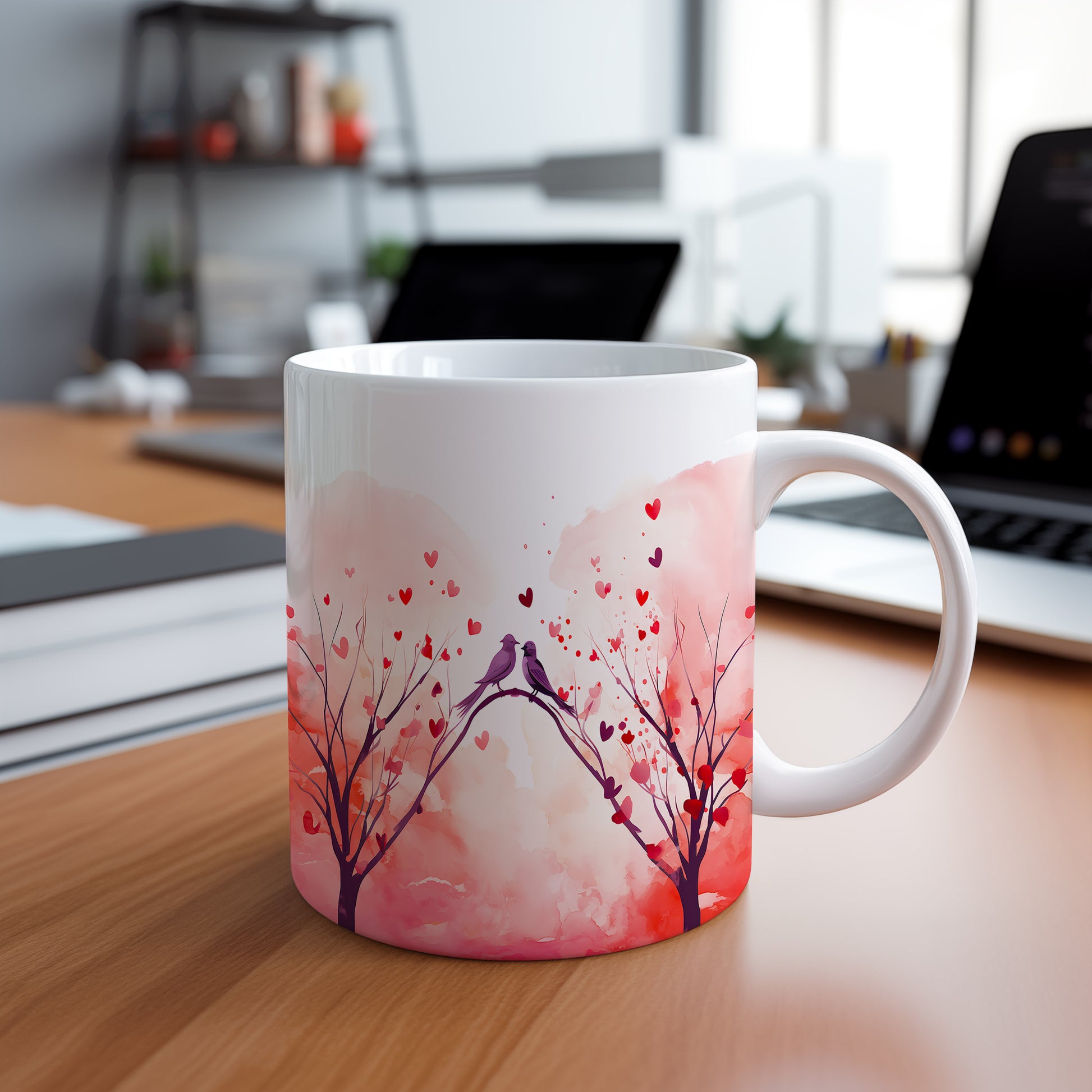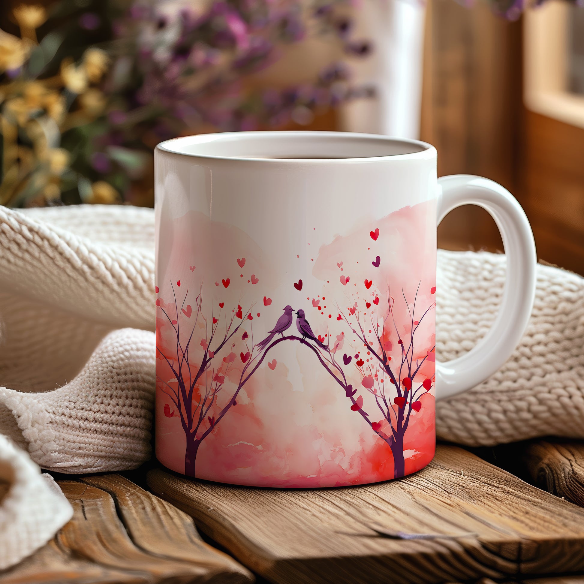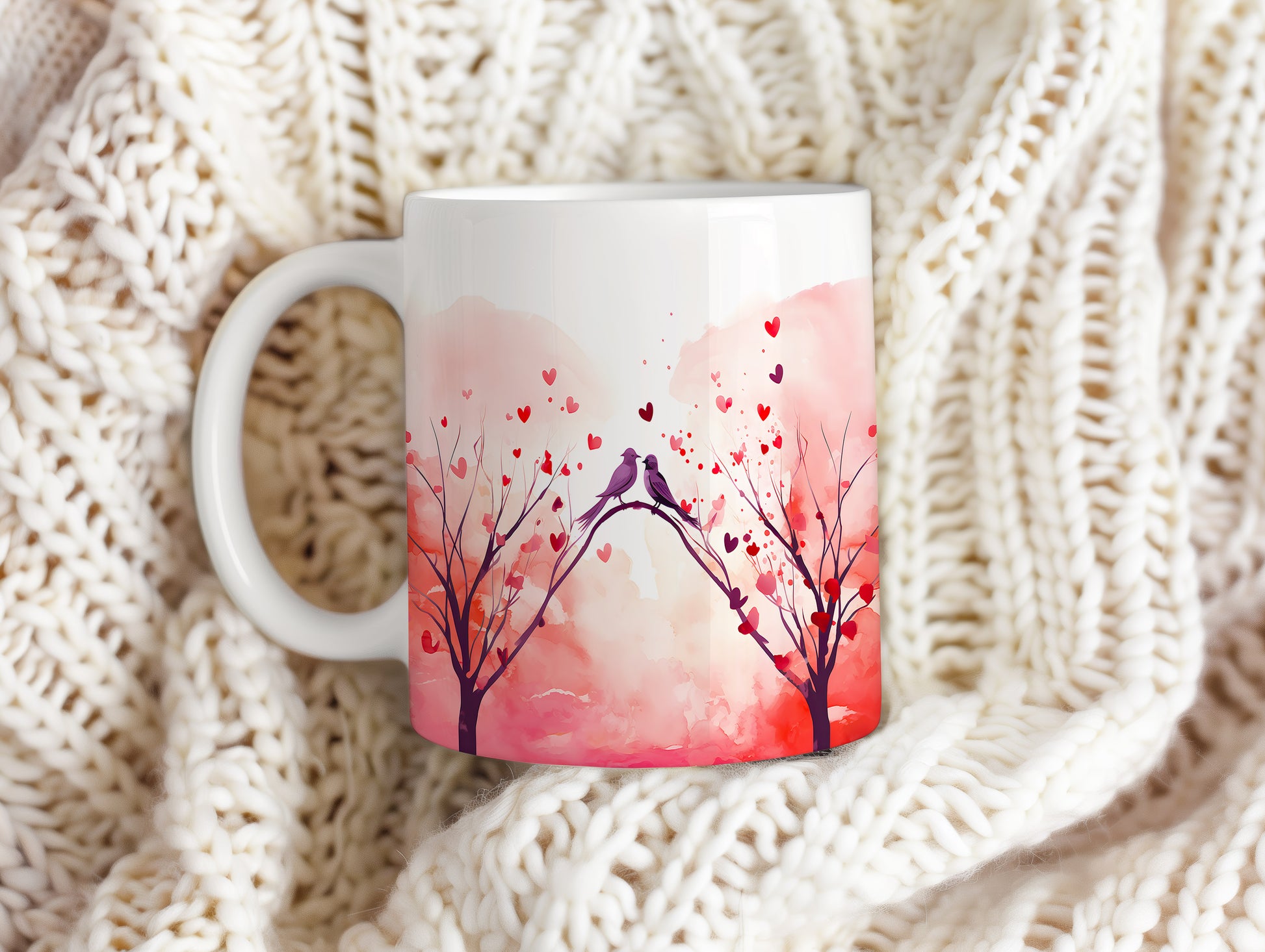 Vychutnejte si svůj oblíbený nápoj z hrnku, který zahřeje nejen ruce, ale i srdce. Romantický motiv ptáčků na větvičkách s červenými srdíčky přinese do vašeho dne lásku a pohodu.