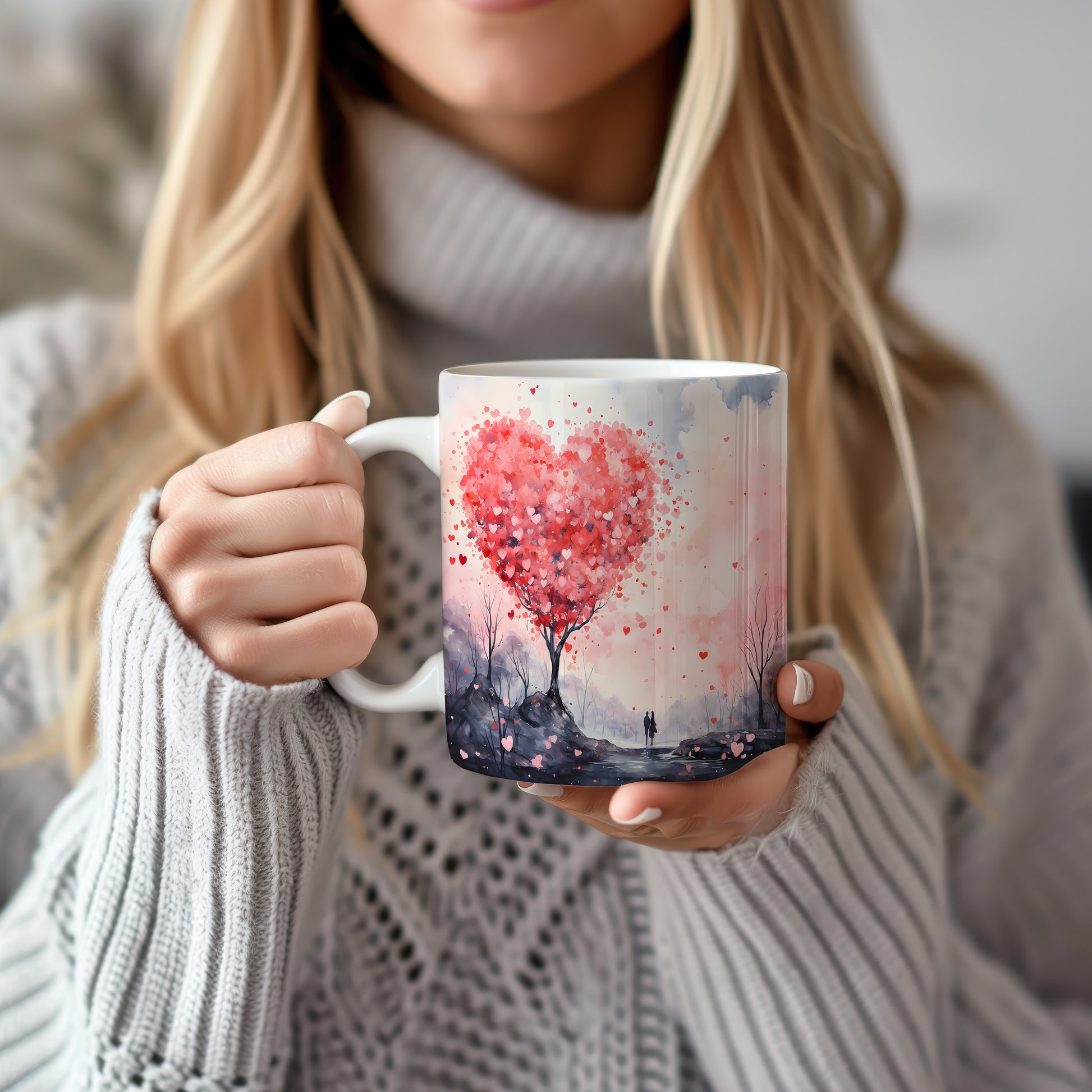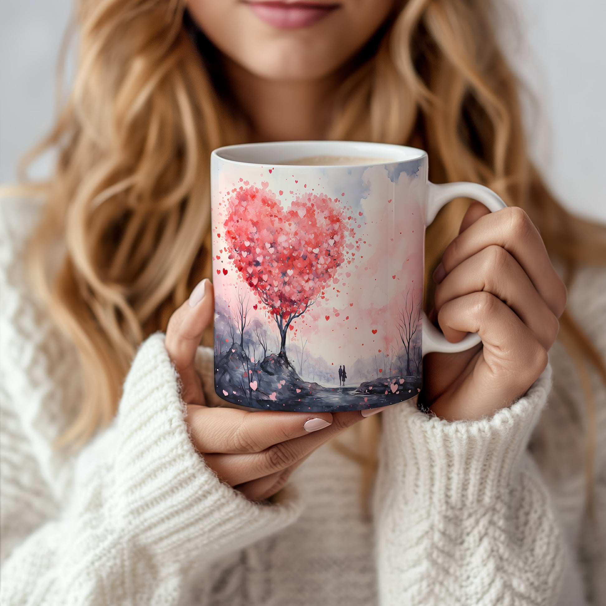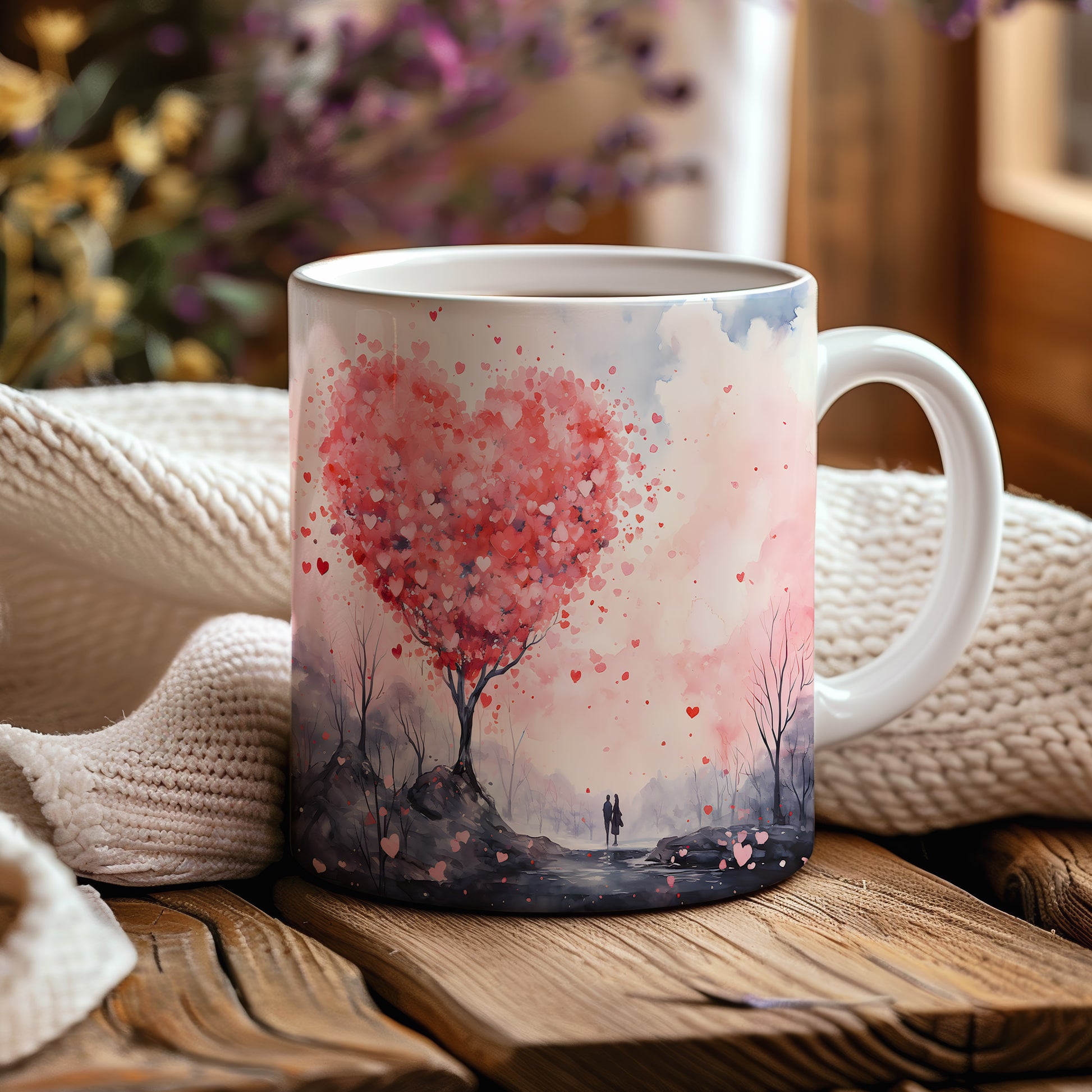 Objevte kouzlo romantiky s naším hrnkem, který zobrazuje nádherný strom ve tvaru srdce. Pastelové barvy dodávají jemnost a vytvářejí atmosféru lásky a pohody. Ideální dárek pro vašeho milovaného.