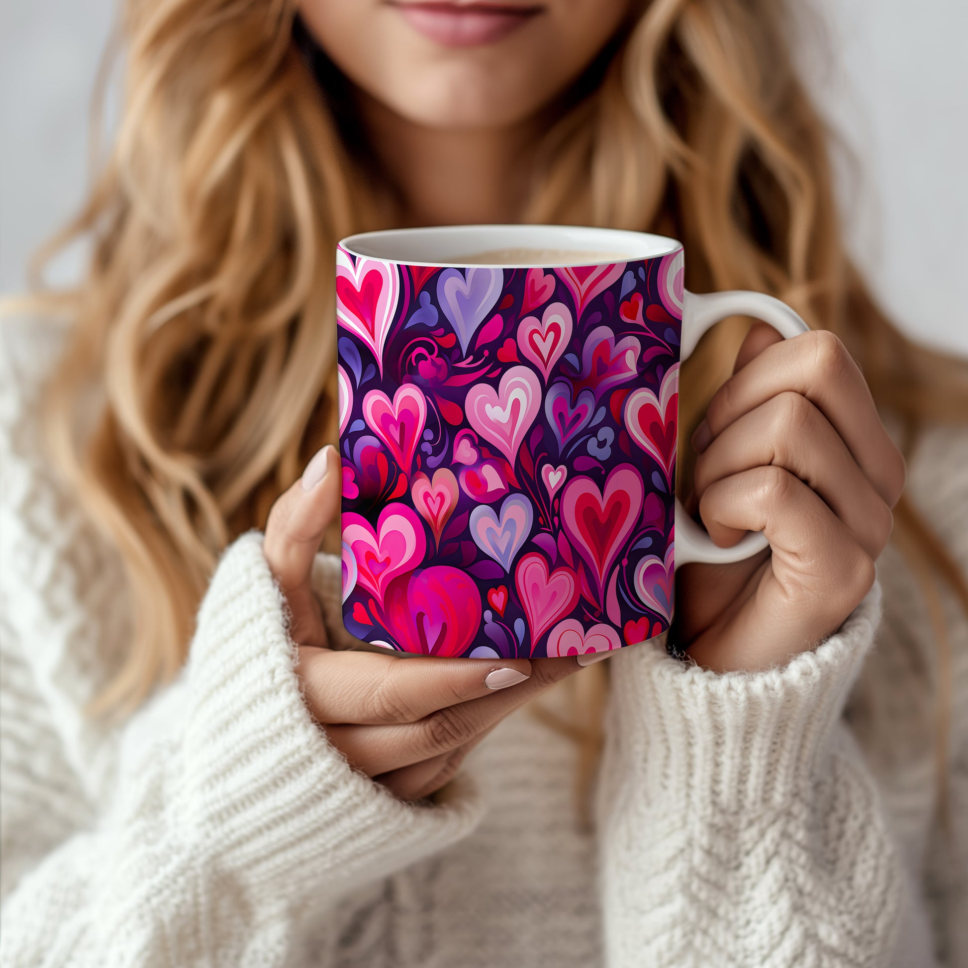 Objevte kouzlo lásky s naším hrnkem plným romantických srdcí. Tento design v růžových a fialových tónech přináší radost a pocit blízkosti s každým douškem. Perfektní dárek pro vaše milované, který zahřeje nejen čajem, ale i emocemi.