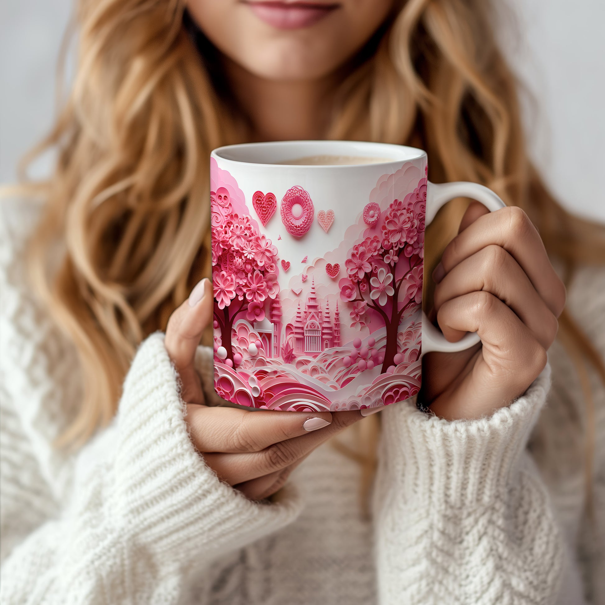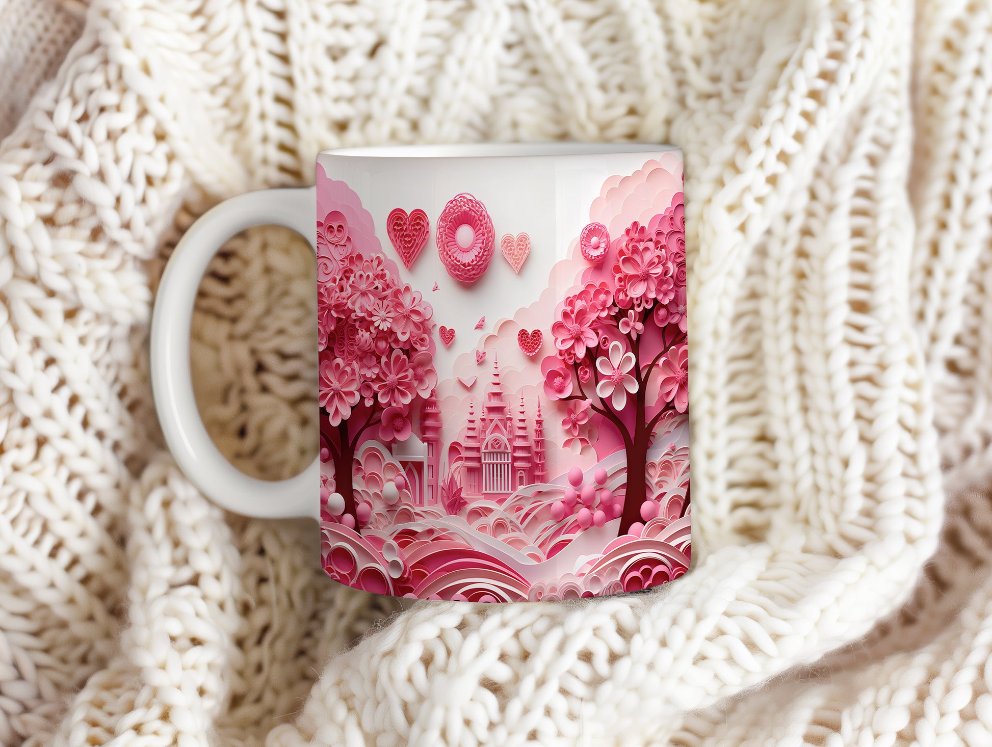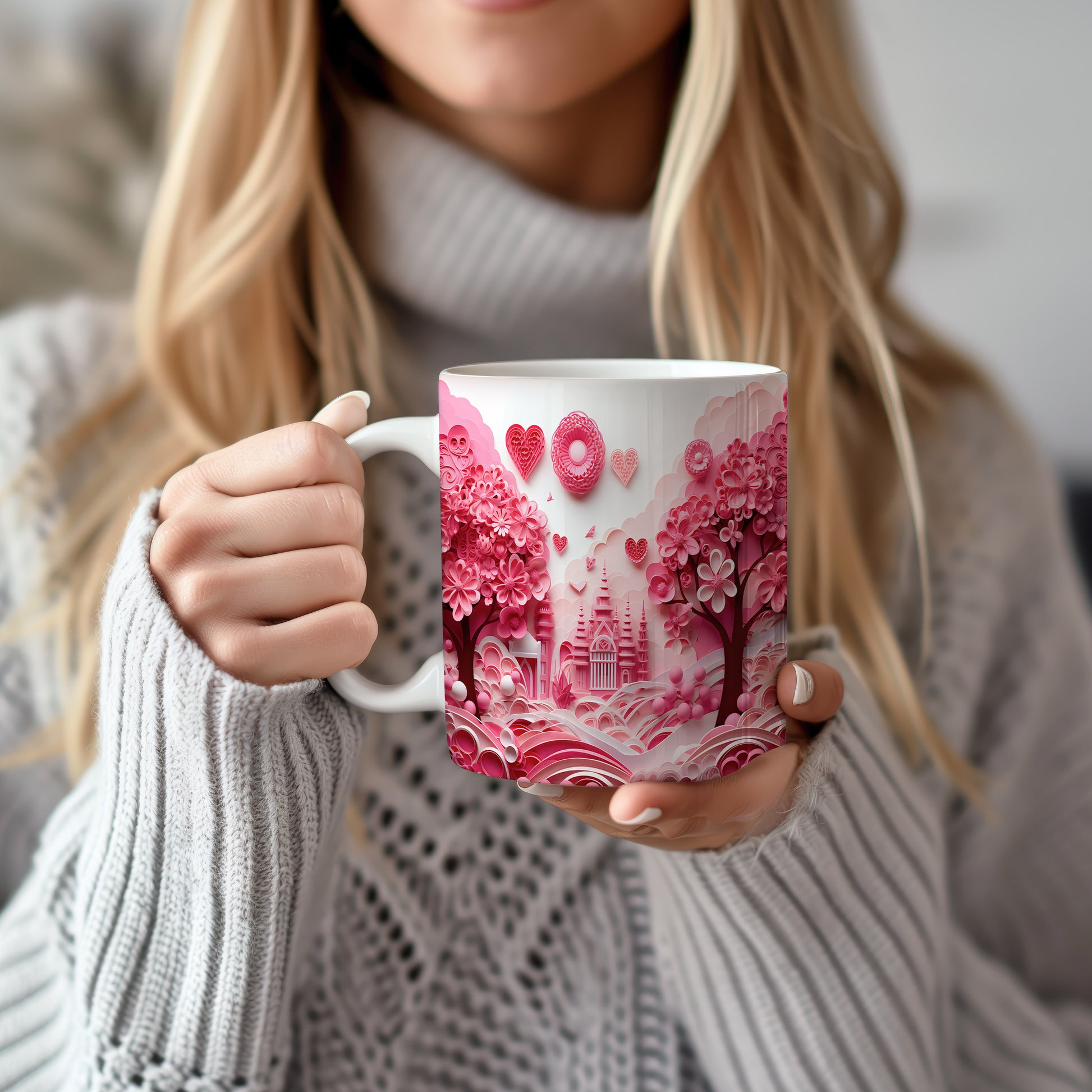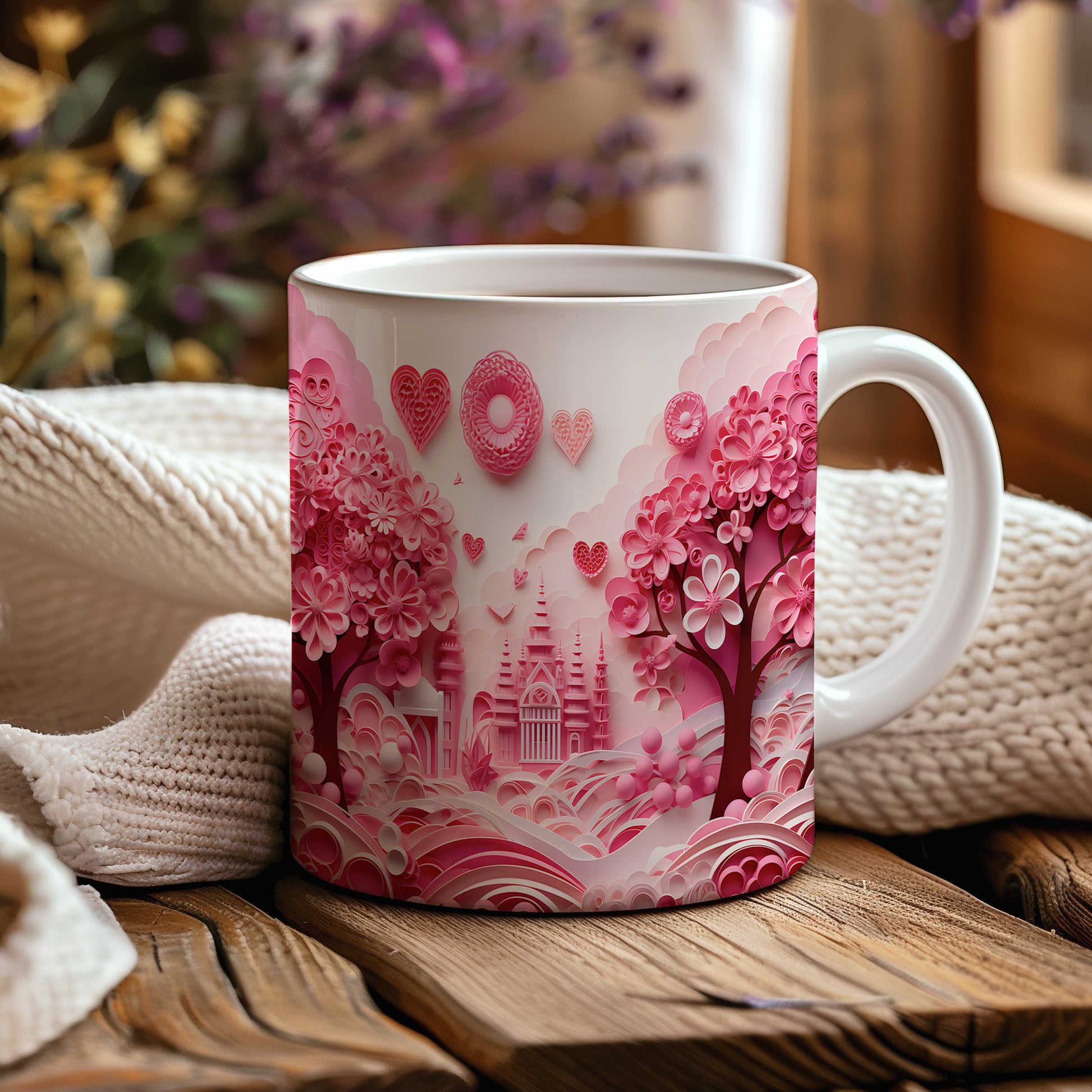 Hrnek s růžovým romantickým motivem a srdíčky
