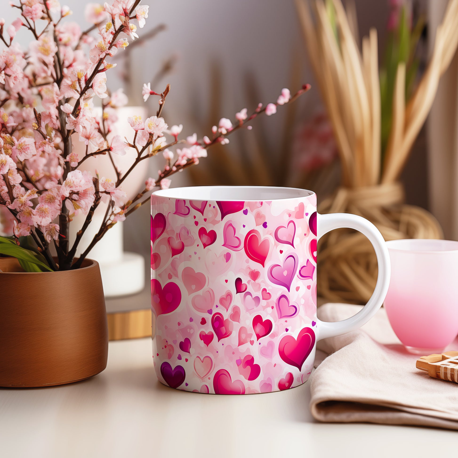 Hrnek romantické srdce v růžových tónech
