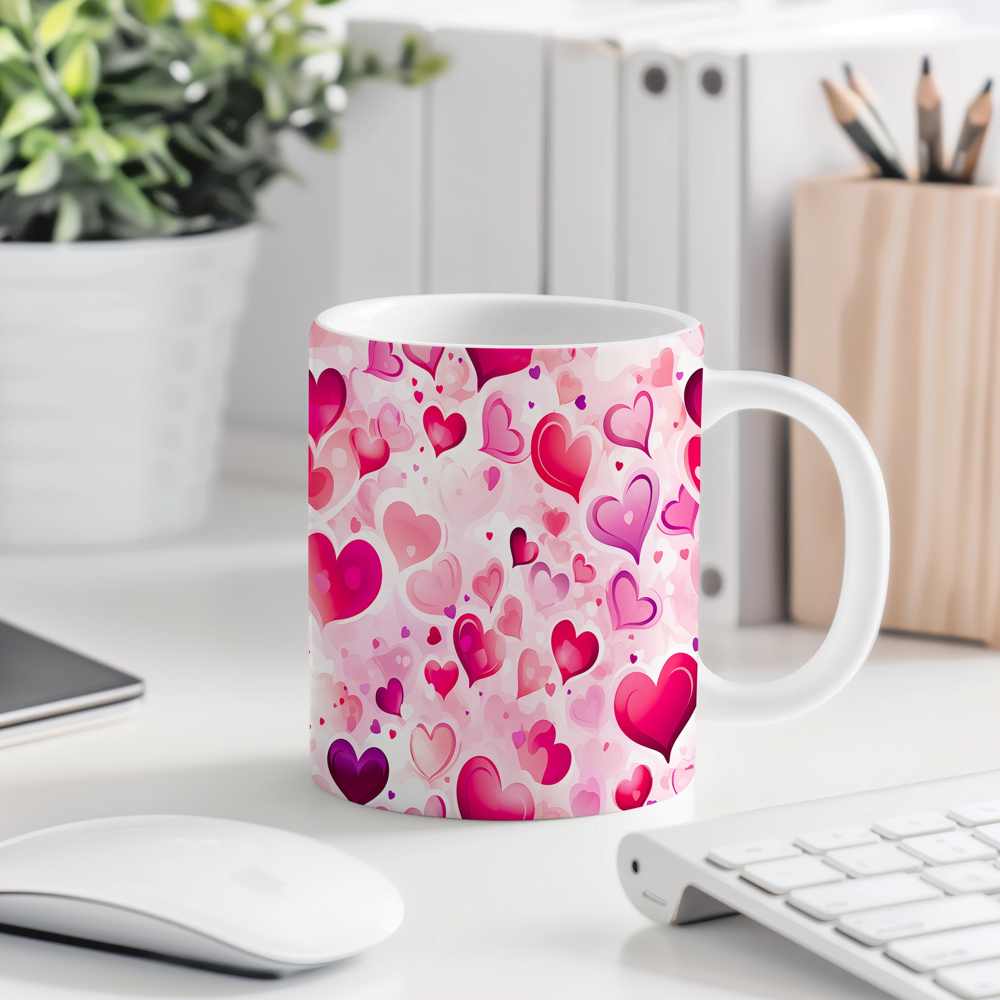 Přineste do svého dne romantiku s hrnkem plným srdíček v jemných růžových a červených odstínech. Ideální pro ty, kteří chtějí vyjádřit lásku i při běžném pití kávy. Tento hrnek je perfektním dárkem pro zamilované páry.