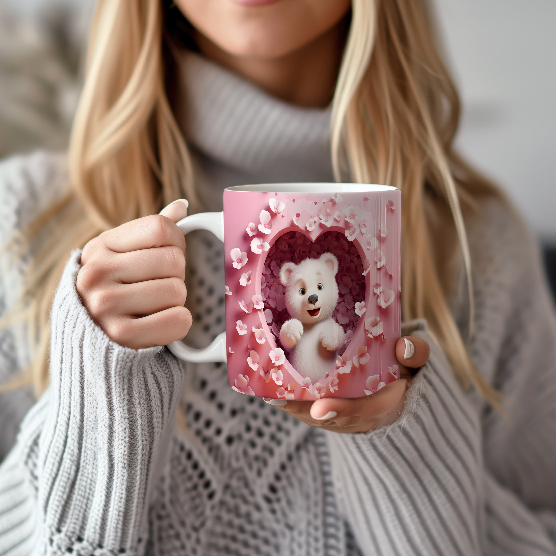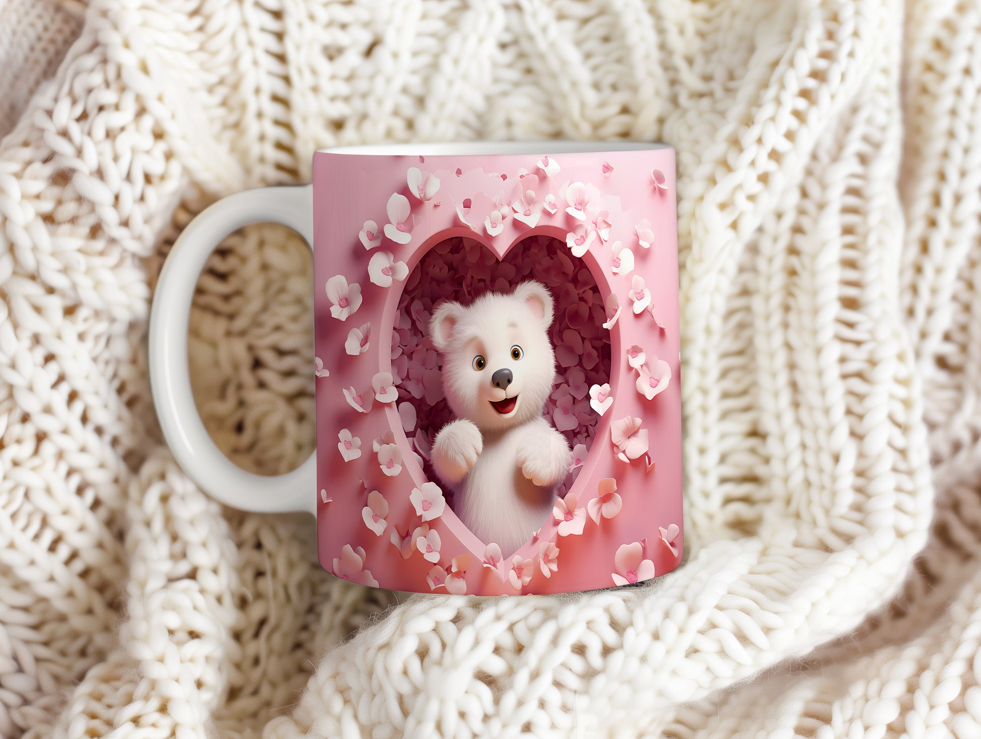 Udělejte si radost tímto rozkošným hrnkem s ledním medvídkem v srdci. Jemné růžové květy dodávají hrnku romantický nádech, který potěší každou duši. Ideální pro chvíle pohody s vaším oblíbeným nápojem.