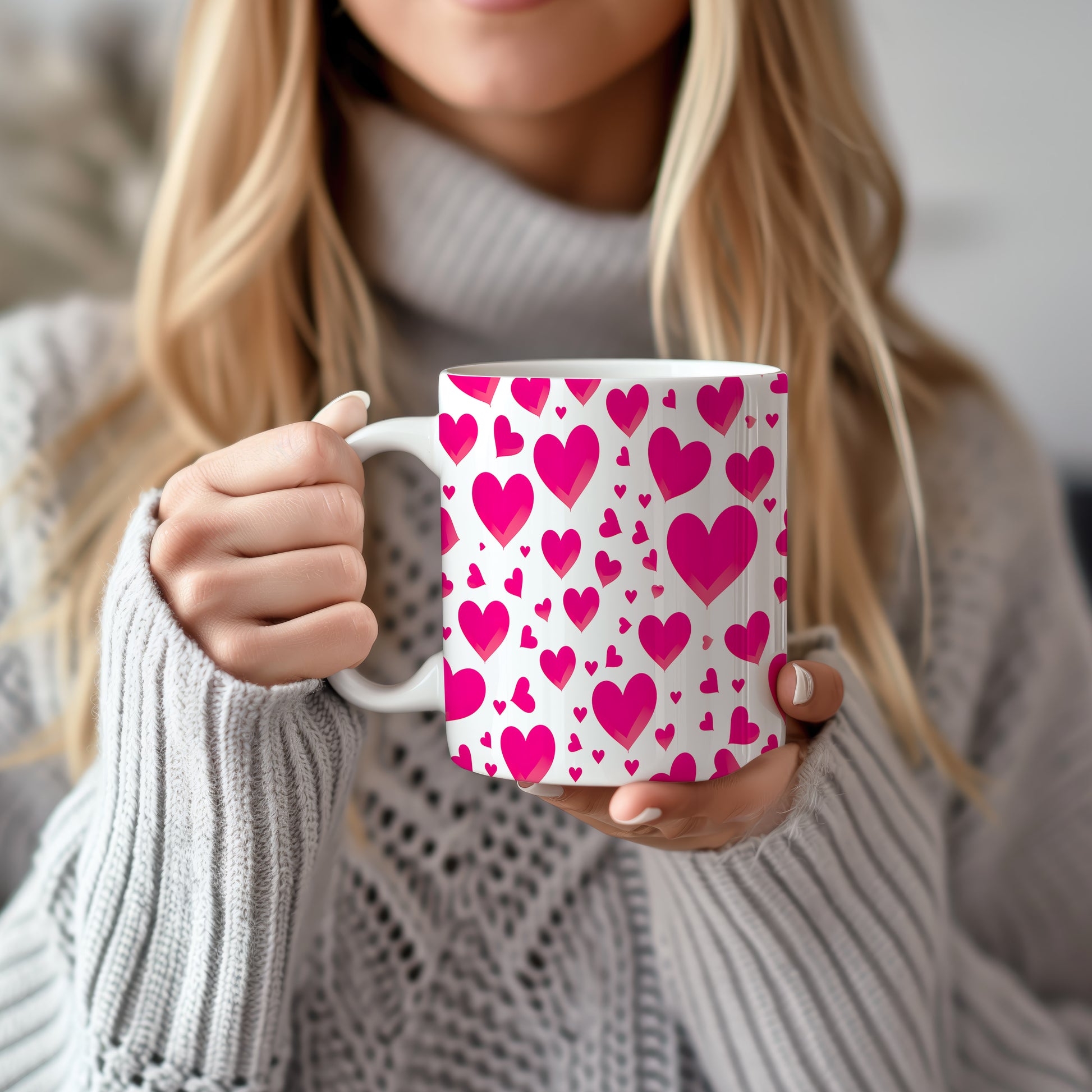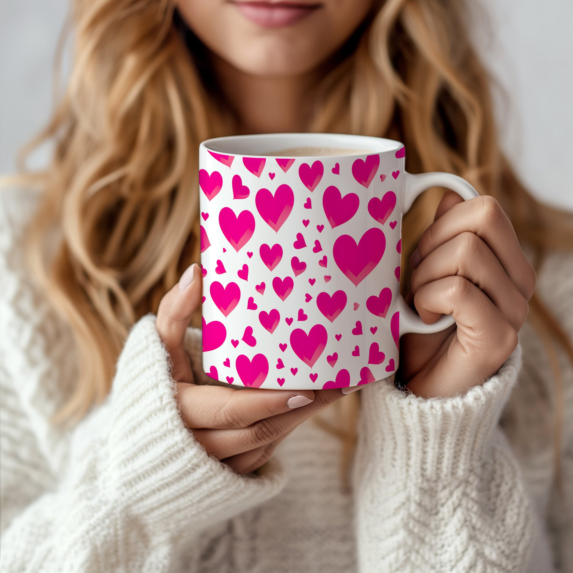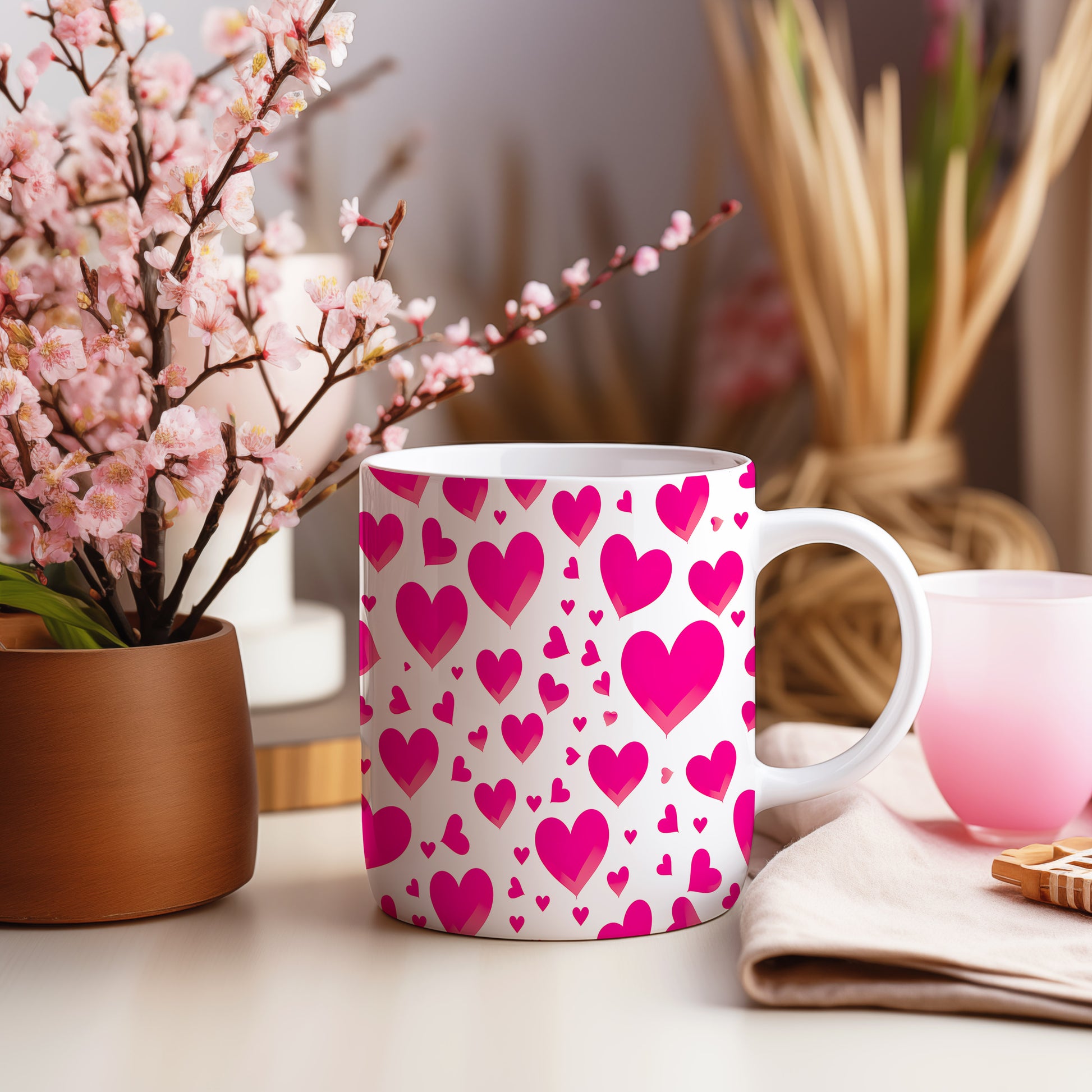 Objevte kouzlo lásky s naším hrnkem plným růžových srdíček. Tento hrnek je ideálním dárkem pro romantické duše. Začněte svůj den s úsměvem a šálkem oblíbeného nápoje.