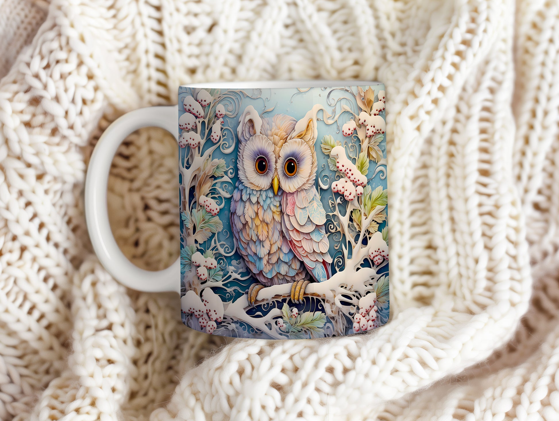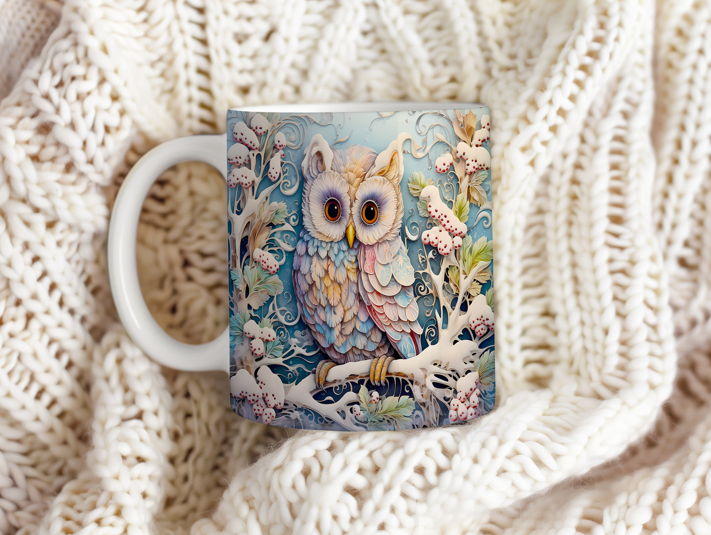 Vánoční hrnek s barevnou sovou