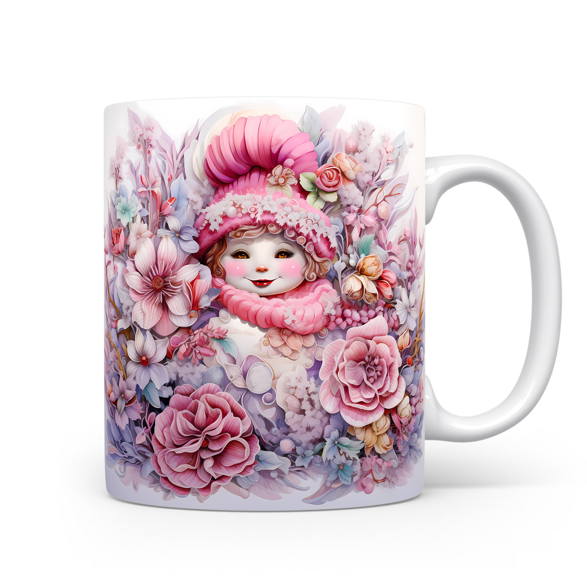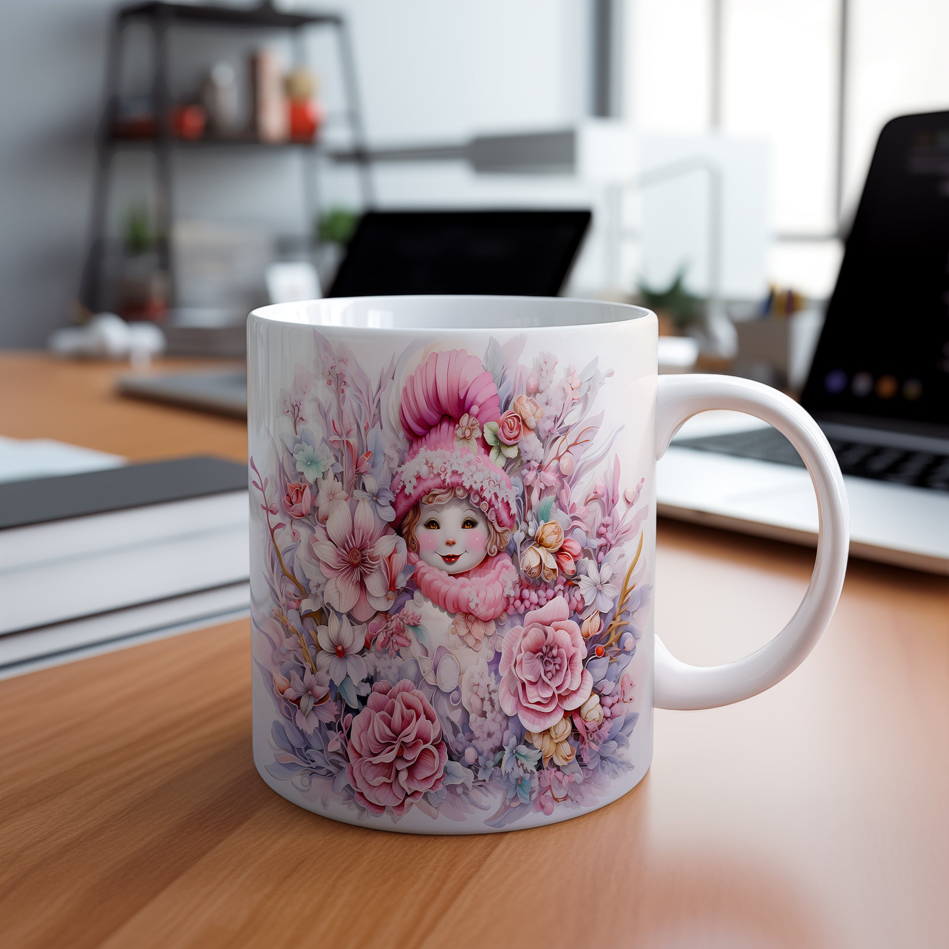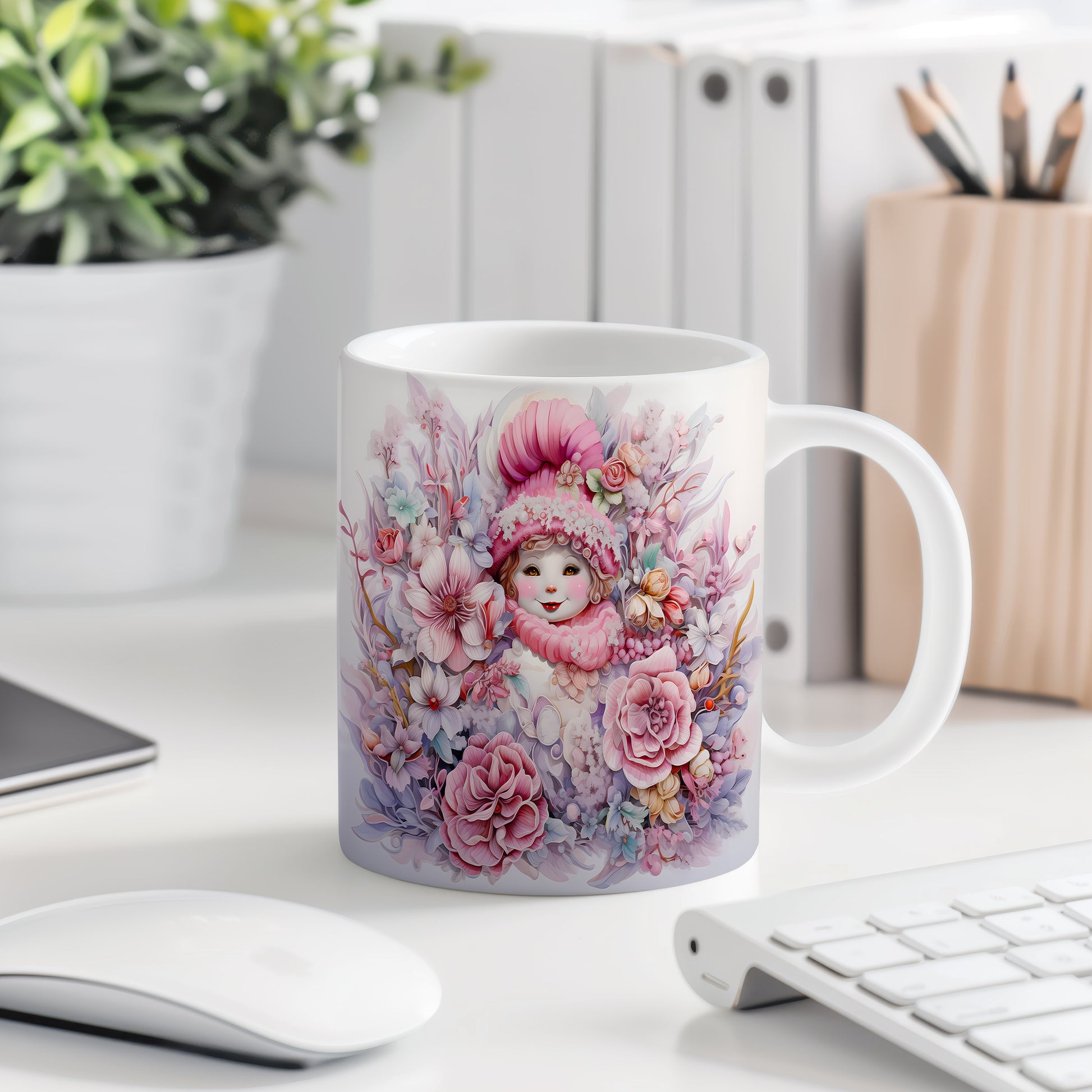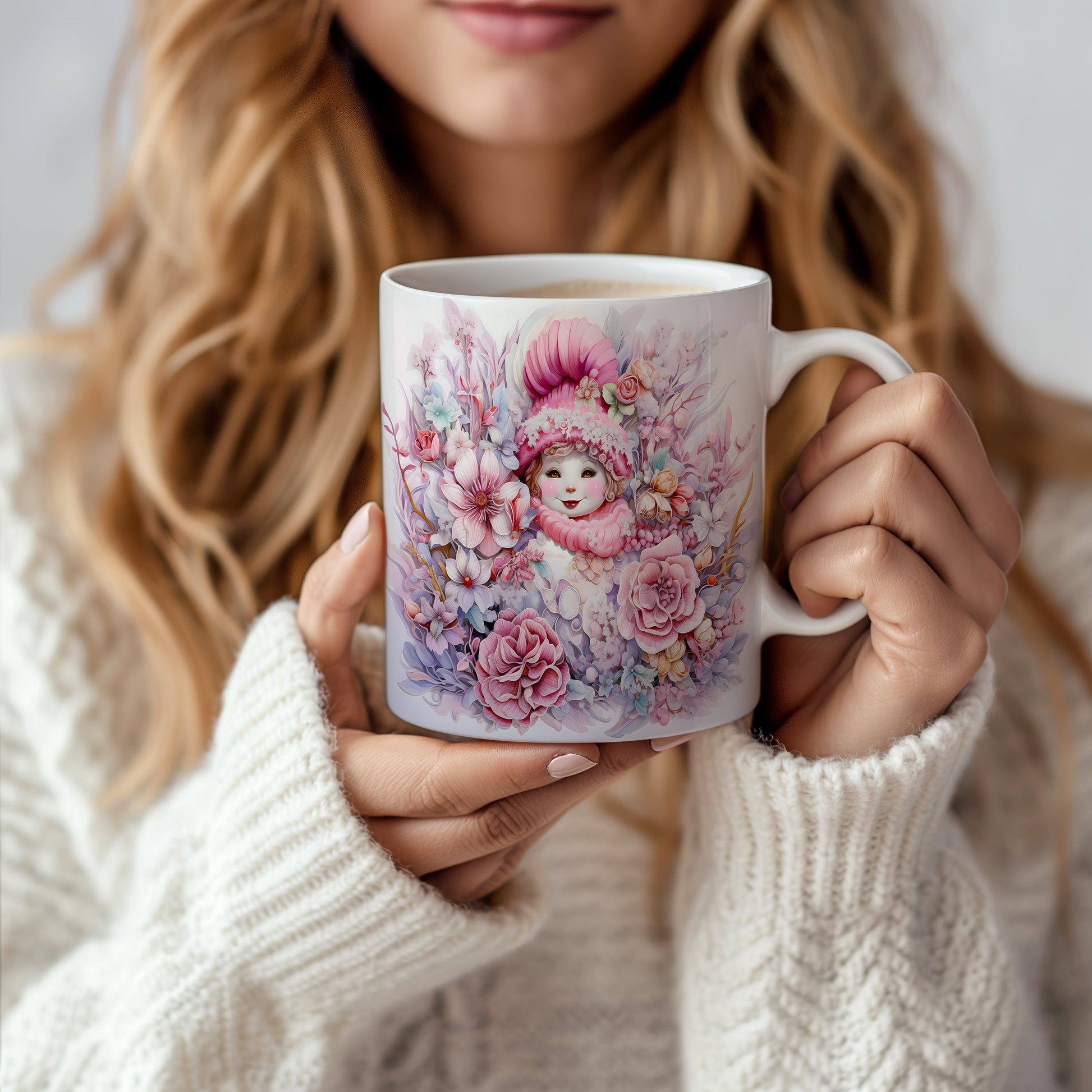 Vánoční hrnek s dětská tvářem a květinami