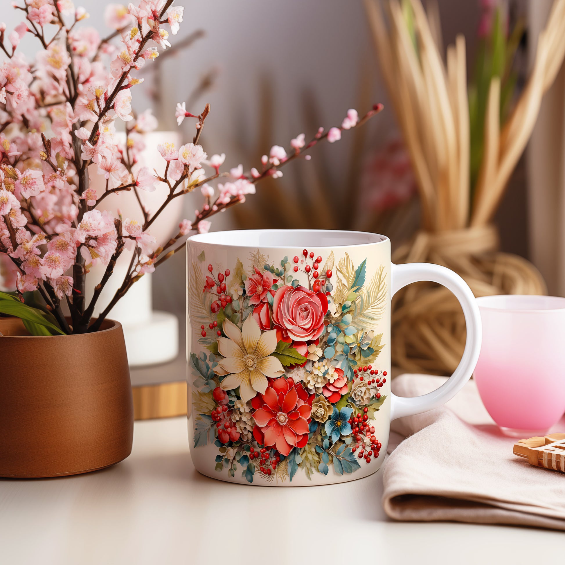 Vánoční hrnek s Květinová kytice