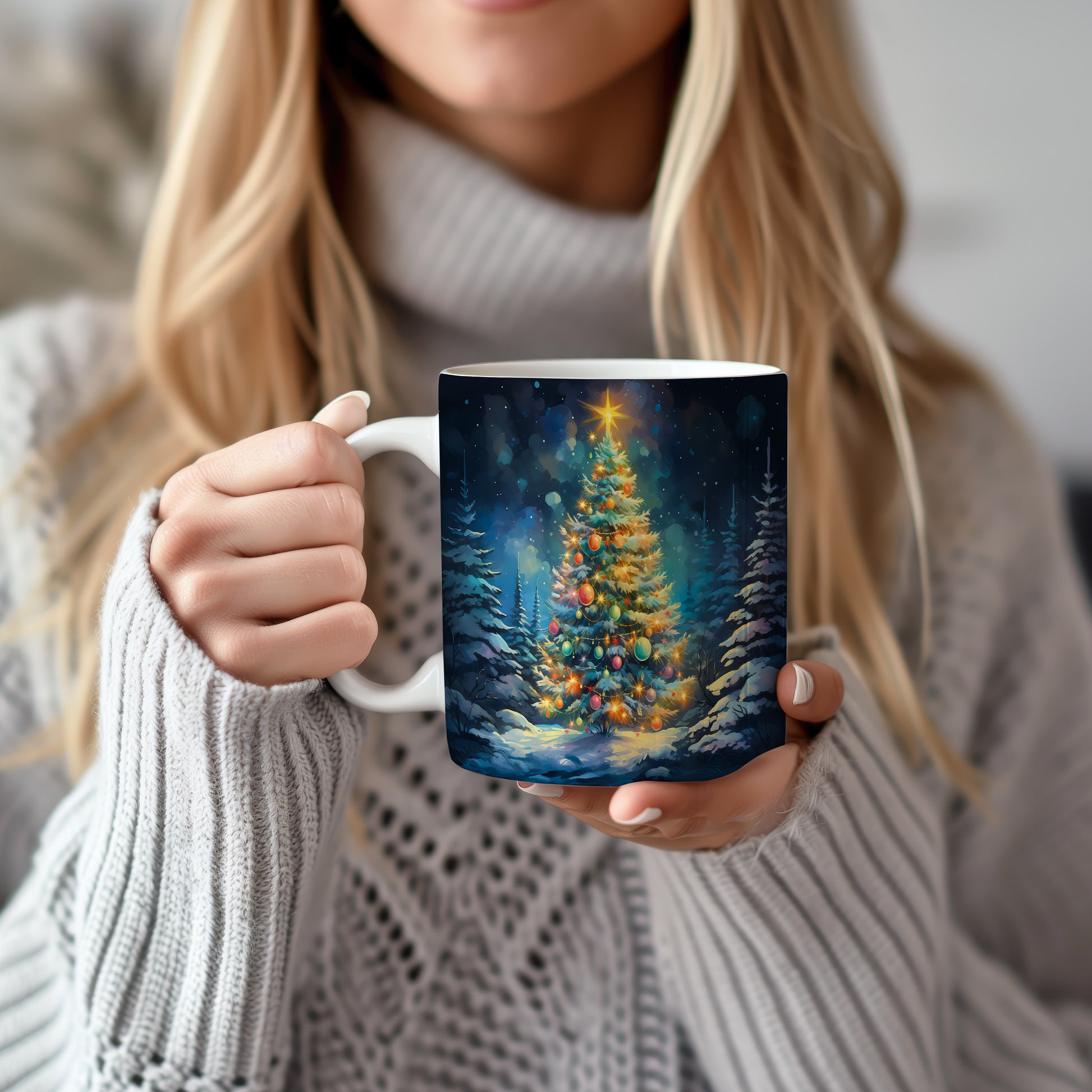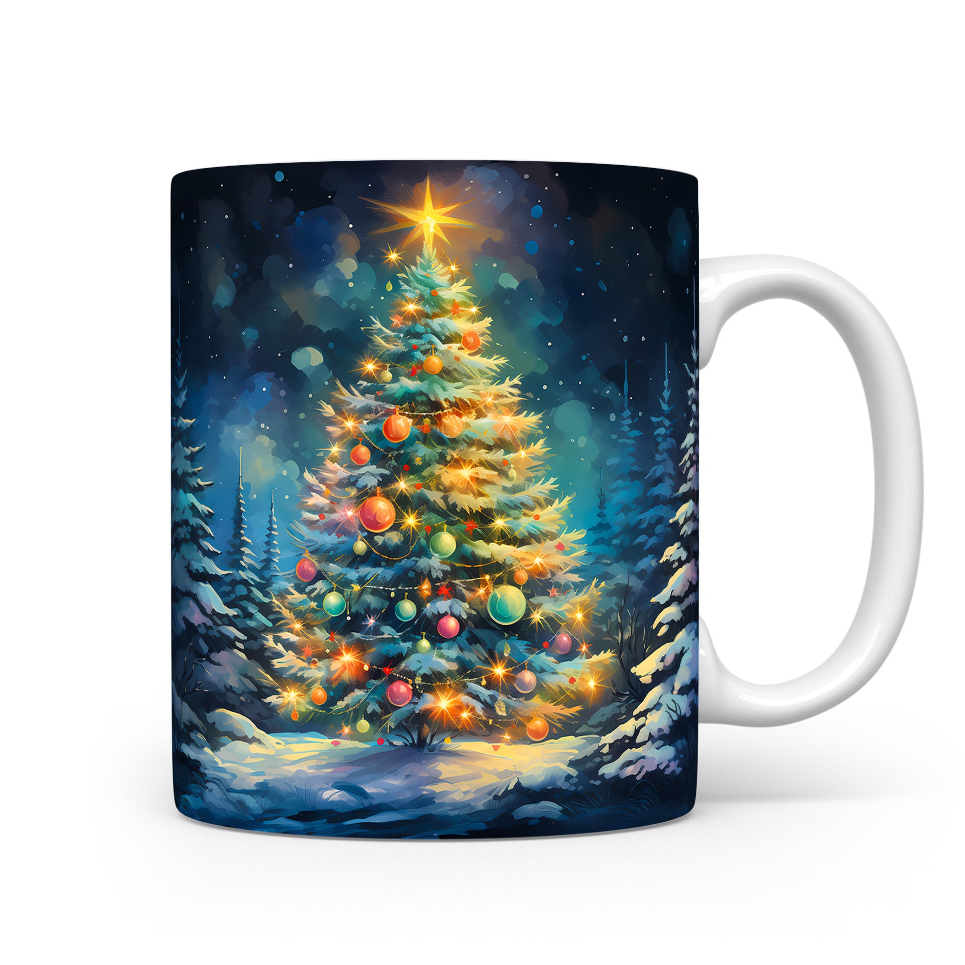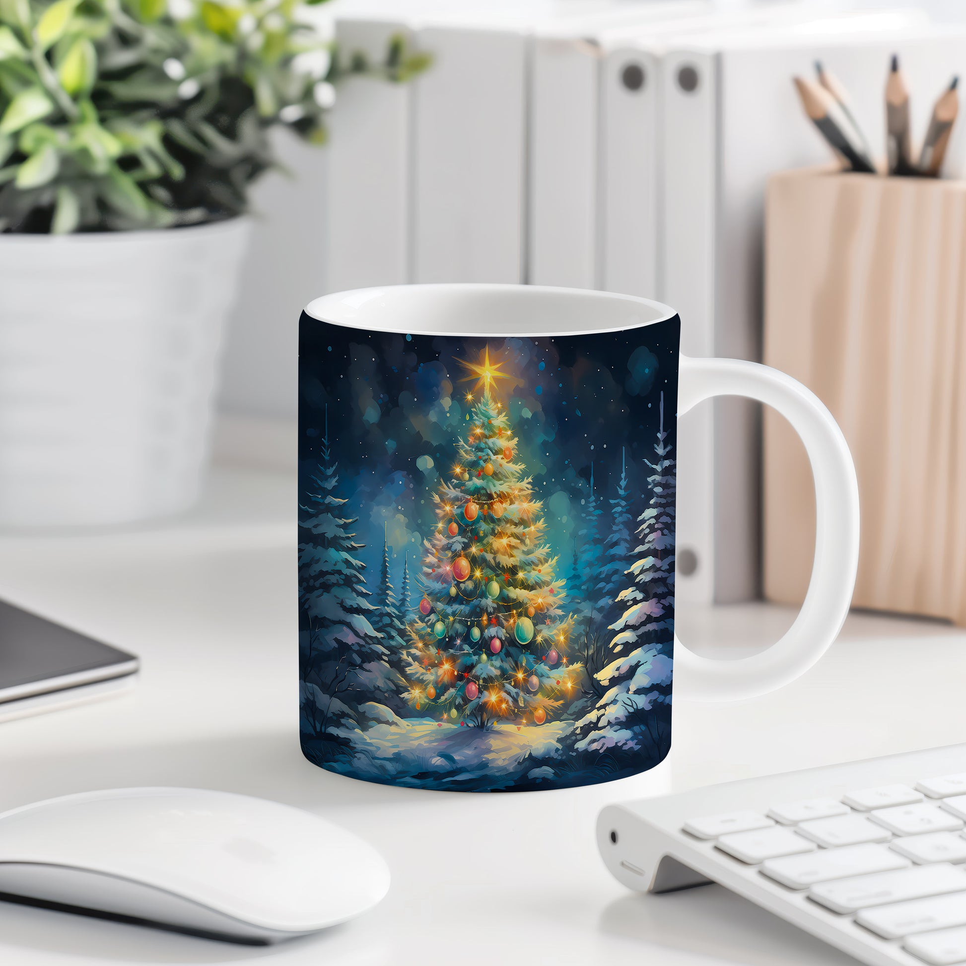 Vánoční hrnek s Ozdobeným stromečkem – ručně ilustrovaný motiv