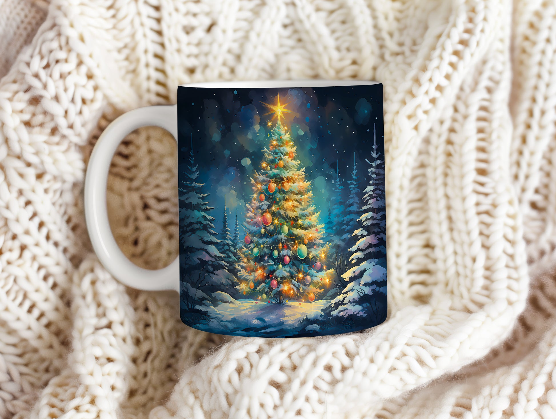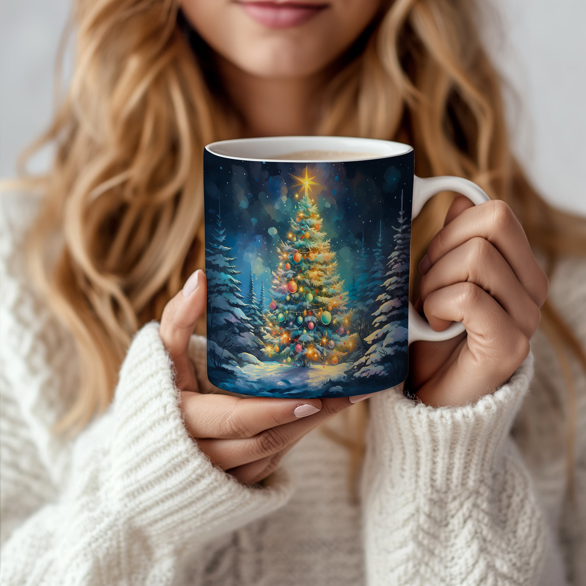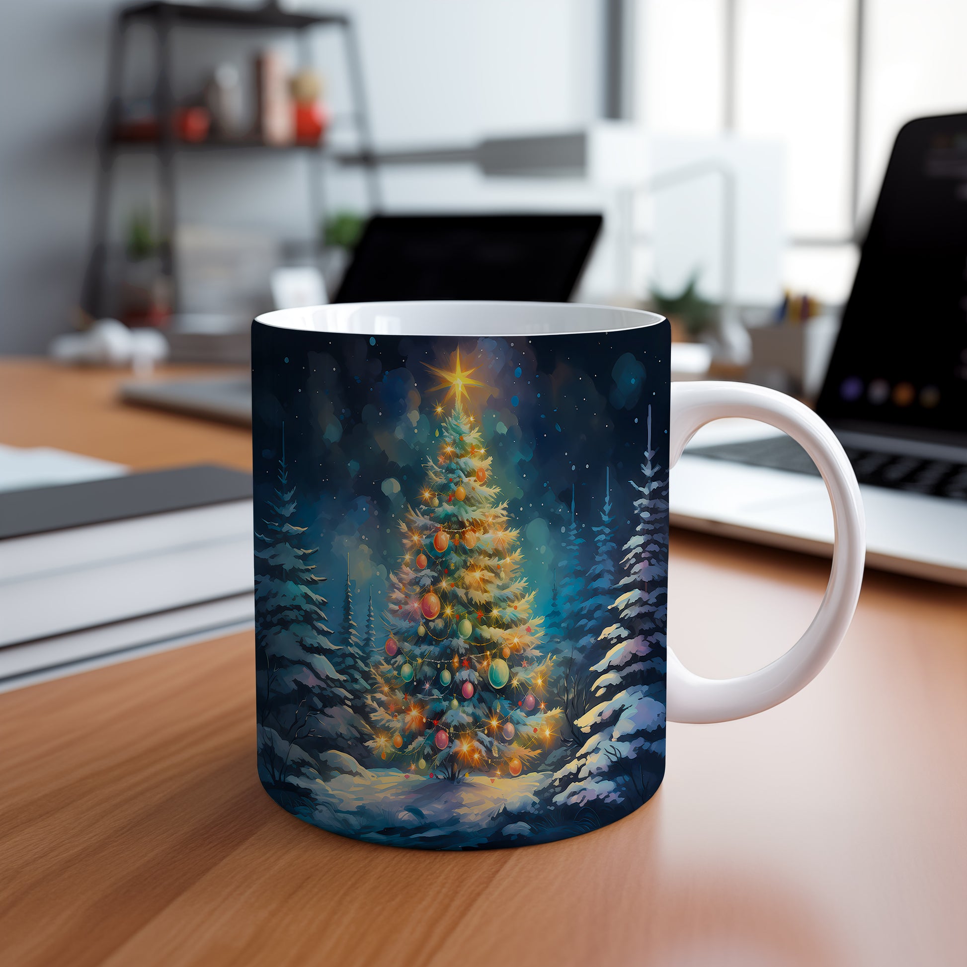 Vánoční hrnek s Ozdobeným stromečkem – ručně ilustrovaný motiv