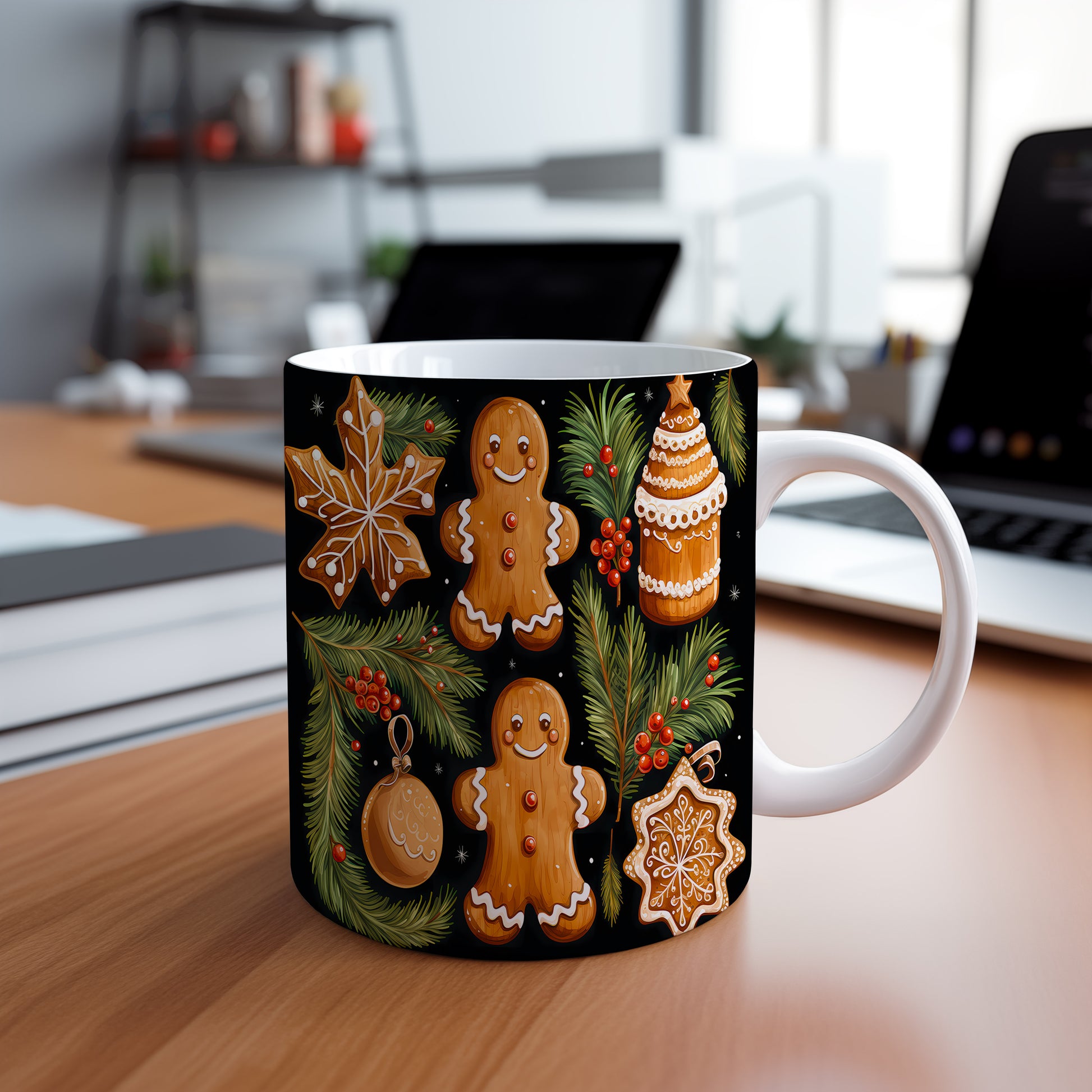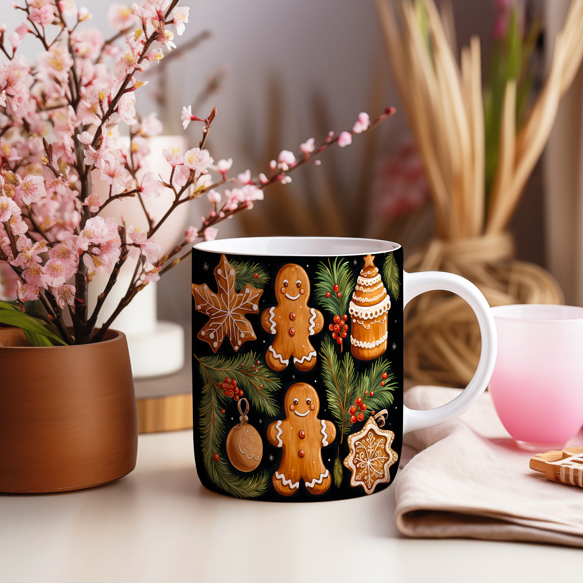 Užijte si chvíle pohody s roztomilým perníčkovým motivem. Ideální dárek pro milovníky sladkých vánočních tradic.