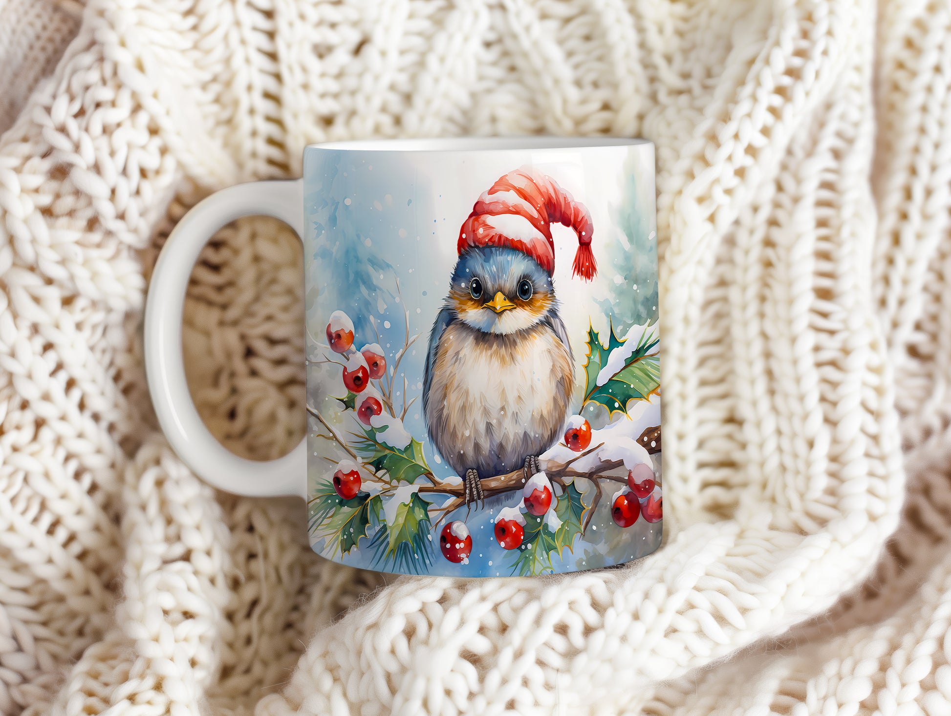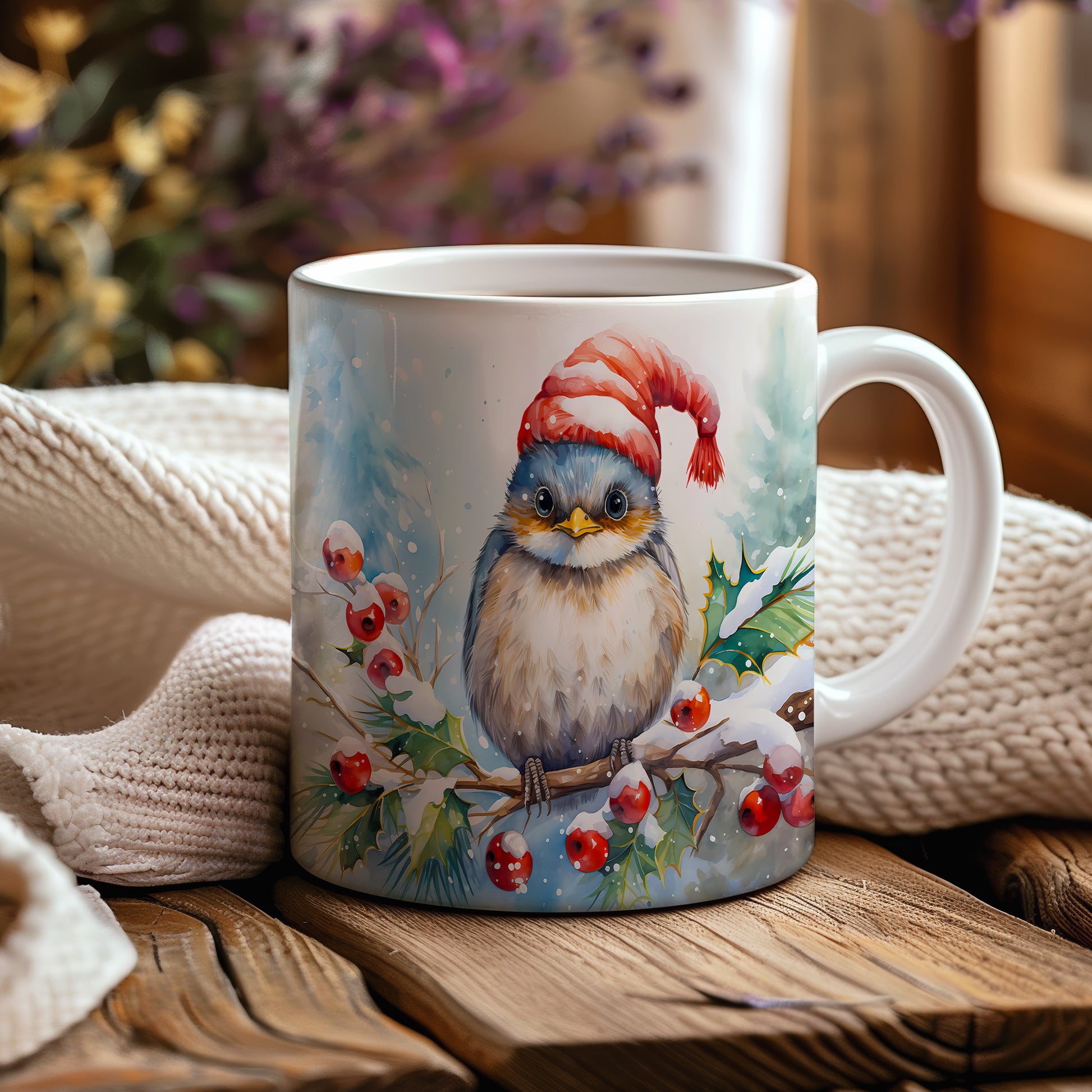 Vánoční hrnek s Ptáčkem a čepicí